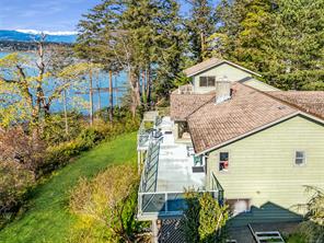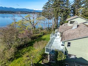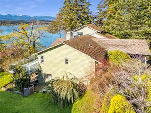 Comox High-Bank Waterfront Home awaits your vision. Nestled end of coveted cul-de-sac a 1979 West Coast home, held by one owner since its inception, offers unique chance to craft your dream home. Perched above Comox Bay, 0.43 acre, 4,777 sqft, 3 level, 5-bedroom home boasts panoramic, unobstructed views Beaufort Mountains & Comox Glacier. Serene high-bank setting includes, now-overgrown trail, ready to be revived for private bay access, a rare gem for waterfront living. Sit on 1 of 2 decks as bald eagles soar overhead, perching in mature Garry Oak trees that frame the property. The home is ready for a retro-modern revival. Modern features include natural gas hot water on demand, gas fireplace with collectable Union Bay bricks, forced air furnace & heat pump. The layout offers 3 main-floor bedrooms, 1 primary suite/ensuite & private balcony upper level, lower-level 1-bedroom non-conforming suite. Once-in-a-lifetime opportunity to reimagine a rare property into a West Coast showpiece