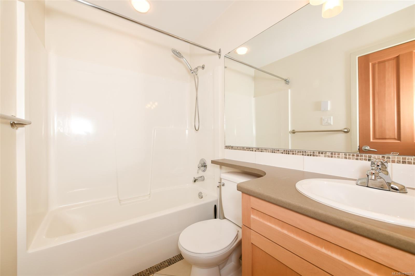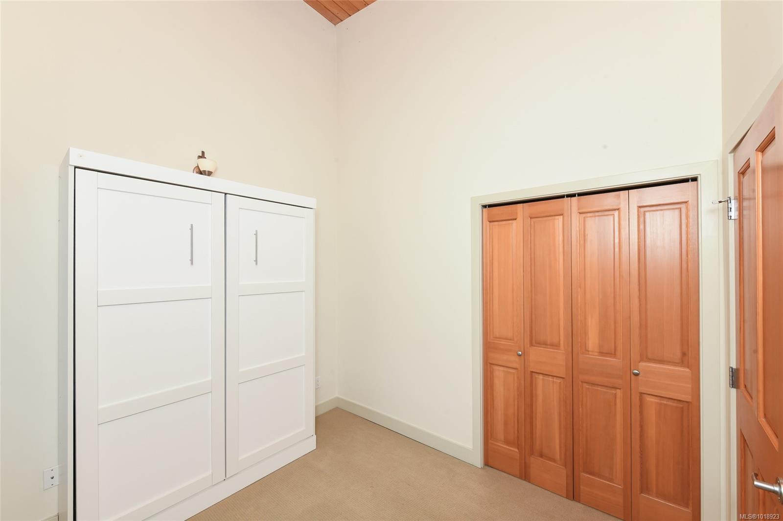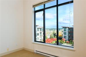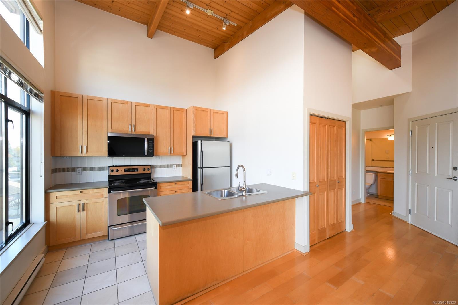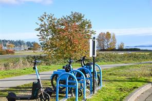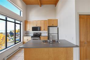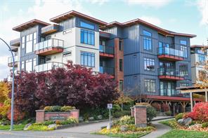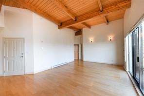 This top floor 2 bedroom, 2 bath condo at Trumpeter’s Landing boasts an ideal front and center location with stunning ocean and mountain views from the main living areas and bedrooms. Featuring beautiful over height wood beam ceilings and abundant windows, the home is filled with natural light throughout. The kitchen offers stainless steel appliances and an eat up bar for two, while the spacious primary bedroom includes a full ensuite and ample closet space. Additional highlights include a separate laundry/storage room and a large balcony perfect for enjoying the scenery. Just steps from the ocean, air park, and walking paths and close to all amenities, this home offers a central, coastal lifestyle. The pet friendly building features secured entry, a modern welcoming foyer, elevator, guest suite, underground parking, and a storage locker.