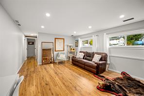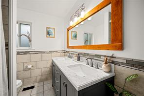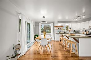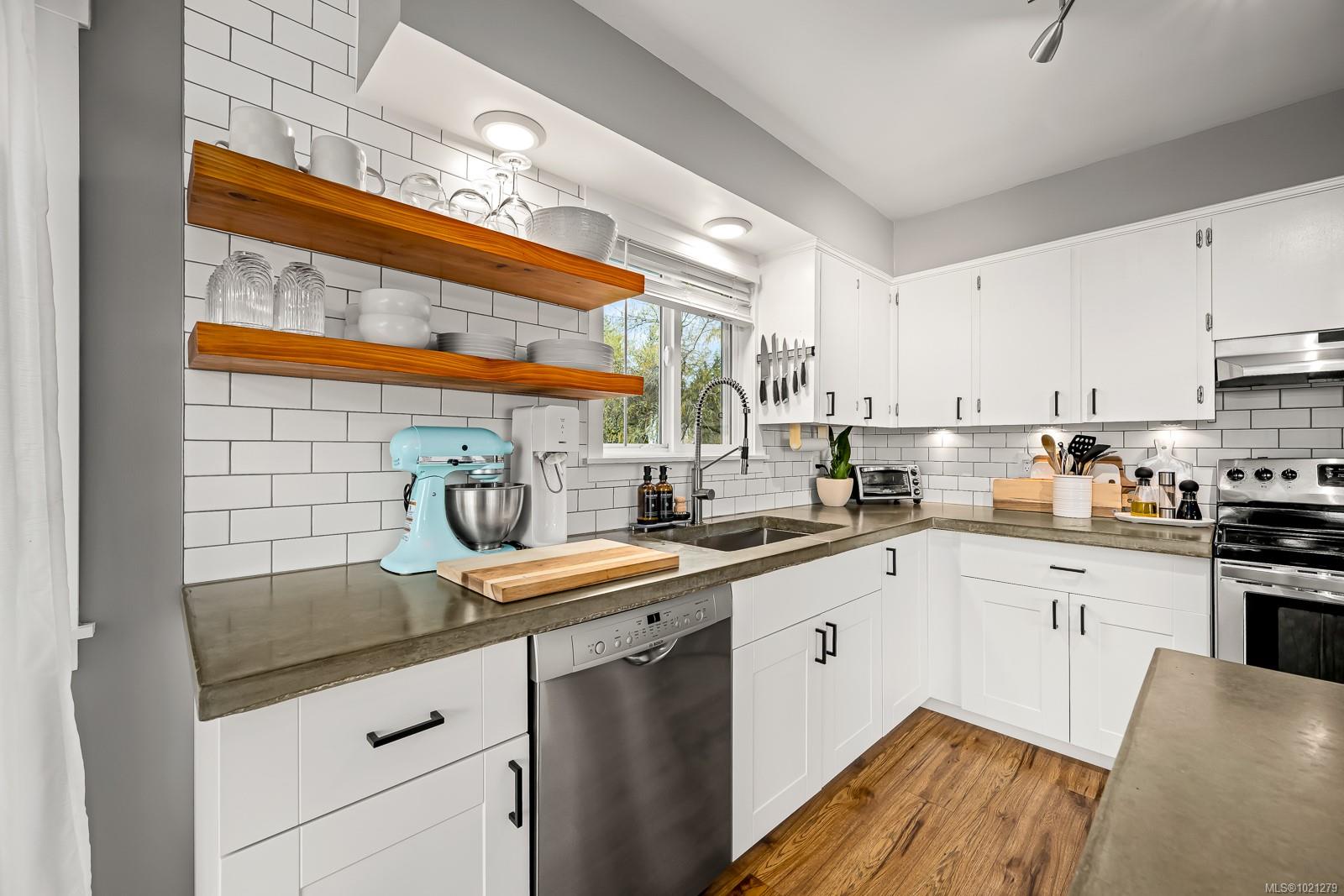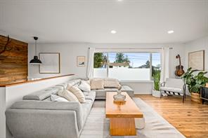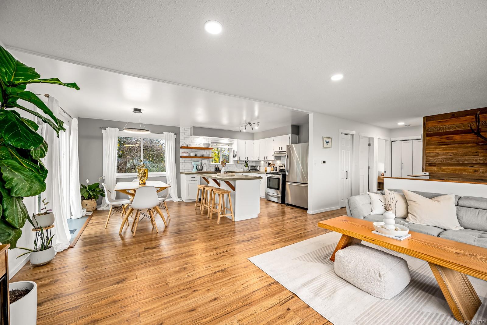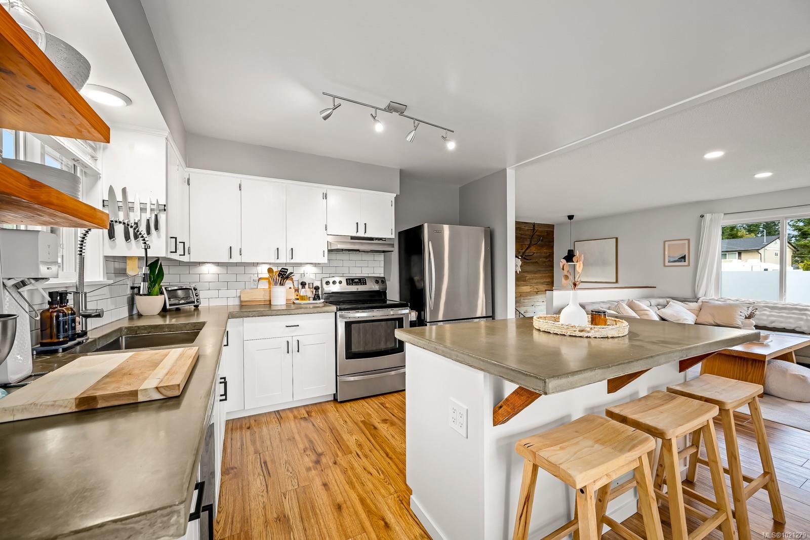 Discover this charming split-level home in a desirable Campbell River neighbourhood, offering ocean glimpses, a flexible layout, and numerous modern updates on a spacious 0.26-acre lot. This well-maintained property features new siding, soffits, updated windows, and modern flooring on both finished levels. The bright main floor includes an inviting living area and a refreshed kitchen with updated cabinets, concrete countertops, stainless steel appliances, and a full tile backsplash. Two comfortable bedrooms, a renovated 4-piece bathroom, and access to a large deck with new vinyl complete the upper level.
