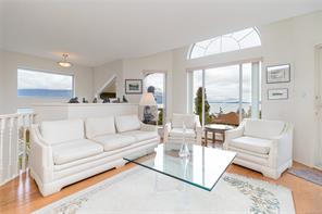 Arbutus Ridge at its Best! Split level home of 2658Sq. Ft .Ocean and Mountain views of Lands End, Saltspring, Satellite Channel and Mt. Baker. Vaulted entry leads up to gorgeous Main with views from every room. Warmed by fireplace the LR features massive arched window capturing incredible vistas. Balcony captures open air magic. Semi-formal DR bounds over- sized Island Kitchen with adjacent informal eating/sitting/tv room. Glassed All Season Sunroom brings outdoors in! Primary BR suite celebrates sunrise through patio door leading to sun bathed deck. Lovely guest BR and 4 pc bath completes the Main. Lower level of 966 sq. ft. provides a charming office/library/sitting room with full ocean vistas. Additional BR,3 pc bath and storage rooms provide utility and flex. Short stroll down to the Common waterfront. Golf/Tennis/Clubhouse/Pool/Library/Restaurant/Pub/24 hr. Security. Resort Style 55+ Gated Community Living at its Finest. Vancouver Island at its Best!