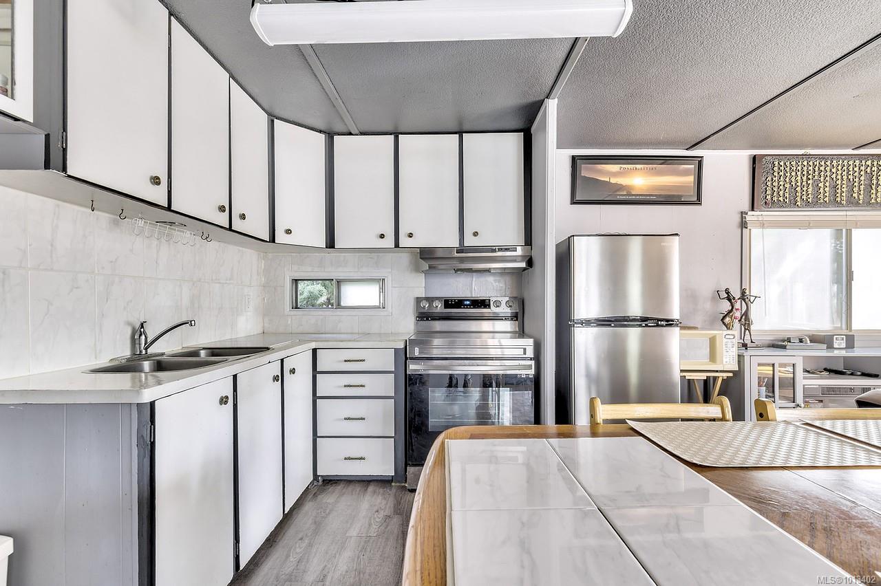 Welcome to this bright and spacious 3-bedroom, 2-bath manufactured home in a well-kept park managed by Pathfinder Resorts. The open living area is filled with natural light from large windows, and the roomy kitchen features newer appliances. A generous laundry room adds everyday convenience. Enjoy the enclosed deck for year-round comfort and the fully fenced yard for privacy. A small garage with a workbench provides extra storage and workspace.Residents enjoy access to the Englishman River’s swimming holes and beaches — perfect for family fun. The location is within walking distance to Parksville’s shops, services, and the beautiful Rathtrevor Beach. Pad fees include water, septic, and park maintenance. This well-priced home is available for immediate possession — an opportunity not to be missed!