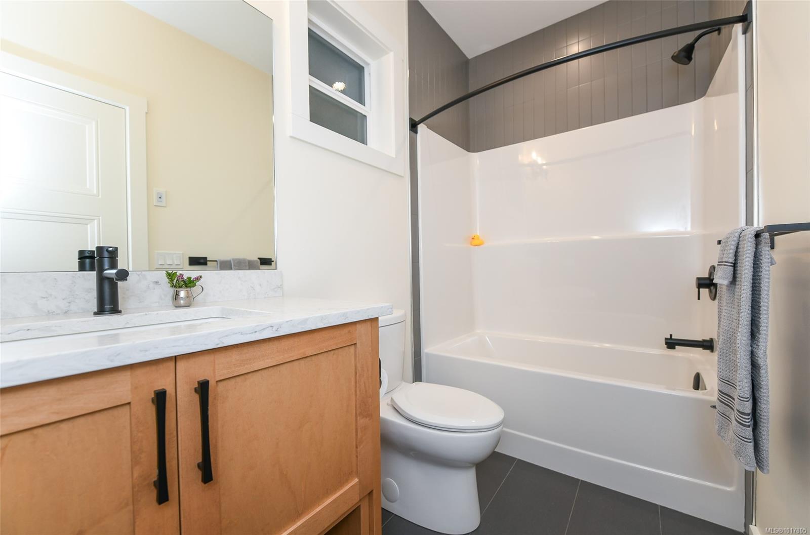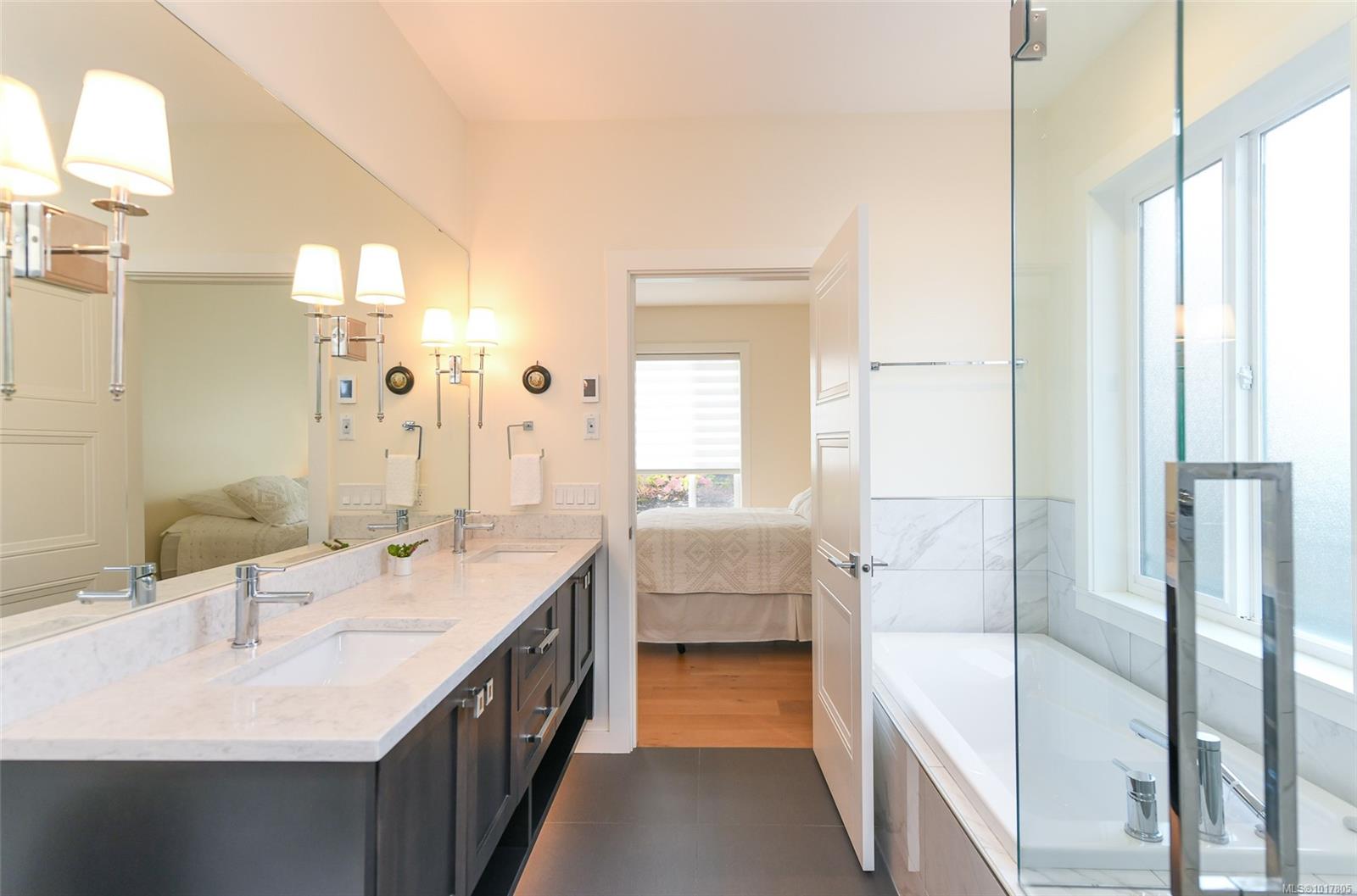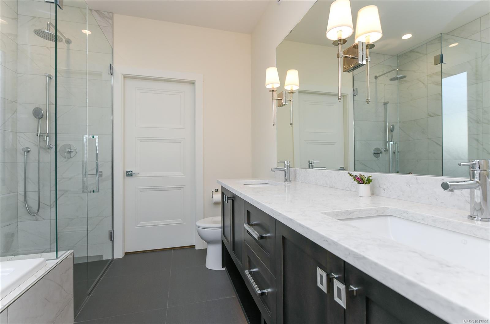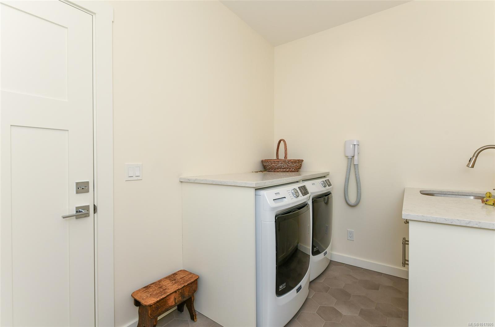 West Coast rancher with elegant detailed finishing. Main living area features full-window feature wall with approximately 12 foot ceilings and natural light. The home has an impressive kitchen with glass feature doors, timber shelving, indirect lighting, brick tiled backsplash, pantry and entertainment sized island with quartz countertops. Includes all appliances including gas range, microwave in the island, HRV, heat pump, solar assist panels (Energuide rating of 34) and under-height basement-crawl space for storage with access/stairs in garage. The master bedroom features 5 piece ensuite with heated tiles, sconces & walk-in closet with built in shelving. Professionally landscaped yard with 2 patios, mature foliage, and sturdy fence. Inside and out, this home has been very well loved, freshly painted with neutral white colour scheme, shows as brand new. 2020 custom home build. Walking trails past ponds nearby. This home is move-in ready, just turn the key and relax.