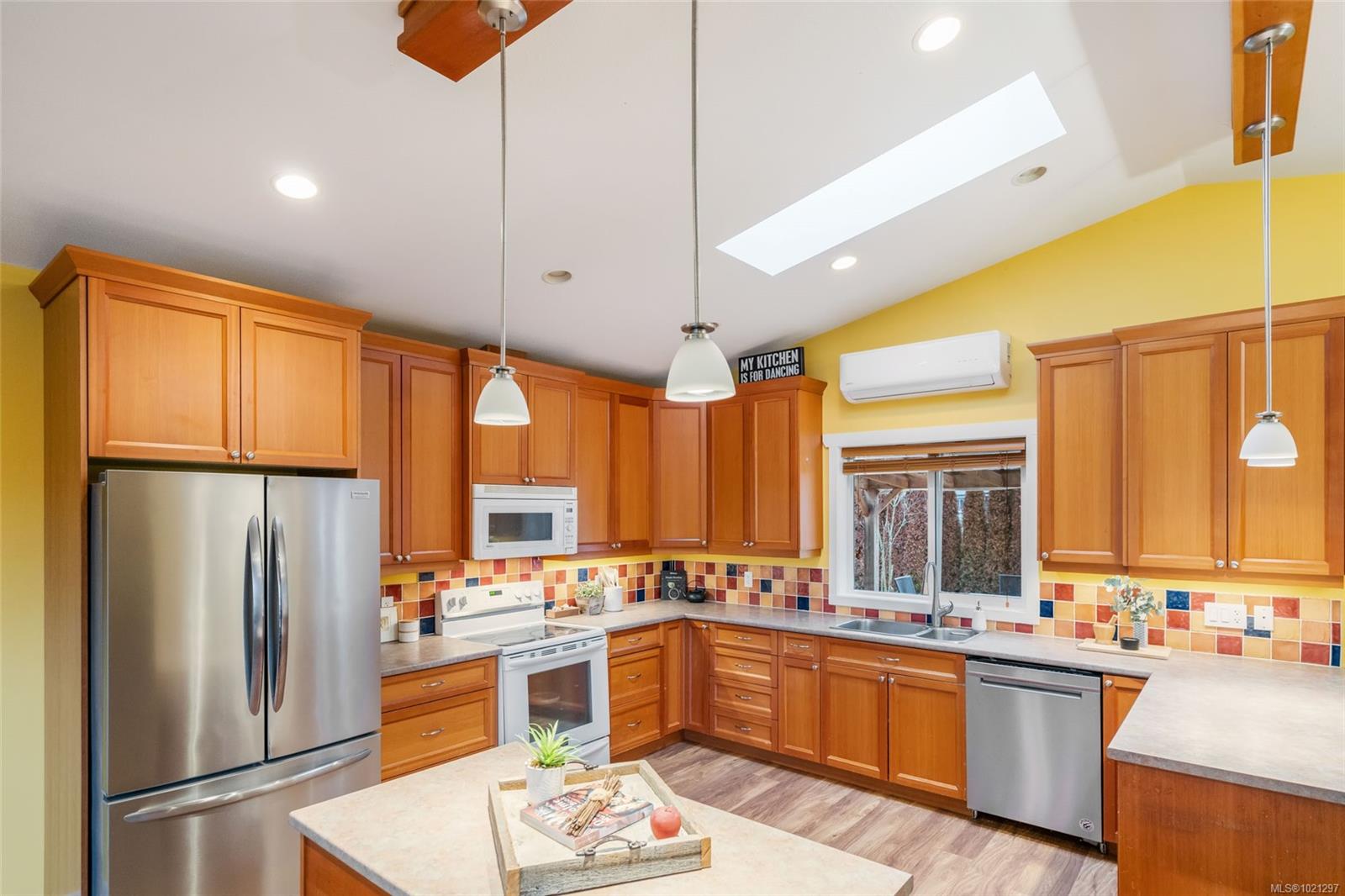 Charming Central Parksville Rancher – Walk to Downtown, Stroll to the Beach! Spacious 3 Bed/2 Bath Rancher on a .21-acre lot featuring a one-level layout, Bedrooms on opposite sides for privacy, a skylight and generous use of glass for natural light, a hot tub, two decks, a sunny fenced yard, and ample parking for a trailer or RV. Located on a quiet no-thru street, it’s steps from shopping, dining, banks, and Parksville’s boardwalk and beach. East-facing covered front deck, open-concept Kitchen, Living, and Dining Room with new hardwood flooring, cathedral ceiling, and nat gas fireplace. Skylighted Deluxe Island Kitchen offers shaker-style cabinetry with crown molding, and ample counter space. French doors lead to a large back deck with hot tub and gas connections, and a fully fenced west-facing yard. Primary Suite with deck access, walk-in closet, and ensuite. Two more Bedrooms, 4 pc Main Bath, and Laundry/Mudroom complete the home. Great extras, visit our website for more info.