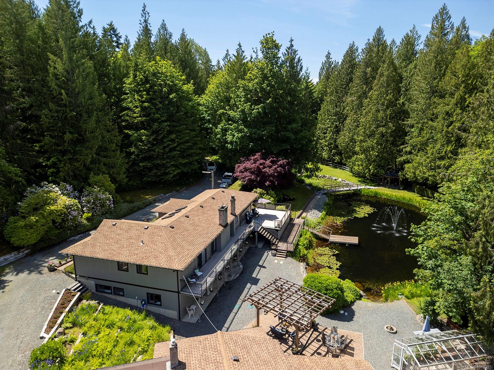 Welcome to this truly rare and magical offering only minutes from Qualicum Beach. This 4.56-acre private estate features a 3,117 sq ft two-storey home perfectly positioned to overlook a serene, man-made extra large pond complete with a central fountain. The peaceful views are framed by forested trails that meander around the water, giving the sense that you’re living in your own park. The lower level of the home is already plumbed for a suite, offering flexibility for multi-generational living or rental income. Two detached shops provide abundant space for hobbies or storage; one even includes a mechanics pit. A greenhouse is also in place for garden enthusiasts. The property offers different lifestyle possibilities. Tucked away in nature, this is a one-of-a-kind opportunity to enjoy quiet, private living without sacrificing convenience. A lifestyle property like no other.