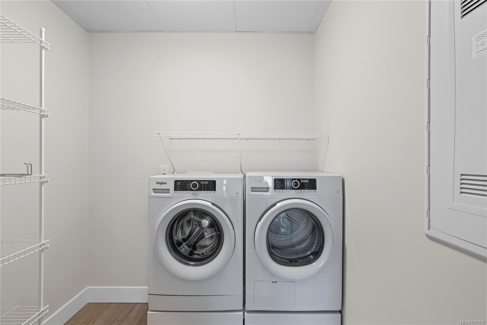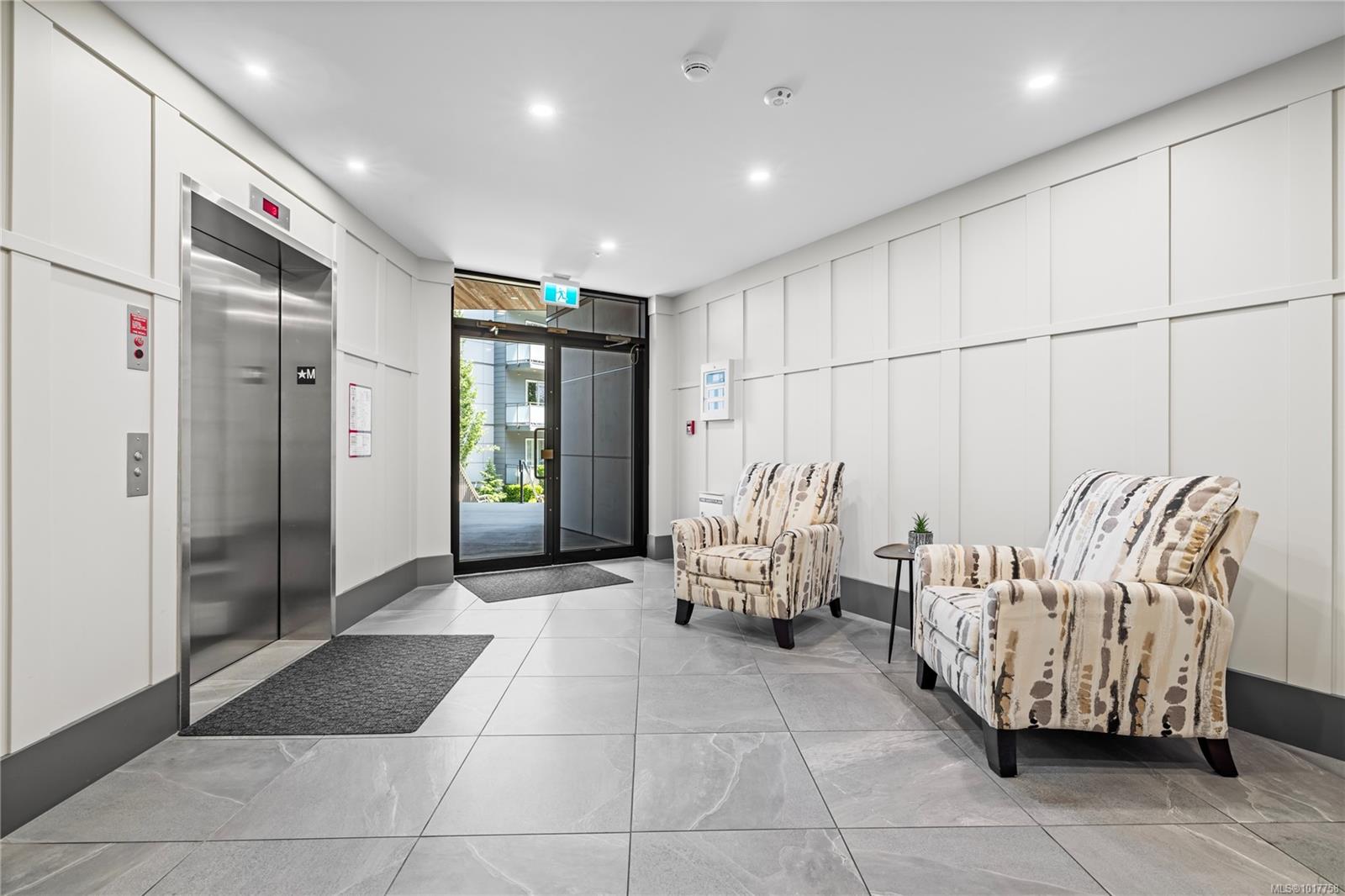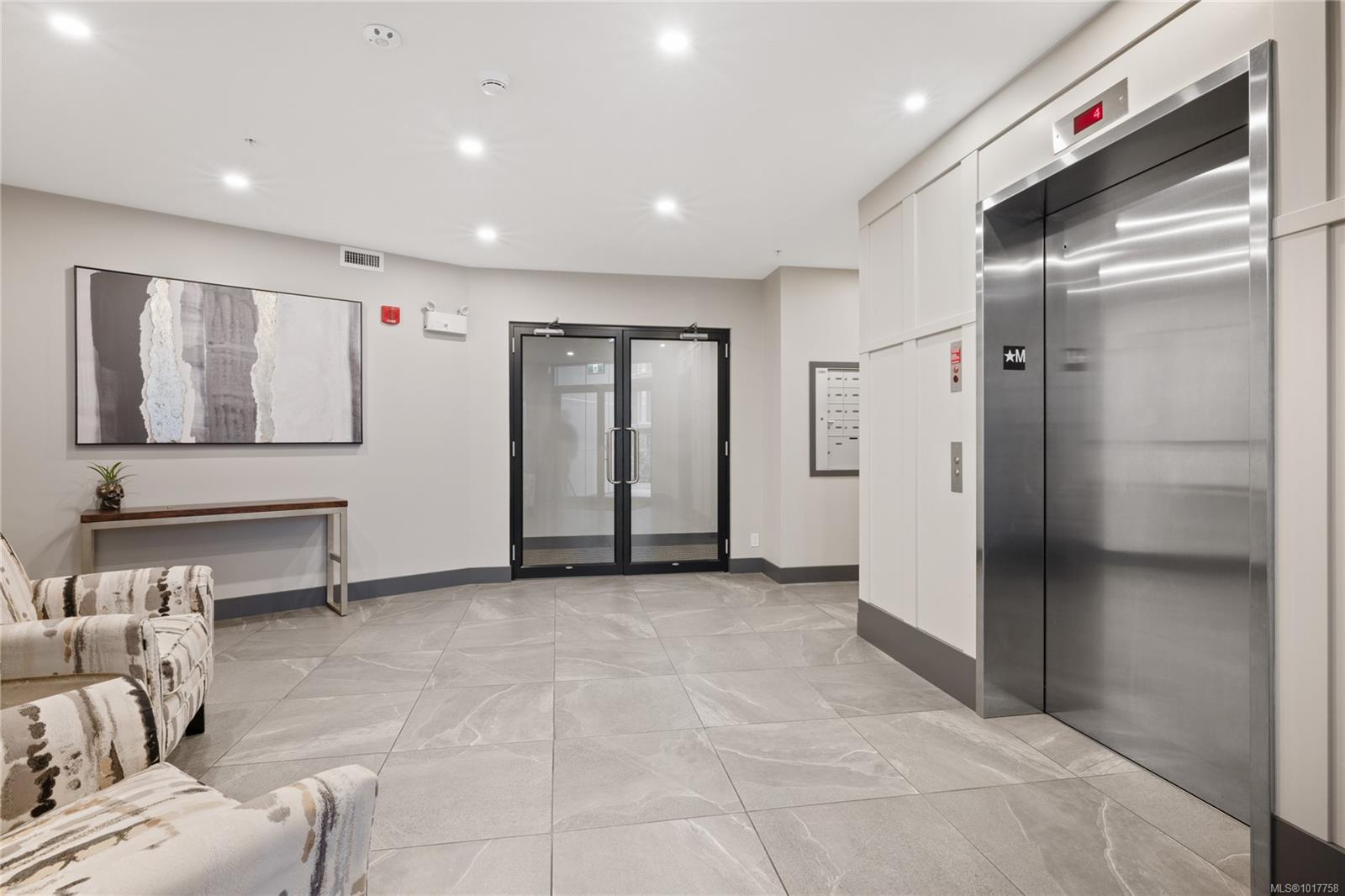 Welcome to this immaculate penthouse at The Met—a 2 bedroom, 2 bathroom top-floor unit offering stunning ocean views and soaring 10 foot ceilings. This bright, open-concept home features floor-to-ceiling windows and a smart, functional layout. Located in one of Nanaimo’s most walkable areas, you’re just a short stroll to over 200 amenities, including gyms, pet care, restaurants, grocery stores, a boutique butcher, bakery, and Woodgrove Mall. Includes underground parking and storage. Experience stylish, low-maintenance living with a West Coast vibe. Data and measurements approximate, to be verified if deemed important.
