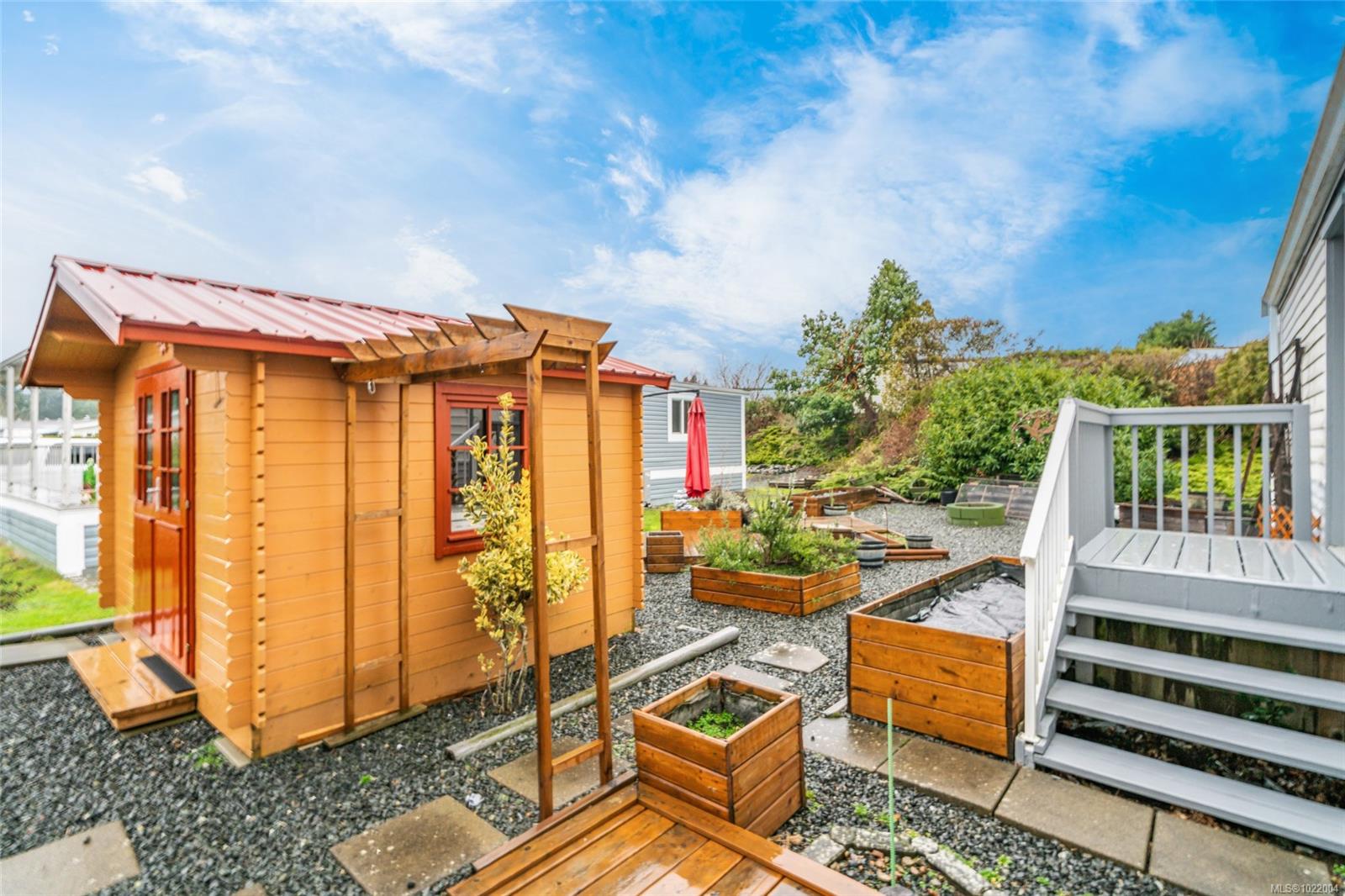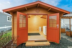 Welcome to Sharman Mobile Home Park, a 55+ community in the heart of North Nanaimo. This well kept home sits in a quiet pocket with a spacious, low maintenance yard and easy access to major amenities. Enter through the enclosed glass sunroom, enjoyed year round, to a bright living room with gas fireplace. The efficient kitchen offers an eating area, gas stove and updated dishwasher. Down the hall are a combined main bath and laundry, a secondary bedroom and a comfortable primary bedroom with generous closet space and adjoining bath with walk in shower. Comfort upgrades include a new heat pump and furnace, newer blinds and a hot water tank installed about two years ago. Outside, a large wired shed with double doors adds excellent storage for tools, bikes or seasonal items. Minutes to Woodgrove Centre, Costco, Superstore, Home Depot, restaurants, the library and quick highway connections. A practical, well connected place to simplify life. Reach out any time to arrange a private viewing.