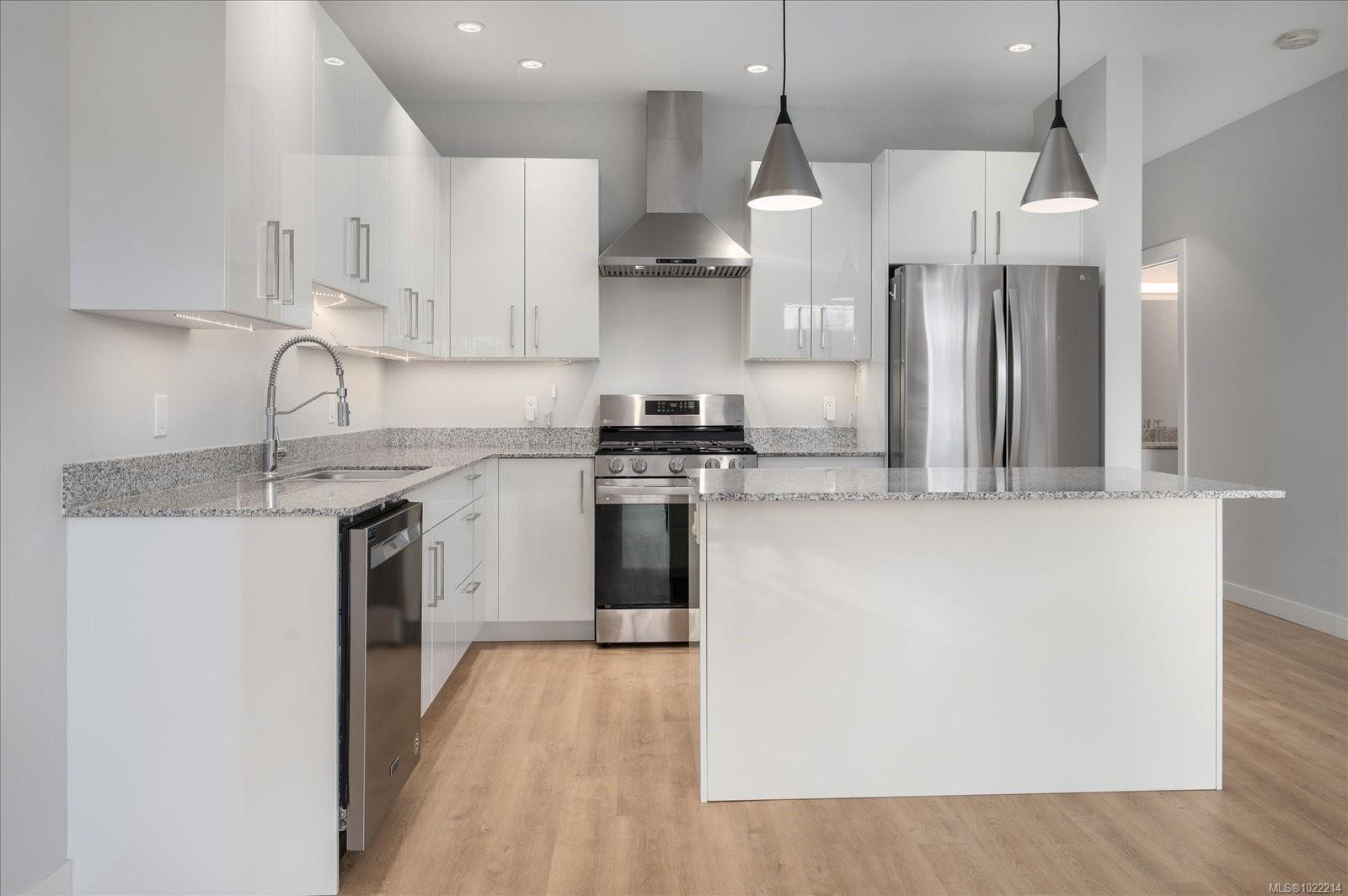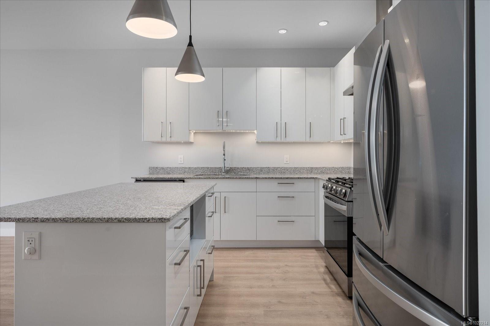 OPEN HOUSE: Sat. Dec. 27 & Sun. Dec. 28, 1:30-3. Welcome to the Sandscapes. 2 level contemporary designed end unit features 3 bedrms & 3 bathrms, a Chef’s kitchen w/large island & breakfast bar, granite countertops, white gloss cabinetry, SS appliances & gas stove. Lower level w/an open concept kitchen/living/dining rm, 9 ft ceilings, large windows, vinyl plank flooring & garage. Upstairs you find the primary bedrm w/his/hers closets, ensuite w/dble sinks & roomy glass shower, 2 more bedrooms, 4pc bath & laundry room. The sliding glass doors off the living space extends to the fenced back yard w/patio, deck & gas BBQ hookup. It boasts a high efficiency gas furnace, heat pump & gas fired hot water on demand. Located a few minutes from Parksville’s beach & oceanfront walkway, restaurants, schools, shopping, golf courses & recreational activities. Affordable strata fees, no age or rental restrictions, 2 pets allowed, and still covered by new home warranty. Well managed, development.
