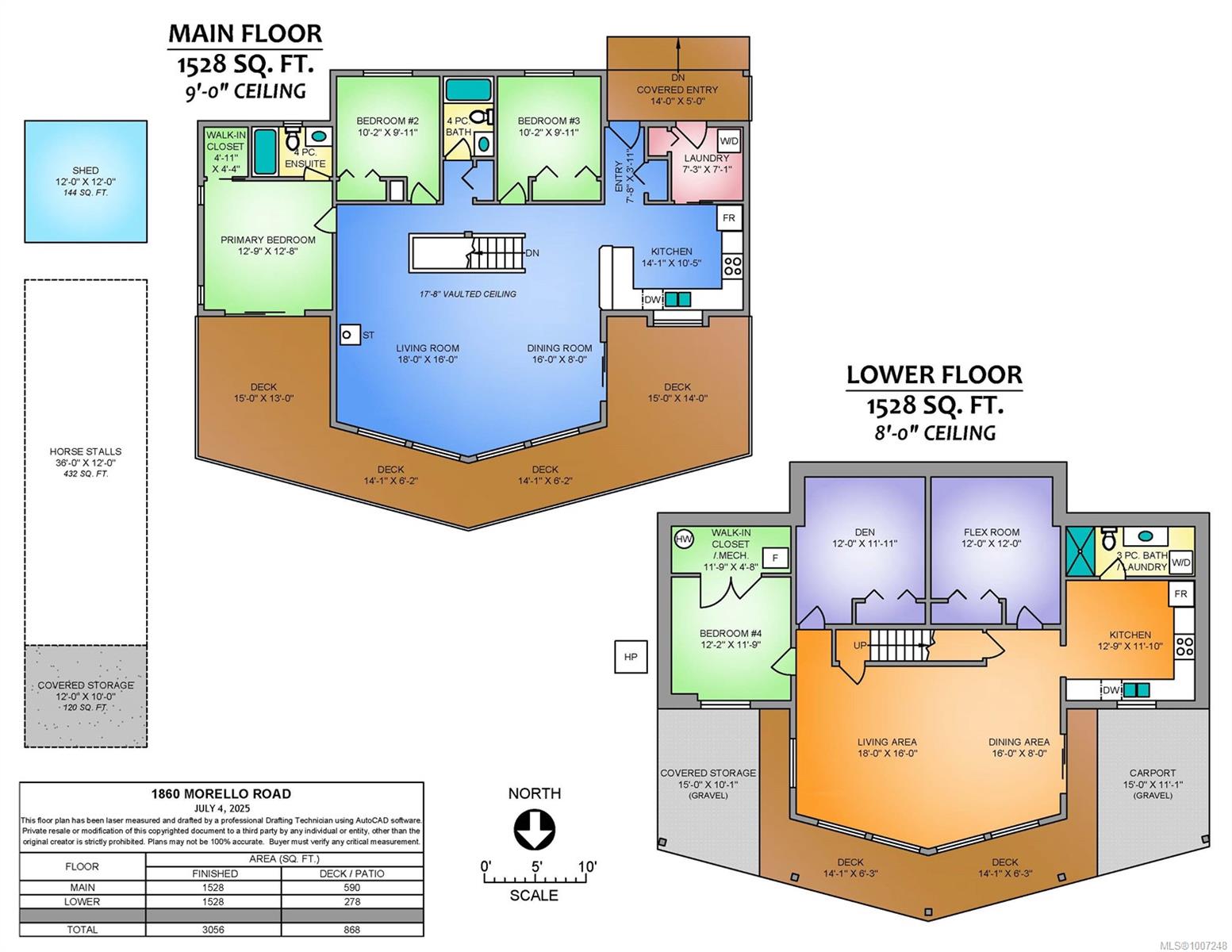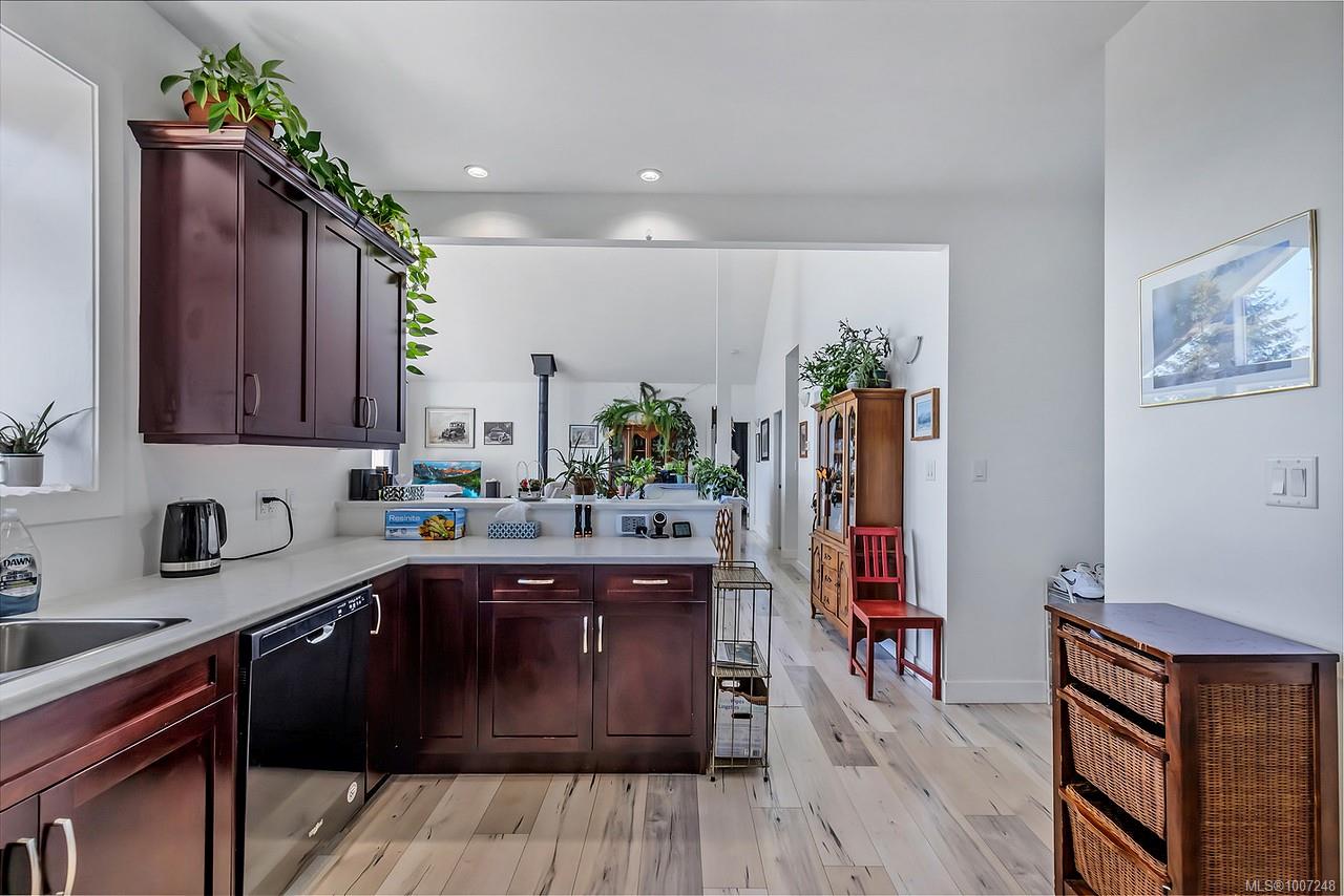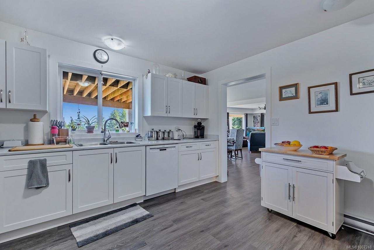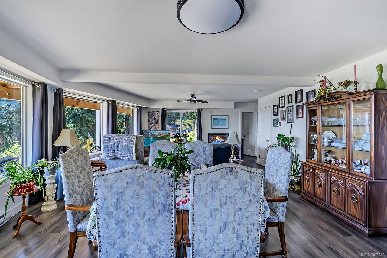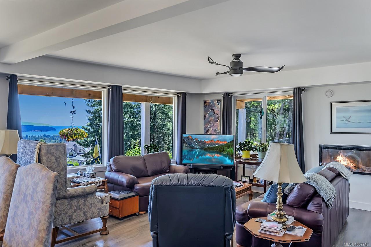 Just off the main paved Morello Road, a steep gravel driveway leads to a jewel of a property including the still like new 4-bed, 3-bath home. Perched on a 5.11-acre hillside property overlooking stunning views of Nanoose Bay, Salish Sea, & the Coastal mountains. The main floor features vaulted ceilings, picture windows, an open living/dining area with a cozy stove, a large kitchen with ample cabinetry, 3 bedrooms including the primary bedroom and 4pce ensuite, a 4pce main bath, laundry room, and a wrap around balcony with multiple seating areas. Downstairs is a bright 1-bed in-law suite with its own kitchen, den, flex room, 3-pce bath, laundry, and walkout patio. Additional features include an electric furnace with heat pump, metal roof, drilled well, septic & the remainder of the builders warranty. Ideal for horse lovers, the large yard includes a flat paddock area with shelter and covered storage. A unique property with incredible potential with great zoning and unforgettable views.