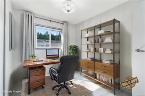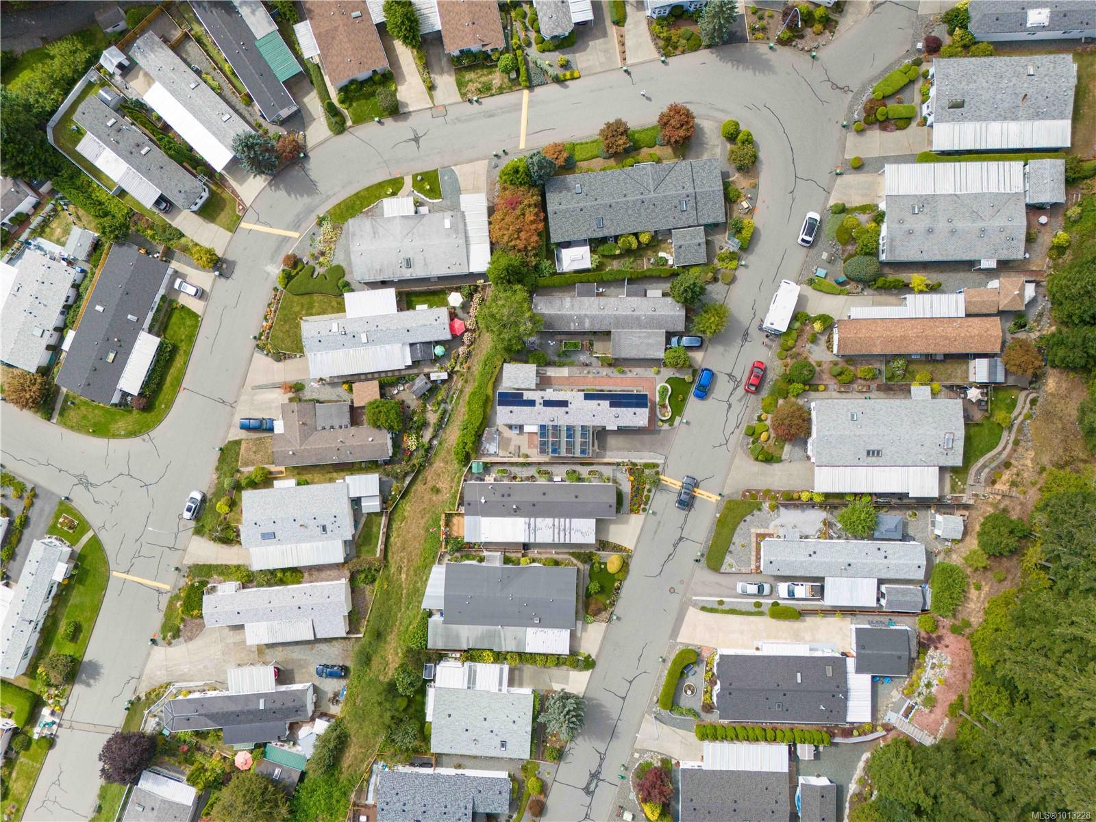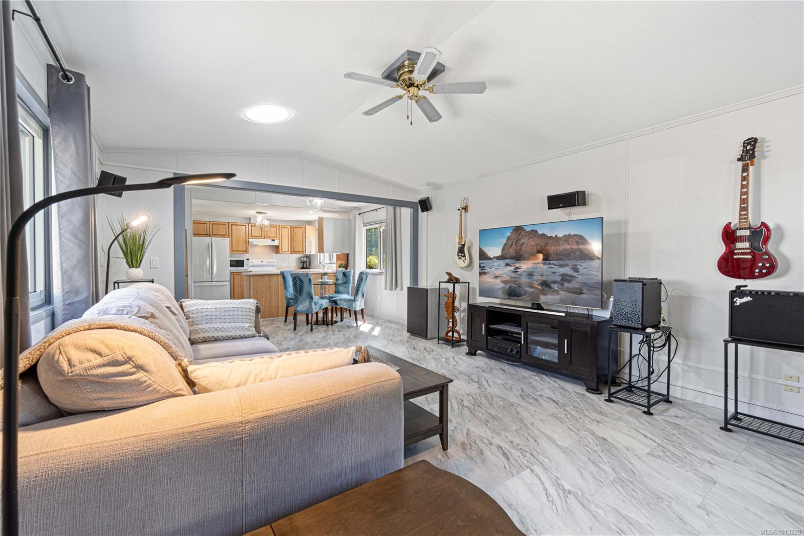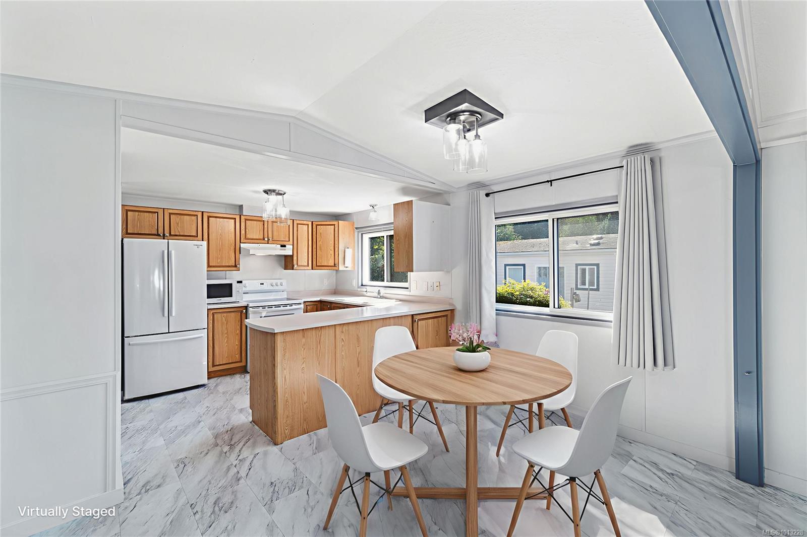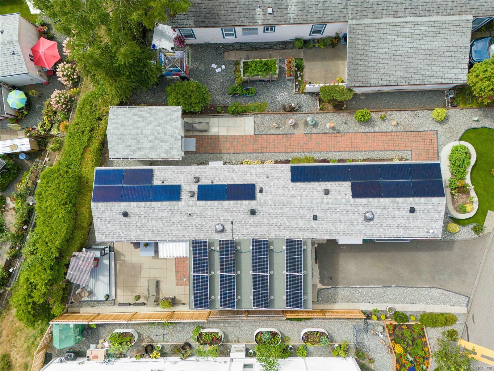 TURN-KEY LIVING! This upgraded 2-bedroom, 1-bath home in Willow Park, a pristine 55+ community, blends comfort, efficiency, and lifestyle. The open-concept layout is bright with newer windows and sun tunnels. Solar panels return power to the grid, resulting in hydro credits for the homeowners, along with ductless heat pumps for year-round comfort and newer appliances for convenience. The second bedroom offers flexibility for guests, a home office, or hobbies. Outside, enjoy a low-maintenance yard with irrigation, artificial turf, and wide mobility-friendly walkways. A custom BBQ deck, storage shed with built-ins, and a permitted, partially enclosed carport provide shelter and convenience. Fully turn-key and ready for quick possession, this home is a rare condo alternative offering privacy, upgrades, and nature at your door. Steps from Morrell Nature Sanctuary, it’s an ideal choice for a secure and sustainable retirement lifestyle. Measurements are approximate; verify if important.