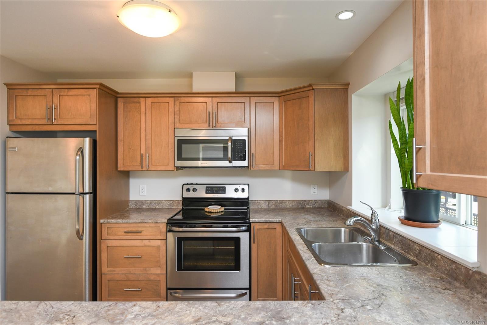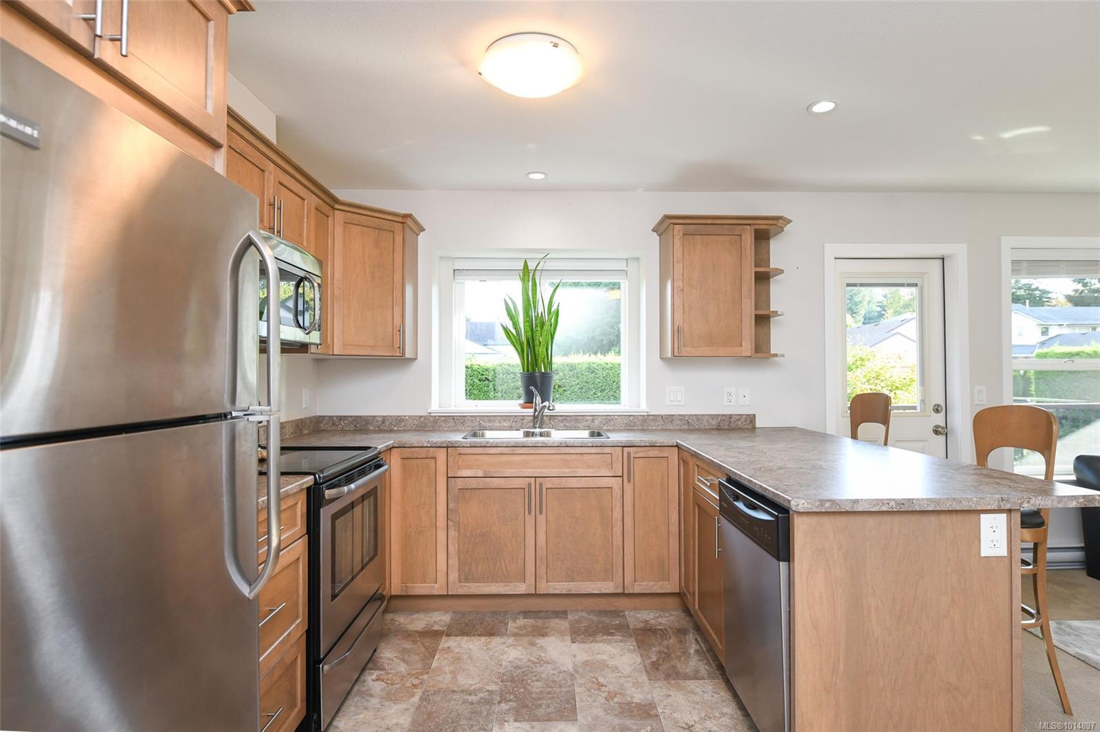 Welcome home to Ridgeview! This top floor, 2 bed/2 bath, corner unit condo features open plan living & mountain views! There’s a functional & stylish kitchen with stainless appliances, shaker cabinets & an eat-up bar. The bright living and dining area is filled with natural light from oversized windows & leads out to a lovely, covered front deck; perfect for summer BBQ’s. Another deck off the primary bedroom lets you enjoy incredible southwest exposure with mountain views & unforgettable sunsets. Well run strata allows for 2 pets (up to 20lbs), rentals welcome & no age restrictions. Located in a fantastic neighbourhood close to North Island College, the new hospital, aquatic center, shopping & walking trails.