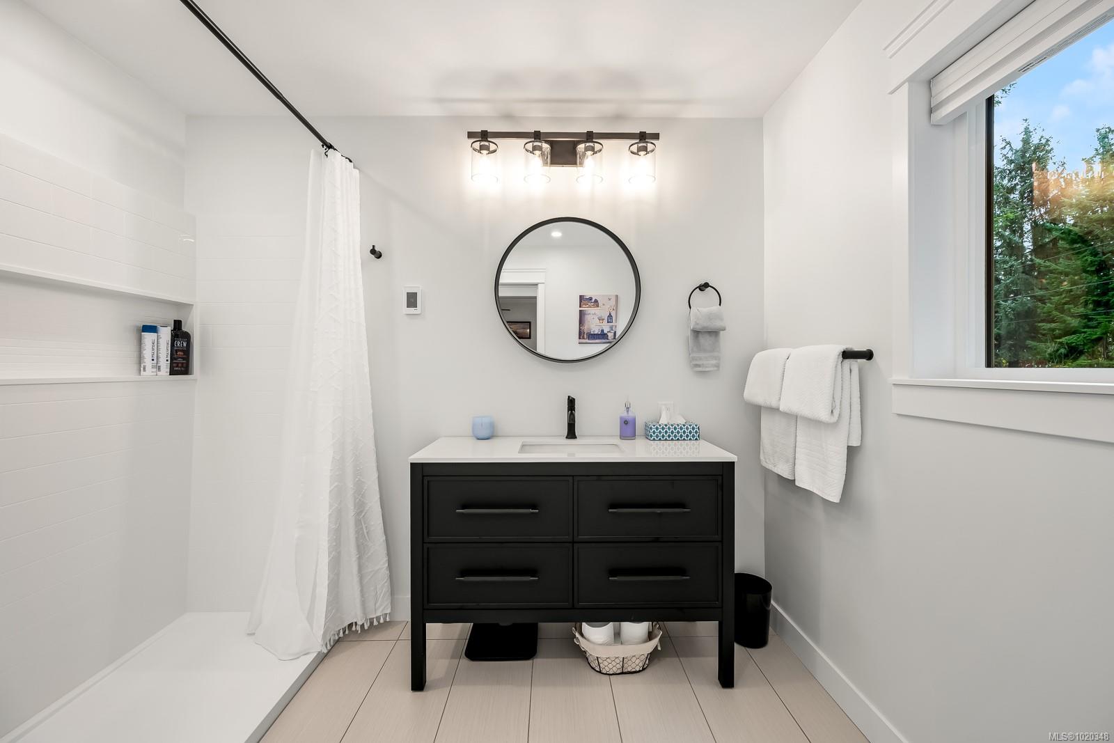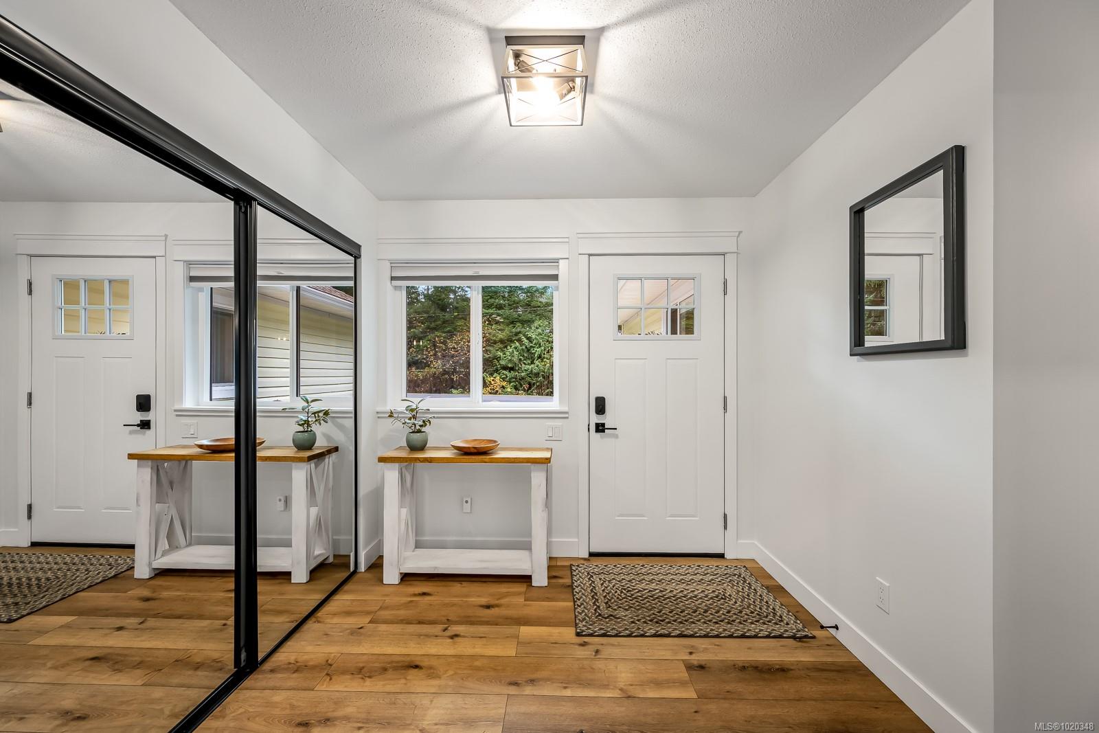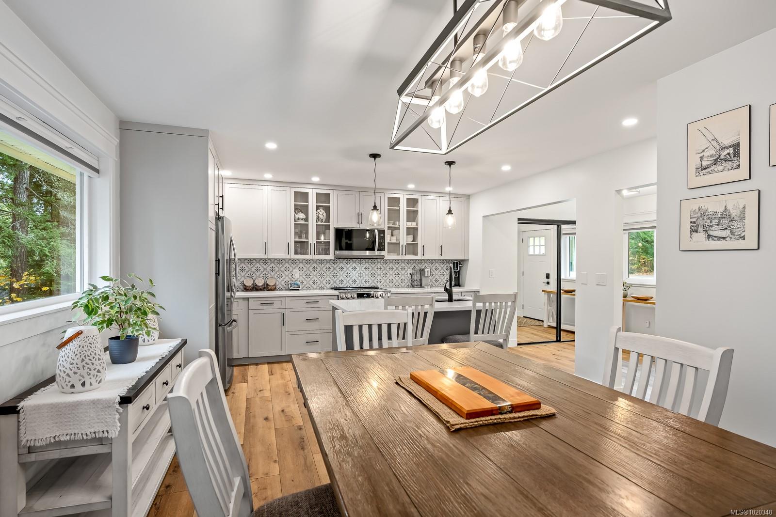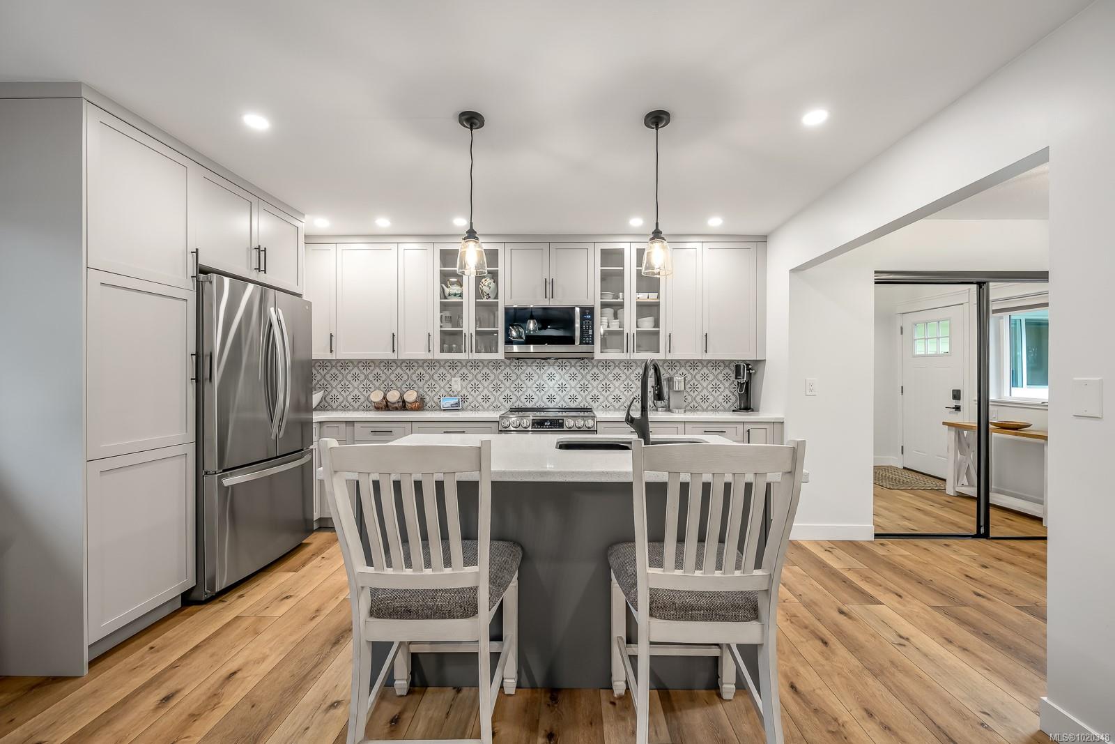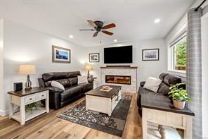 Fully renovated from top to bottom, this open concept 3 bedroom, 2 bathroom home offers true move-in-ready appeal. Step inside to an inviting living space highlighted by smart WiFi LED lighting throughout, custom window blinds, and a stylish electric fireplace. The country-style wide-plank flooring flows seamlessly through the main living areas, enhancing the home’s charm and character. The brand-new designer kitchen features high end stainless steel appliances, quartz countertops, an elegant tile backsplash, and soft close custom cabinetry. The spacious primary suite includes a luxurious ensuite with heated tile flooring. Additional updates include new windows and doors, a modern hot water tank. The efficient forced-air heating with a heat pump and he durable metal roof (installed in 2013) provides lasting peace of mind.