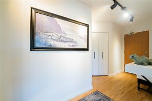 Welcome to your dream coastal retreat! This stunning three-bedroom condo boasts sweeping ocean views of the marina, yacht club, and charming Protection Island. Inside, you’ll love the open-concept layout, gleaming hardwood floors, and stylish modern touches throughout. The beautifully updated kitchen features a sleek wall oven, smooth cooktop, and a casual eating bar—perfect for morning coffee or evening entertaining. Step out onto the covered deck from the living room and soak in the vibrant waterfront atmosphere year-round. The spacious primary suite offers room for a king-size bed, plus dual closets for all your storage needs. A well-appointed four-piece bathroom and a versatile storage room—with potential for future in-unit laundry—complete the package. Located in a prime spot with the waterfront walkway just outside your door, this 55+ community offers a carefree lifestyle where heat and hot water are included in the strata fee. (Please note: no pets.)