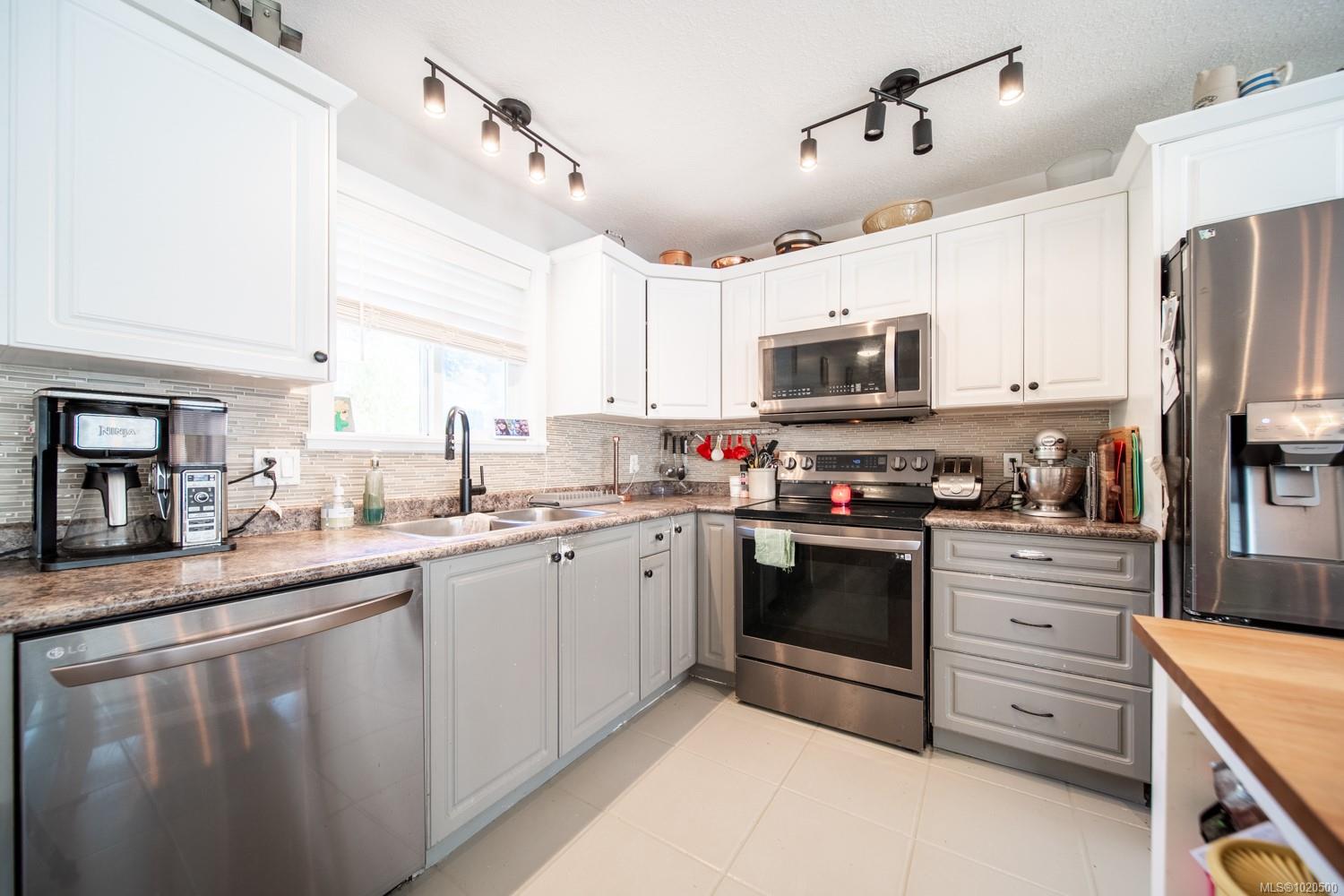 Welcome to this 3 bedroom, 3 bathroom plus den family home located in the highly sought-after neighborhood of The Properties in Maple Bay! With plenty of large windows, the home is filled with natural light that highlights the modern finishes throughout. Wainscoting, vaulted ceilings, and updated light fixtures pair with the high grade vinyl plank flooring, creating a fresh and inviting feel. The kitchen is both stylish and functional, featuring stainless steel appliances, two-toned cabinetry, and a wood-topped island. From here, step out to the sunny deck—perfect for entertaining or simply enjoying the outdoors. The main level offers the primary bedroom complete with a walk-in closet and 4-piece ensuite, along with a 4-piece main bathroom. Downstairs you’ll find two additional bedrooms, a full bathroom, laundry room, and a versatile den space. A double garage completes this package. (Measurements and data approximate; verify if important.)