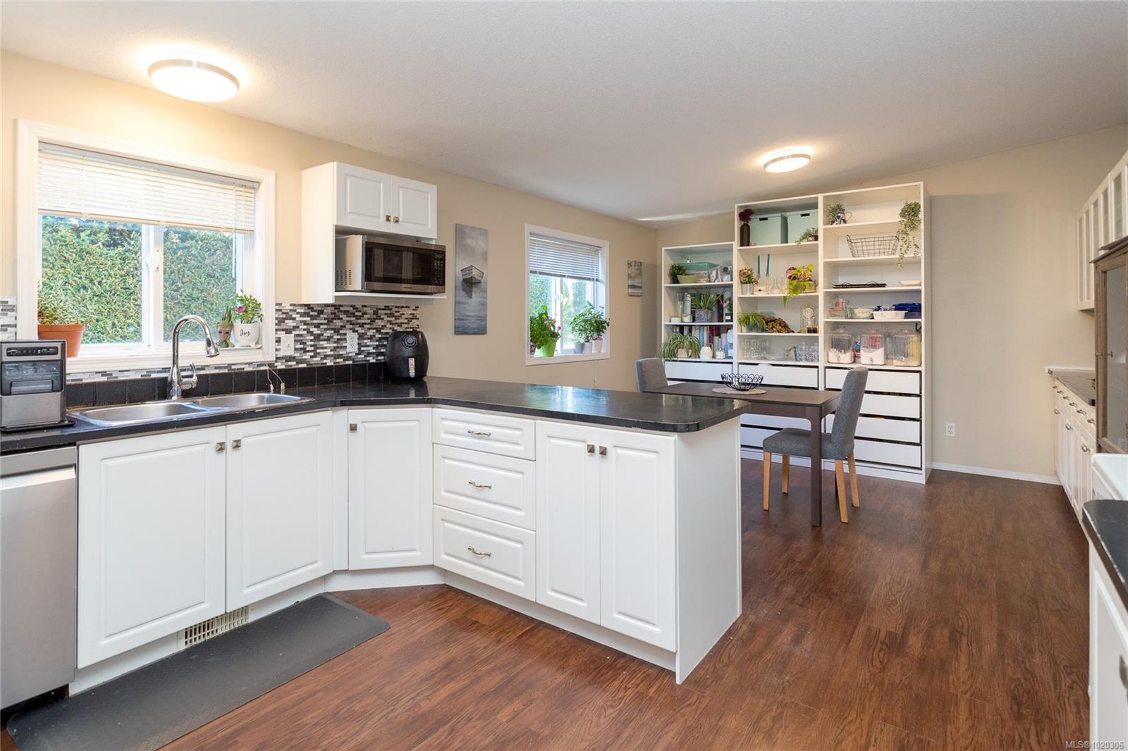 Welcome to this beautifully maintained 2003 doublewide home, where comfort and convenience meet peaceful country living. Built with solid 2×6 construction and CSA-certified electrical, it features a new heat pump and furnace with A/C to keep you cozy year-round. The bright, open layout creates a welcoming flow between the spacious kitchen, dining area with custom cabinetry, and airy living room—perfect for family gatherings. The private primary suite includes a walk-in closet and relaxing 4-piece ensuite. Step outside to enjoy lovely gardens, a private patio, and three handy sheds for all your storage needs. Nestled in a quiet cul-de-sac within a well-kept park, this home offers tranquility just minutes from shops, parks, and trails. Only a 3-minute drive to one of Shawnigan Lakes most popular beaches and boat launch, it’s an ideal spot for summer fun. Move-in ready and waiting for your family to make it home!