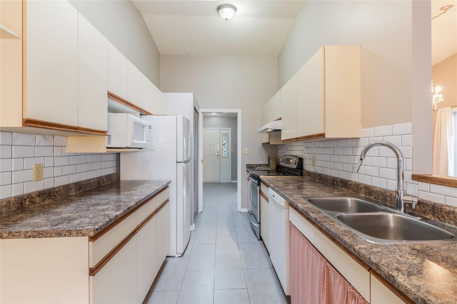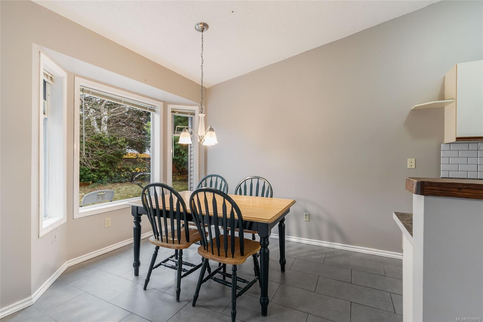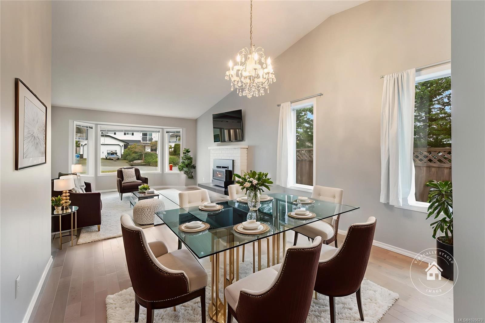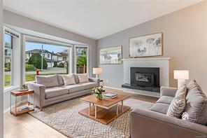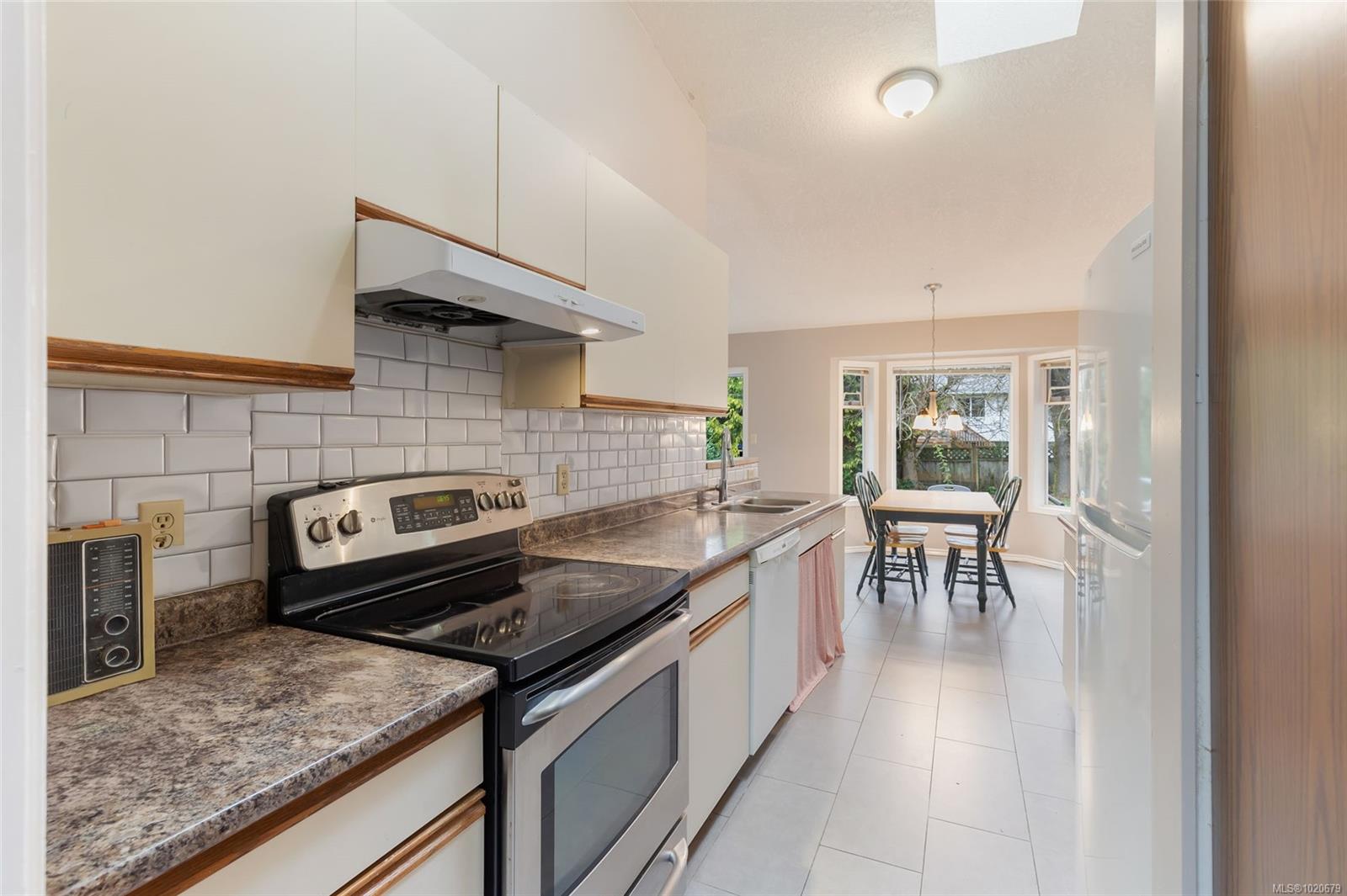 Set on a quiet, sought-after street in North Nanaimo, this well-cared-for 1,468 sq. ft. rancher offers an exceptional blend of comfort and location. Bright and inviting, the home features 3 bedrooms, 2 bathrooms, vaulted ceilings, skylights, and generous windows that fill the interior with natural light. Engineered wood and tile flooring, along with updated paint, create a warm and appealing atmosphere. The galley kitchen opens to an eating nook and a cozy family room overlooking the landscaped backyard, while the living and dining areas include a welcoming fireplace. The primary bedroom provides a 3-piece ensuite and peaceful garden views. A patio off the kitchen leads to a manicured mix of lawn and gardens, ideal for relaxing or entertaining. Additional highlights include an HRV system, double garage, and ample parking. Steps from Icarus Drive’s waterfront access and close to Dover Bay and McGirr schools, parks, and shopping. All measurements are approximate; verify if important.