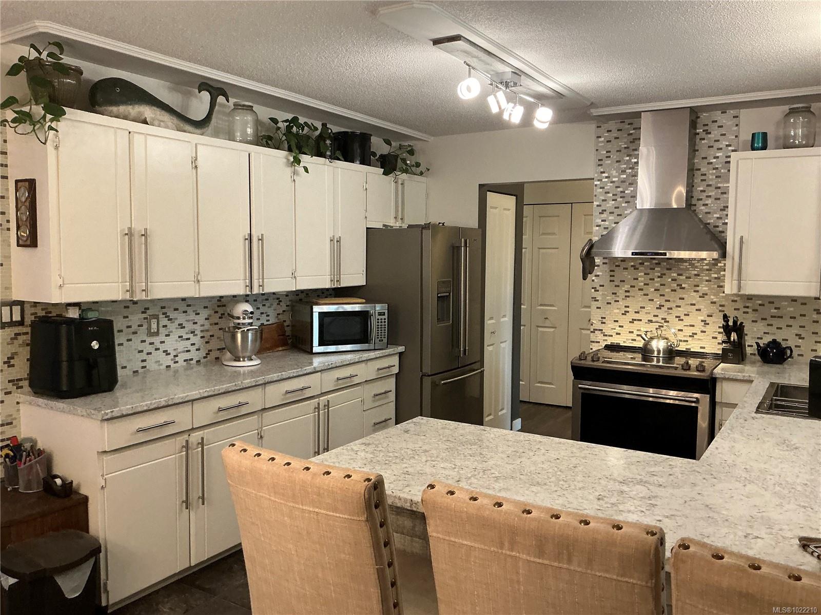 Nicely updated 3 bedroom 2 bathroom Rancher in Willow Point. Main level living, large living room with a newer cozy gas Fireplace. Great ambiance and economical heat source. Beautifully updated kitchen with newer floors,tile backsplash,counter tops and newer appliances. Also new Vinyl windows throughout. 3 good size bedrooms the primary with a convenient 2 piece ensuite. Dining area big enough for the whole family. Just off the kitchen there is a large family room and access to a private fully fenced backyard including a large deck great for bbqs annd entertaining. Also a private hot tub to enjoy year round. There is side parking with blue chip ready for RV parking. A full double garage. Great location close to schools on a bus route and steps away from popular Campbell River Sportsplex.