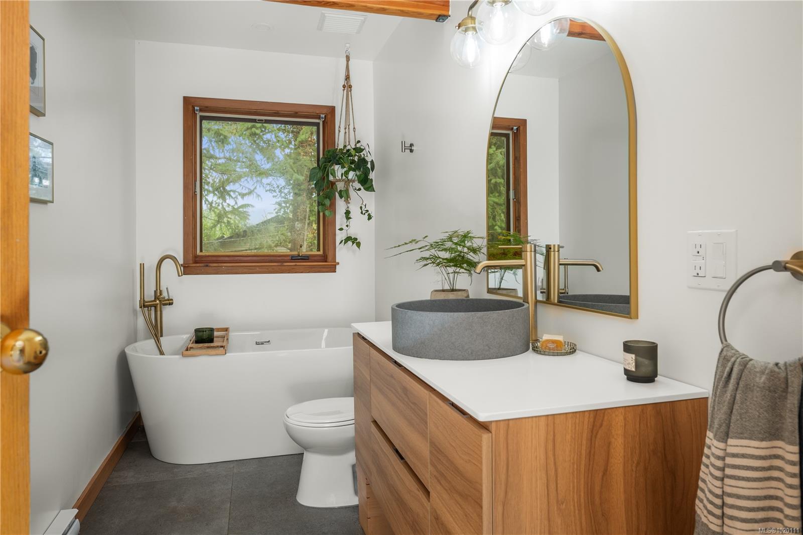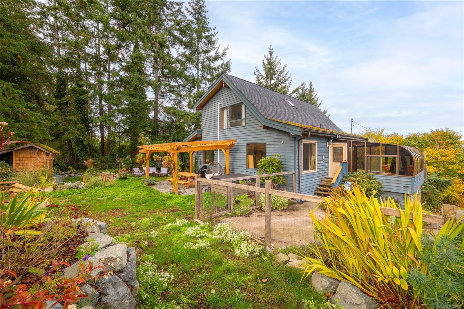 An exceptional lifestyle property blending timeless charm with modern touches, this beautifully updated West Coast Lindal home sits on a 0.31-acre lot in Upper Lantzville. Boasting 2,252 sqft of living space over 3 floors, there are 3 beds, 3 baths, and an open-concept layout accentuated by vaulted ceilings and expansive windows that flood the interior with natural light. Features include a well-appointed kitchen, spa-inspired bathrooms, a spacious sunroom, and balcony, while a self-contained bachelor suite offers income potential or guest accommodation. Extensive gardens provide a tranquil retreat from the stressors of daily life and feature flower beds with drip irrigation and all-season plantings, fruit trees, and a chicken coop for self-sufficiency, while rewilded landscaping benefits the environment and enhances the serenity of this space. Rarely does a property of this caliber become available—don’t miss the opportunity to call it home. Verify data and measurements if important.