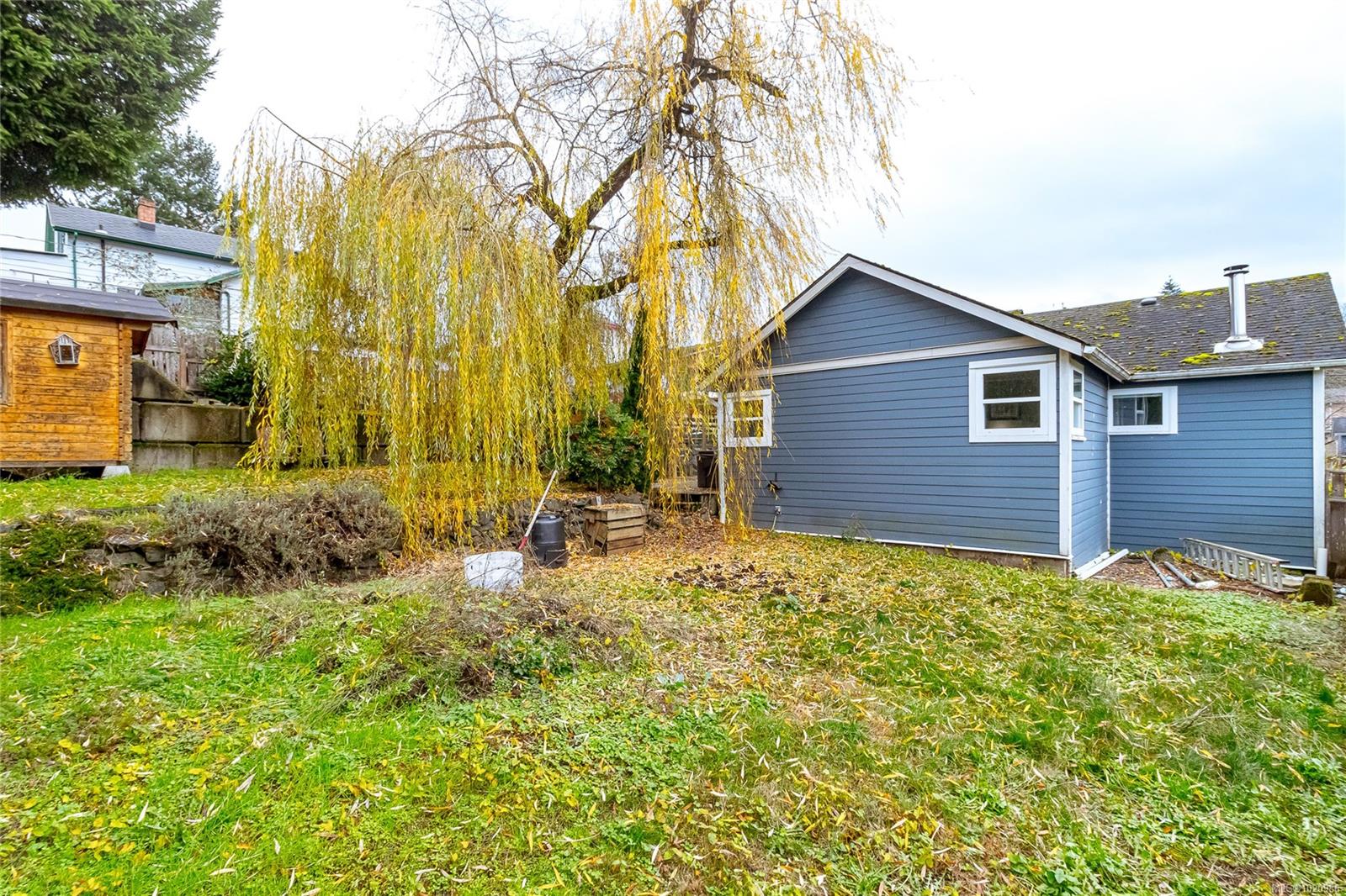 Cute as a button this updated main level entry home is close to all amenities. This charming 2 bed, 1 bath home is situated on a sunny, fenced, 0.19 acre lot w/ expansive outdoor space & room for boat or rv. Short walk to beach, trails, park, elementary school & Chemainus Village Square which offers a gym, restaurant, grocery store, bank, & more. This property and location has many qualities that make it ideal for first time buyers, investors or those looking to downsize. Cozy, neat, & tidy. Main floor consists of a eat-in kitchen w/ breakfast bar, living room w/ cathedral ceilings & woodstove, 4 pce bath, laundry & two bedrooms. Downstairs is an unfinished basement w/ incredible storage or workshop & exterior access. The outdoors is your own little oasis w/ established landscaping, useable yard, storage shed, room for a garden & over 800sq ft of deck space. Additional features include gas furnace,vinyl windows, hardiplank, & more. Easy to show ready to go!