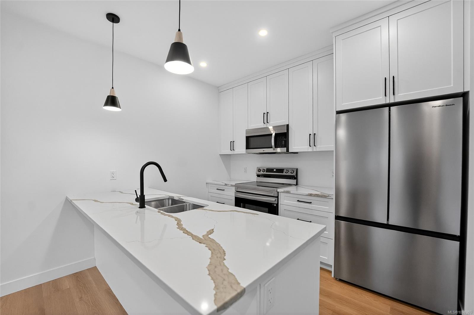 Discover effortless contemporary living in this brand-new 3-bedroom, 2-bathroom half duplex, thoughtfully crafted for comfort and ease. Enjoy full ownership with no strata fees, giving you flexibility without the added expense. Inside, large windows, soaring 9-foot ceilings, and an open-concept design create a bright, welcoming atmosphere. The kitchen is both functional and stylish, showcasing quartz counters, stainless steel appliances, and ample cabinetry. A high-efficiency heat pump ensures year-round comfort—cool during warm months and warm when the weather turns. Perfectly situated in a sought-after location, this home is just moments from the Trans Canada Trail and a short walk to river access, offering incredible convenience for nature lovers and those who appreciate an active outdoor lifestyle. Be the first to live in this modern, low-maintenance home in the heart of Lake Cowichan—your next chapter starts here. Measurements are approximate, please verify if important.