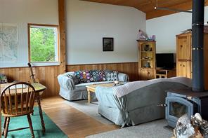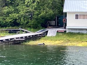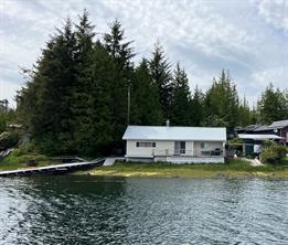 Family-friendly move-in ready home in Hunts Inlet! 6.38 acres with approx. 108ft of walk-on oceanfront as well as a private dock. The home offers bright, open living spaces with high ceilings. The living room features a free-standing wood stove, wood floors and large windows overlooking the oceanfront. The kitchen includes a pantry, a double sink and a propane range, with sliding doors leading to the oceanside deck. A mud room entrance at the back houses the washing machine and propane fridge. There are extensive walkways around the home, a detached workshop, a woodshed, a generator building, outhouse and covered ATV parking. Off-grid power and water systems in place. Being sold with most furnishings and sundry items in place, as well as two sea kayaks and a dockside fish cleaning table. Porcher Island is approximately 25 miles wide and just a few miles from the mouth of the magnificent Skeena River, approximately 16 nautical miles from Prince Rupert.
