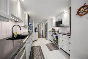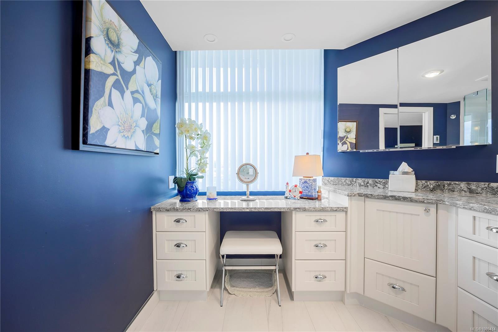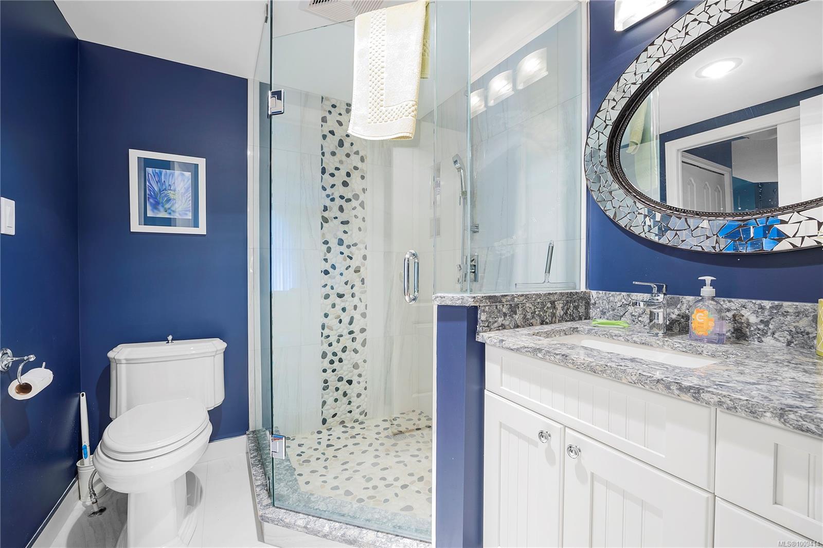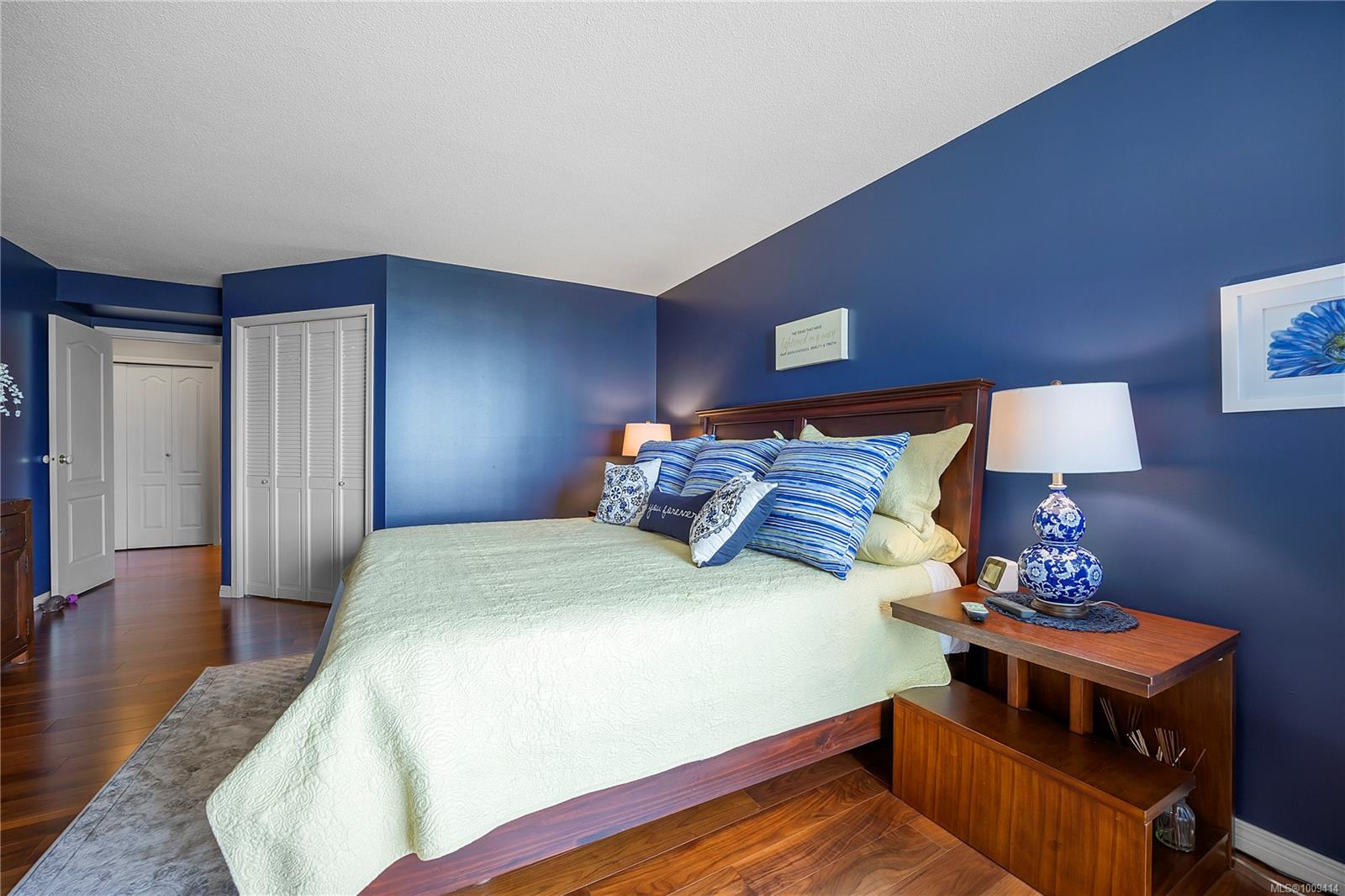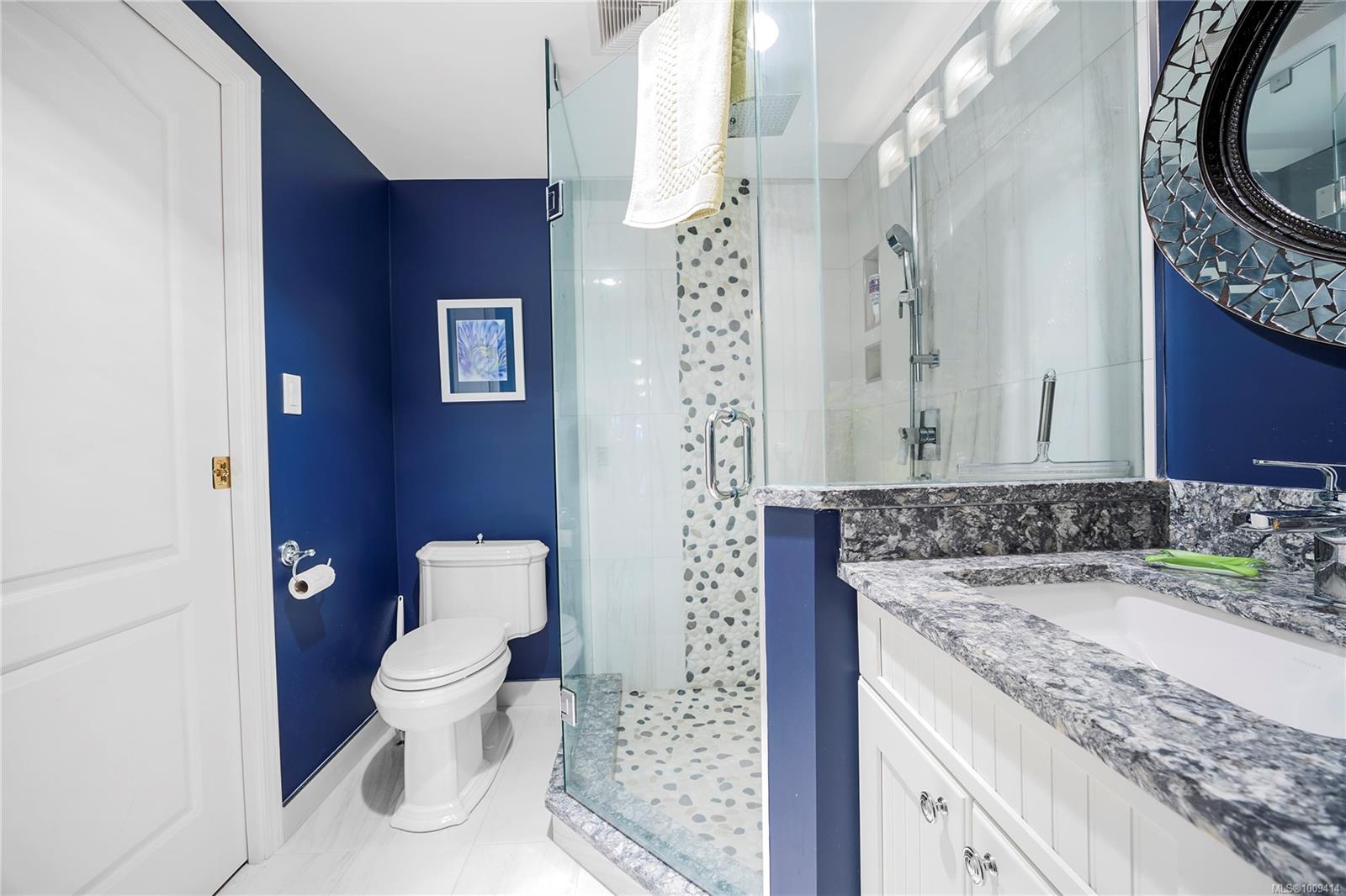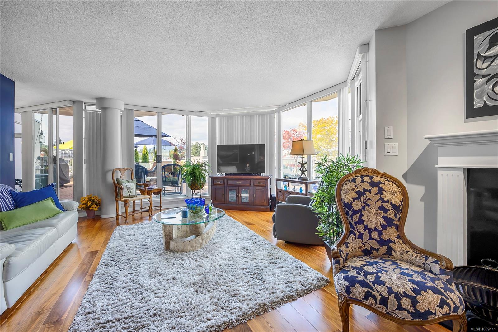 Experience luxury living in this stunning 2 bed, 2 bath 5th floor penthouse condo in the prestigious Gabriola building at Cameron Island, nestled in the heart of downtown Nanaimo. Spanning over 1,700 sq ft of refined interior space, this home offers views of the ocean, city, & mountains through floor-to-ceiling windows & from the expansive 1,000 sq ft private patio. Inside, enjoy rich hardwood & tile flooring, granite countertops, & sleek, newer cabinetry that blends functionality with elegance. The open-concept layout seamlessly connects the living, dining, & kitchen areas, creating a bright & inviting atmosphere. The spacious primary suite features a luxurious ensuite & a walk in closet dressing space. With 2 underground parking spaces & large storage room. With unbeatable walkability to the waterfront, shopping, restaurants & entertainment this exclusive penthouse offers the best of west coast living. 1 Dog or Cat friendly (Max 25 lbs). All data is approximate and to be verified.