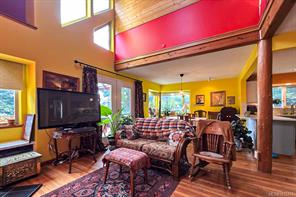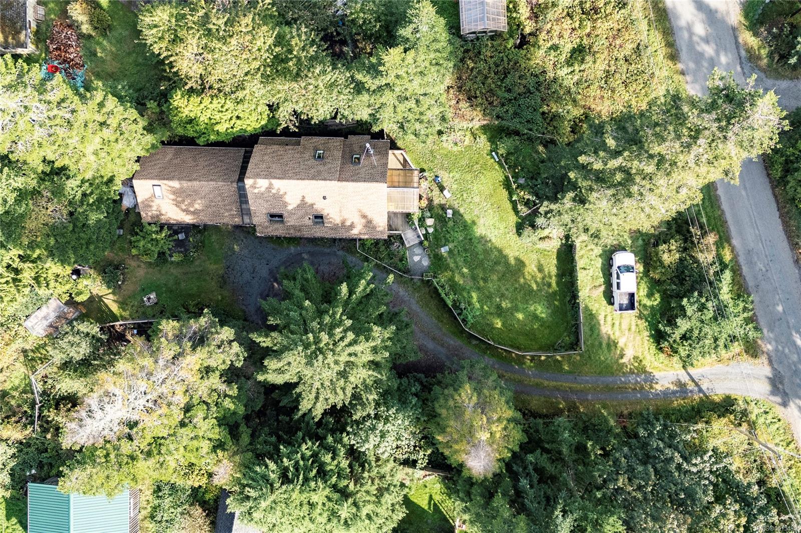 Welcome to this inviting two-level home, built in 2001, perfectly situated on a peaceful half-acre in a desirable residential area of Quadra Island. The main level entry features vaulted ceilings and an open-concept floor plan. Beautiful ocean views across Sutil Channel. The main floor includes a comfortable bedroom and a 3-piece bathroom with a shower. Upstairs, you’ll find a versatile loft area and two additional bedrooms. The primary bedroom is also located on this level, along with a 4-piece bathroom featuring a bathtub. Practicality meets convenience with a mudroom/laundry area and a covered breezeway connecting the home to the detached guest suite. The guest suite offers excellent potential—ideal for extended family, visitors, or even rental income. Outside, the property is surrounded by mature trees, ensuring privacy, and includes multiple fenced garden areas along with a greenhouse/potting shed for the gardening enthusiast.