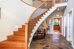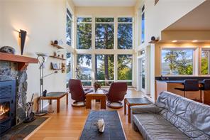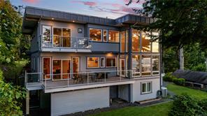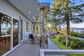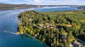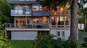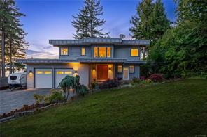 Outstanding ocean views of Seymour Narrows captivate from this beautifully designed, custom built contemporary home—offering luxury living in a serene, natural setting. This quiet, highbank oceanfront property features breathtaking, everchanging marine vistas from an open concept kitchen and living room that flow seamlessly onto a spacious outdoor deck. A handcrafted circular fir staircase invites you to the upper floor, where the primary bedroom boasts a private balcony, two walk-in closets, and a grand ensuite with soaker tub and steam shower. The upstairs also features a second bedroom and 3-piece bathroom. On the main floor, a second primary bedroom includes a 4-piece cheater ensuite and access to a lovely patio, perfect for guests or as an office. The walk out basement, two car garage with workshop area, and ample driveway parking for vehicles and an RV add function to form. Race Point is private, prestigious, and just 15 minutes north of downtown Campbell River and its amenities.