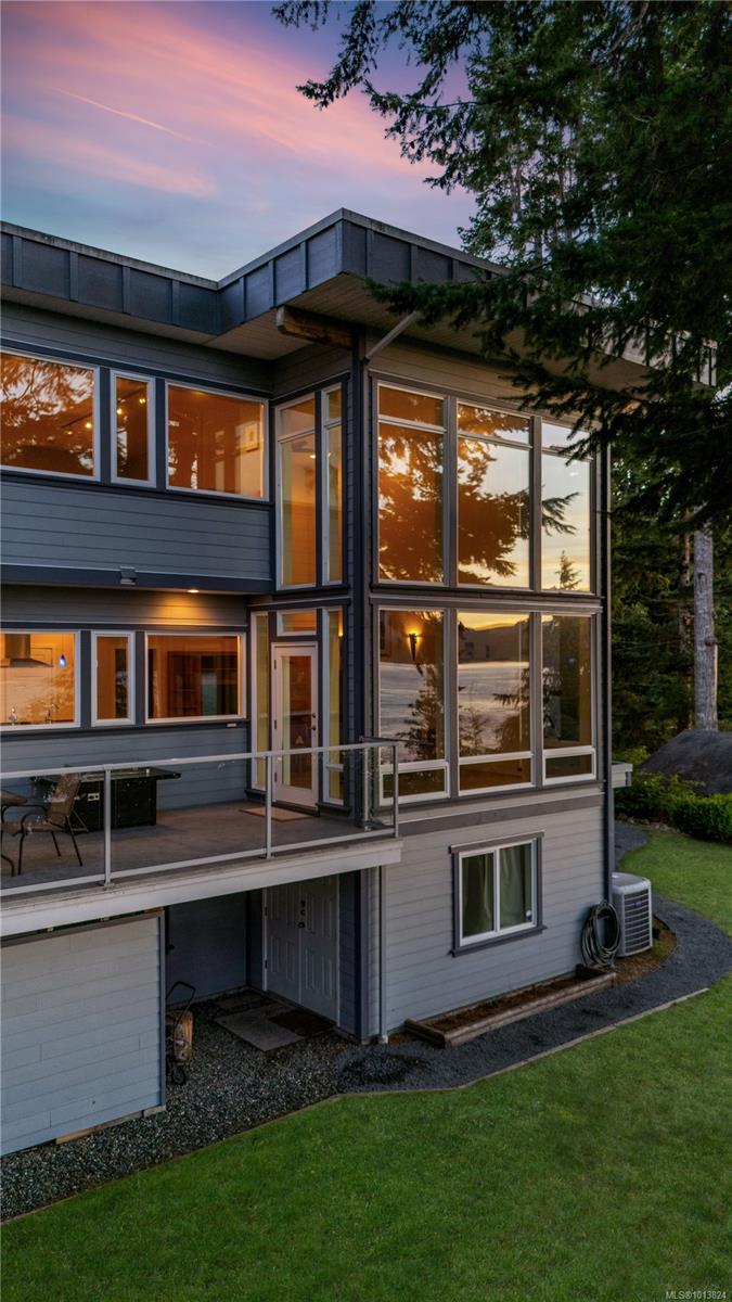 Outstanding ocean views of Seymour Narrows captivate from this beautifully designed, custom built contemporary home—offering luxury living in a serene, natural setting. This quiet, highbank oceanfront property features breathtaking, everchanging marine vistas from an open concept kitchen and living room that flow seamlessly onto a spacious outdoor deck. A handcrafted circular fir staircase invites you to the upper floor, where the primary bedroom boasts a private balcony, two walk-in closets, and a grand ensuite with soaker tub and steam shower. The upstairs also features a second bedroom and 3-piece bathroom. On the main floor, a second primary bedroom includes a 4-piece cheater ensuite and access to a lovely patio, perfect for guests or as an office. The walk out basement, two car garage with workshop area, and ample driveway parking for vehicles and an RV add function to form. Race Point is private, prestigious, and just 15 minutes north of downtown Campbell River and its amenities.