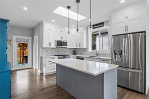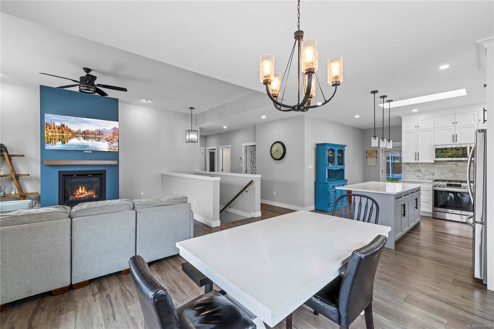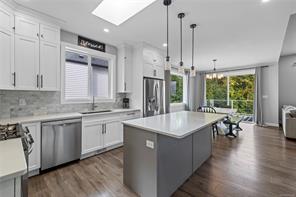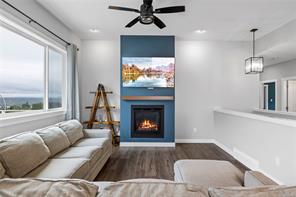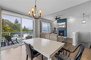 This family home combines contemporary design w/ ocean views & a versatile layout, offering 5 bedrooms + a den & 3 bathrooms. The bright, open-concept main level features a sleek colour palette, large windows & a skylight that fills the space w/ natural light. The kitchen has everything you could ask for w/ quartz countertops, a full SS appliance package including a gas range, a large island & a spacious pantry. Off the dining room the front deck extends your living space with sweeping ocean views. The main level also offers 3 bedrooms, including the primary suite w/ a walk-in closet & ensuite featuring a double vanity & walk-in shower. Access the rear yard from the main level to enjoy a covered back patio, fenced yard w/ hot tub & plenty of room for family fun. The lower level adds 2 more bedrooms, a full bath, a den & a large rec room, laundry & a double garage w/ epoxy coated floors. This home is efficiently heated & cooled w/ a natural gas furnace, heat pump & hot water on demand.