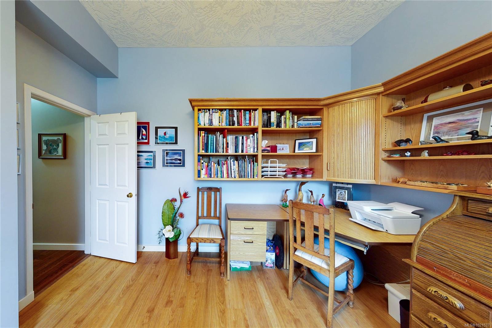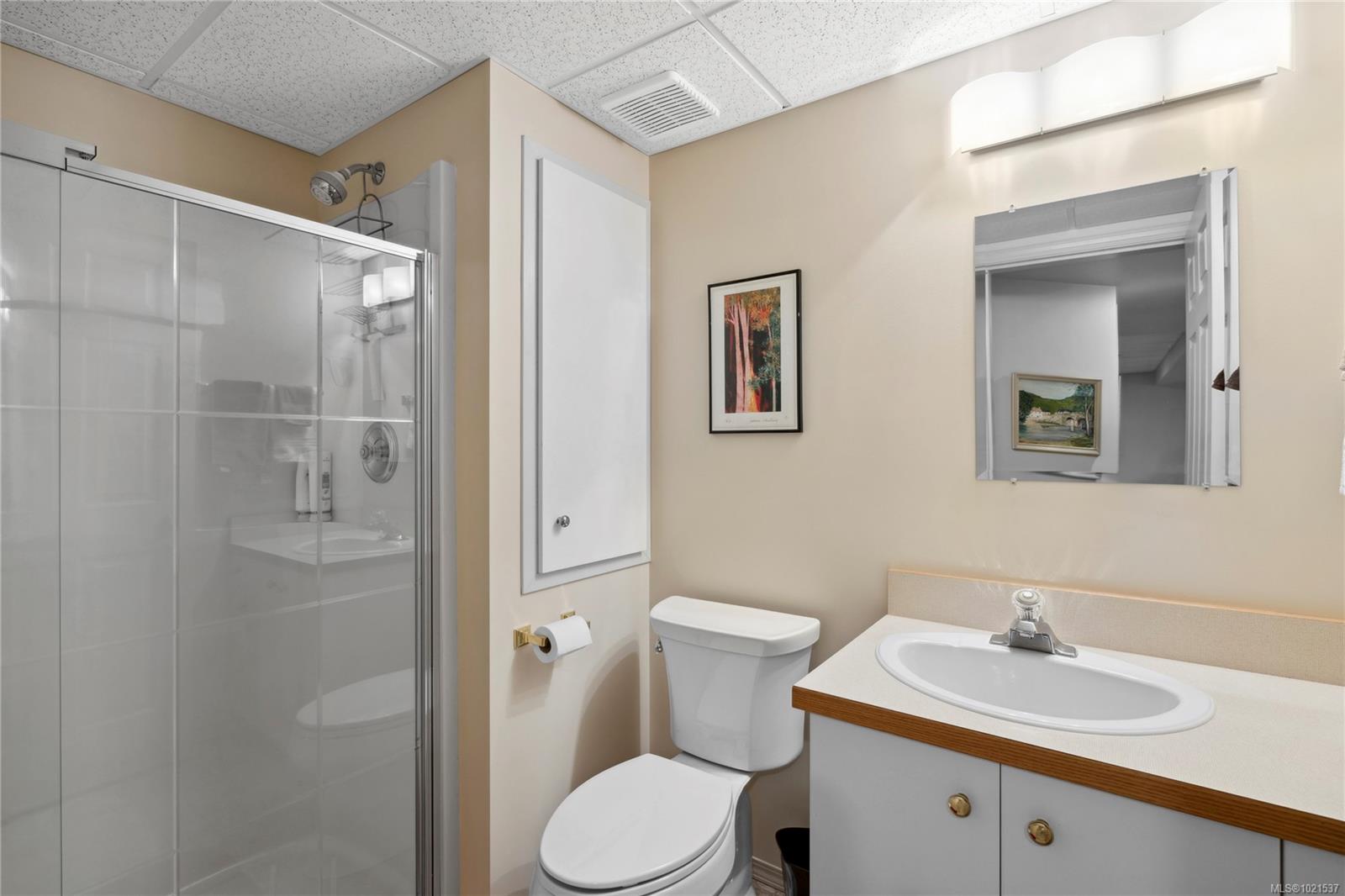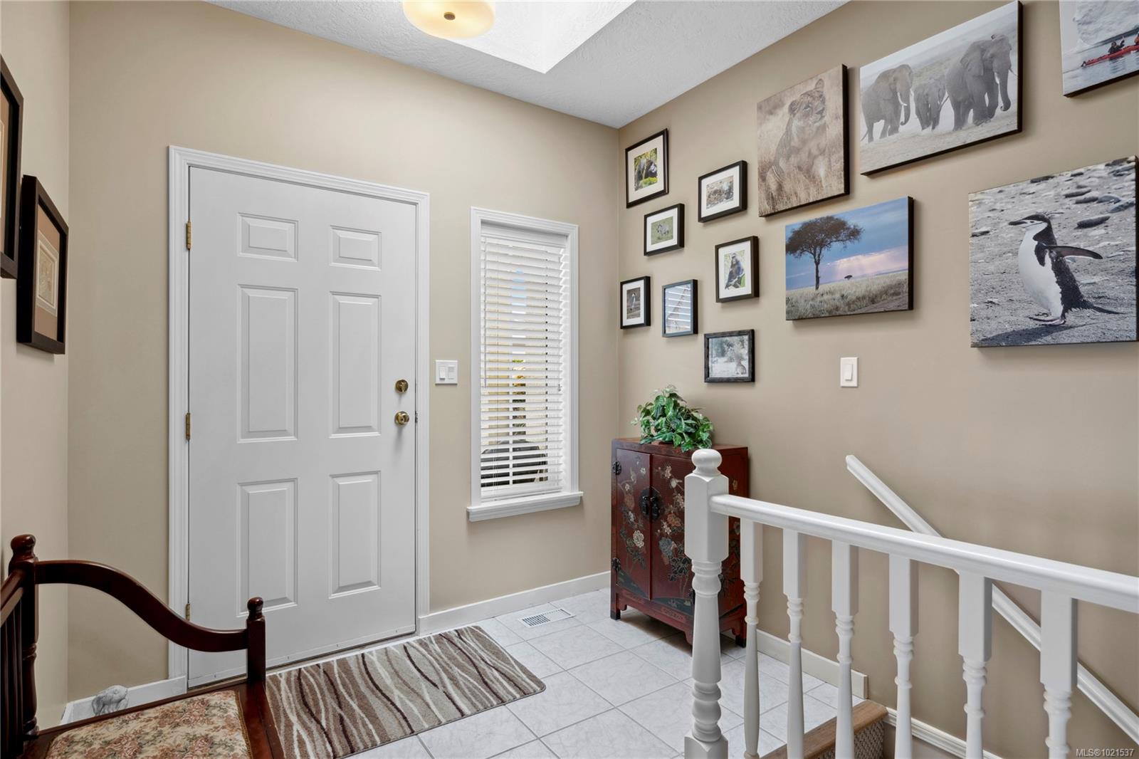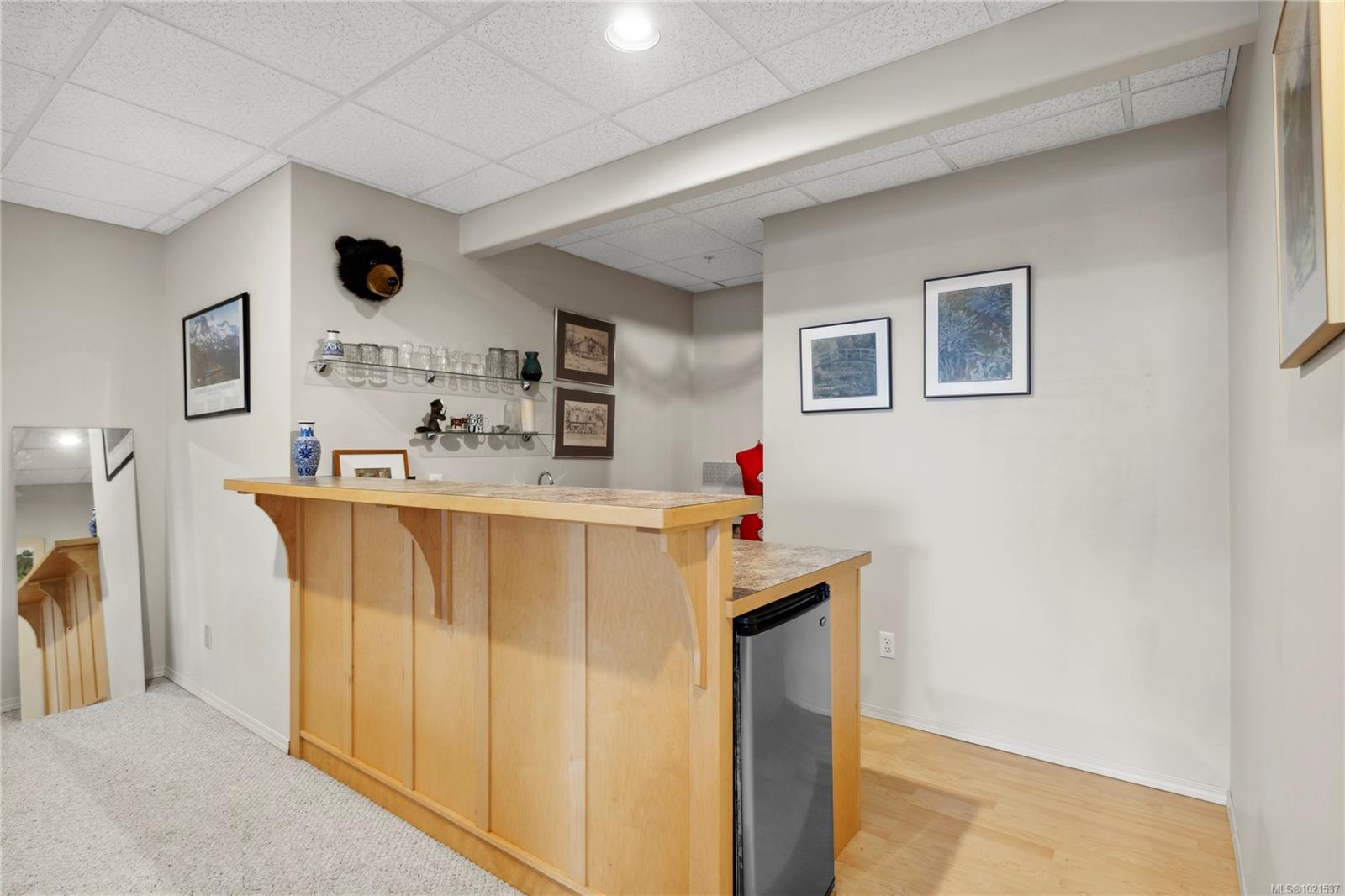 Located in the sought-after 55+ community of The Terraces, this main level entry townhouse with a walk-out basement offers a functional and comfortable layout in a prime North Nanaimo location close to all amenities. The open-concept main floor features a bright living room with gas fireplace, dining area, and kitchen with white cabinetry, an eating bar, and four appliances. Step outside to an ocean view deck off the living room or relax on the private front patio. The main level includes two bedrooms, including a primary with dual closets and a four-piece ensuite, plus a three-piece bathroom and laundry room. The lower level offers a large family room with wet bar, a third bedroom, and a three-piece bathroom—ideal for guests. A covered patio and expansive unfinished storage area add flexibility and convenience. The complex offers a great sense of community, a clubhouse and allows one dog or cat up to 12kg. All data and measurements are approx and must be verified if fundamental.