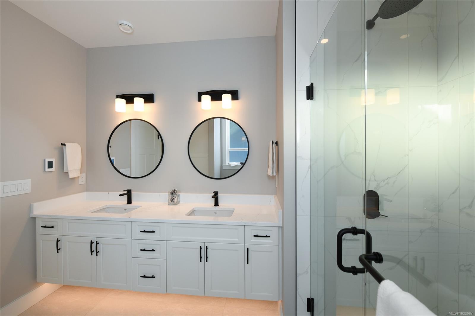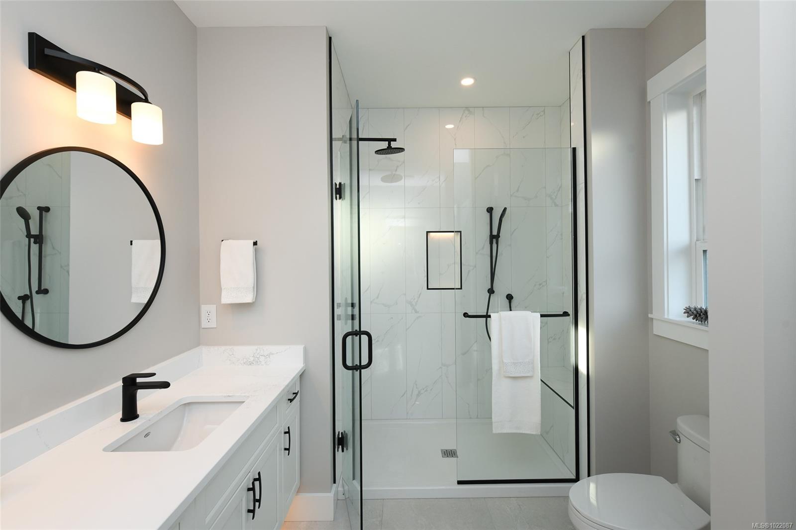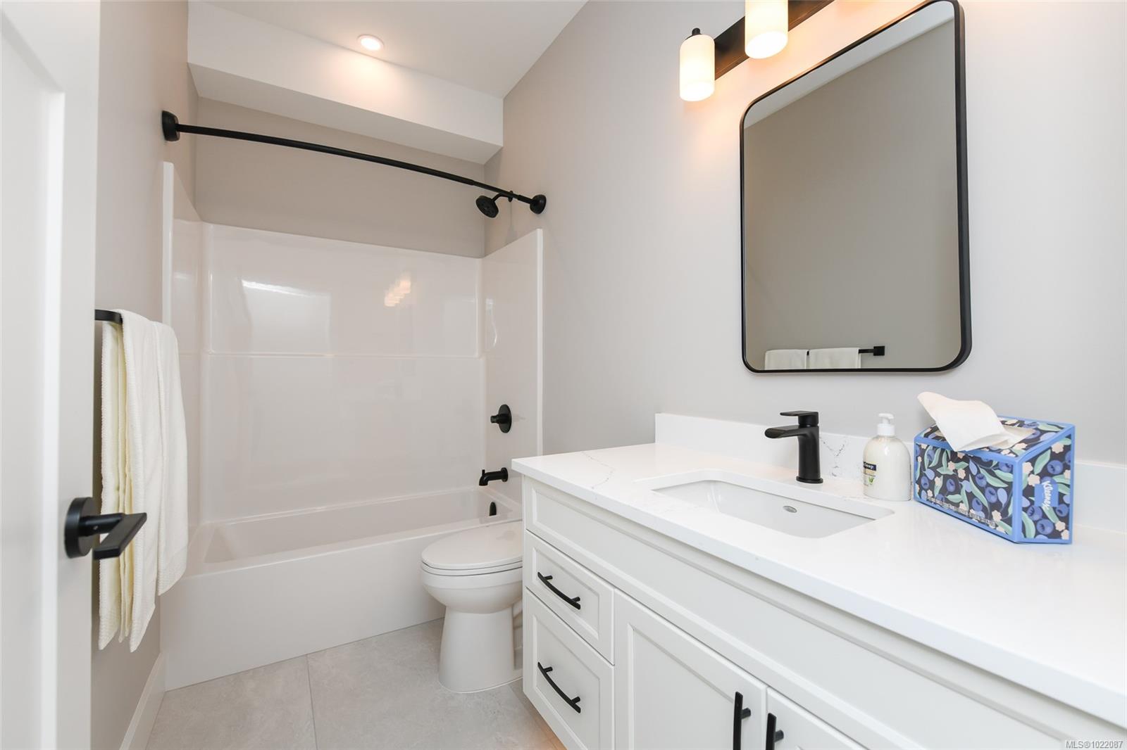 This quality-built home by Lawmar Construction offers fantastic mountain views! It has 2702 sqft of living space over two levels that includes a legal, 720 sqft, 1 bed/1 bath suite for mortgage helper or extended family. Bright main level up has an inviting open concept kitchen/dining with quartz counters, full height quartz backsplash, stainless appliances & an island. Enjoy those mountain views from the light & bright living space while warming yourself by the cosy gas fireplace or from the front deck. Three bedrooms up including the primary with 4pce ensuite & walk-in closet. A family room on lower level complete the main portion of the home. The self contained suite features large windows, a covered patio area & is separately metered. Features: two 40 gallon hot water tanks, heated bathroom floors, heat pump, ERV, prewired EV charging station. 10 year NHW. Minutes to the amenities of Courtenay & the recreational mecca of Cumberland. You won’t want to miss out on this fabulous home!