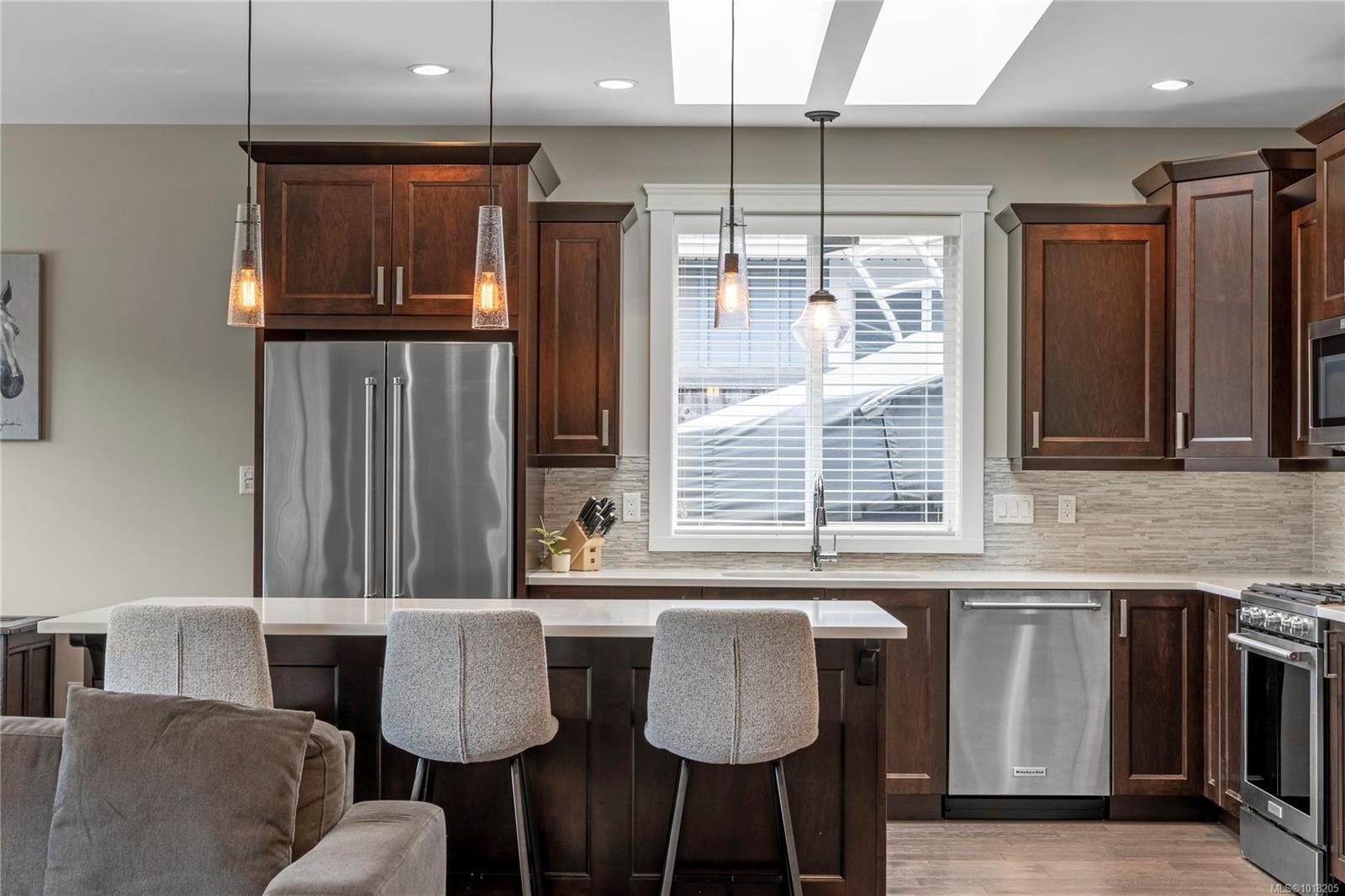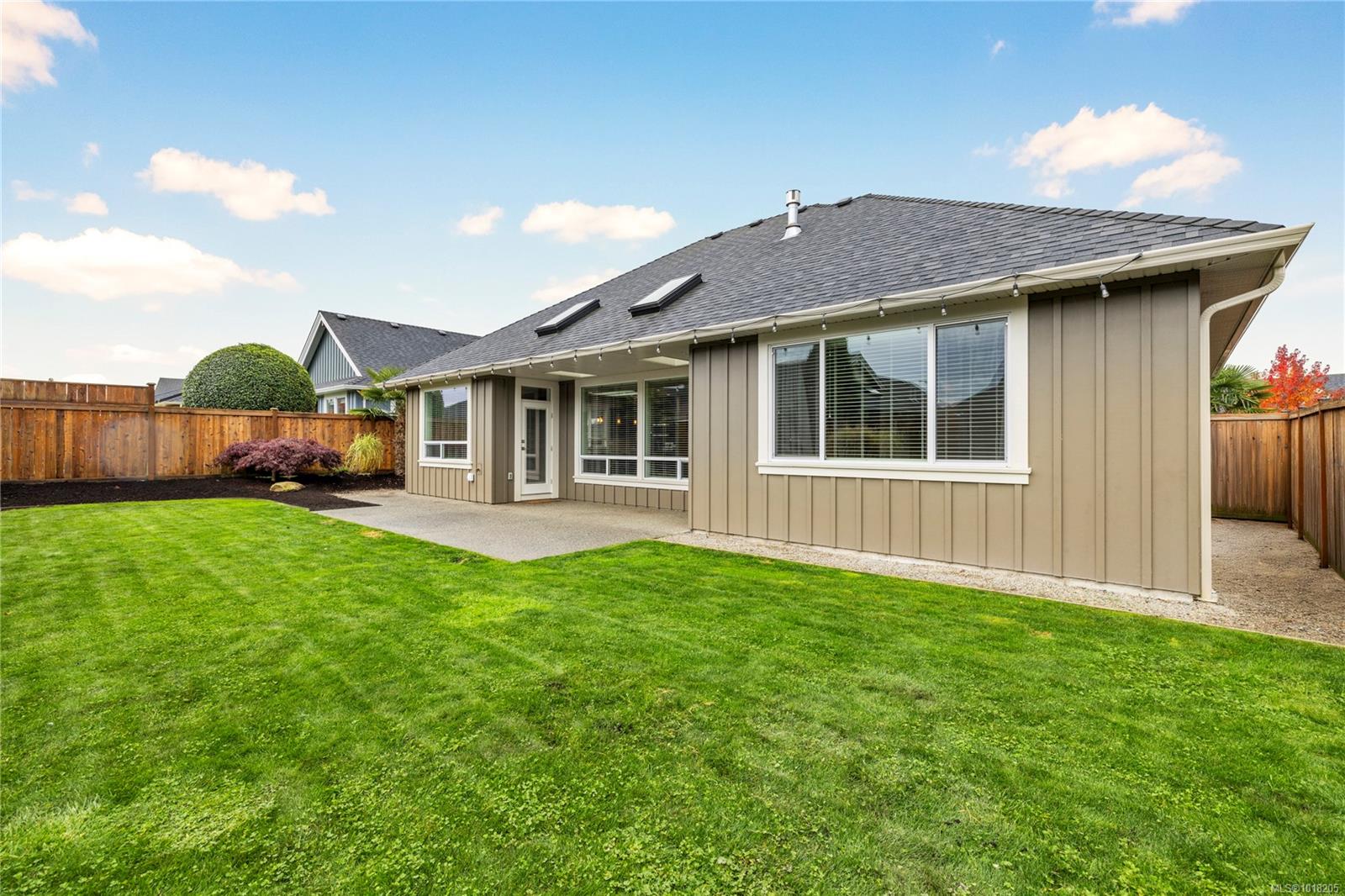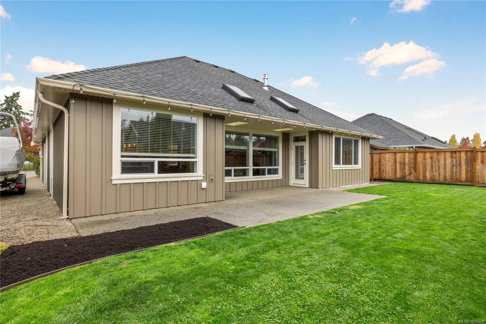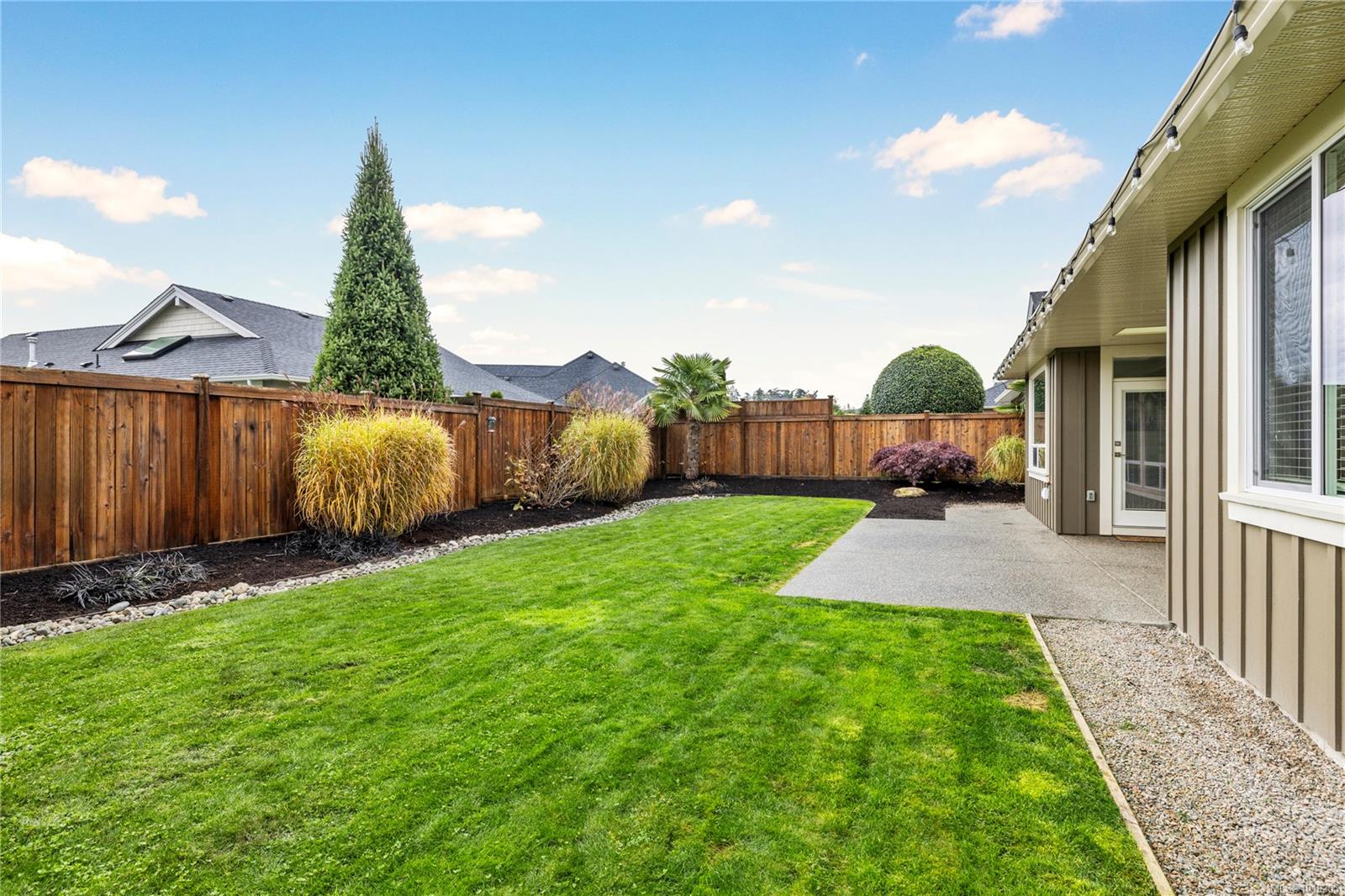 3 bedroom Cedar Ridge rancher on a crawl space! All the features you would expect in a Cedar Ridge home including bright open plan living with a beautifully finished and equipped kitchen including quartz counters and a gas range. Adjoining dining and living areas are nicely appointed offering easy flow through the space. A cozy gas fireplace and access to the partially covered patio add to the appeal. The large primary bedroom with trayed ceiling has a nicely fitted w/i closet and a luxe 5 piece ensuite bath with heated floors. Enjoy efficient heating and cooling from the heat pump and the convenience of hot water on demand. Outside is nicely landscaped with a sprinkler system, the patio has wiring installed for a hot tub, the backyard is big enough for entertaining or playing with the kids, and there’s loads of RV parking. All located a short distance to shopping, the beach, schools and downtown.