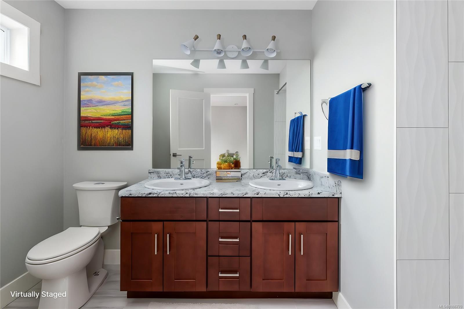 Welcome to this thoughtfully designed collection of modern lifestyle townhomes in the heart of Chemainus. Tucked away in a serene, natural setting with a protected backdrop just moments from every convenience, these brand-new homes offer the perfect blend of tranquility & accessibility. Step inside & experience comfort at its finest. This beautiful 3 bed, 3 bath unit offers 1812 sq.ft of well designed living space. Enjoy the warmth of heated ensuite floors, the elegance of quartz countertops & the cozy ambiance of an electric fireplace. Designed for effortless living, this home includes a walk-in crawl space, plus an energy-efficient gas furnace & tankless gas hot water. A 50-year metal roof & new home warranty provide lasting peace of mind. The spacious tandem garage accommodates two vehicles, or could easily be transformed into additional living space or a fantastic home gym.