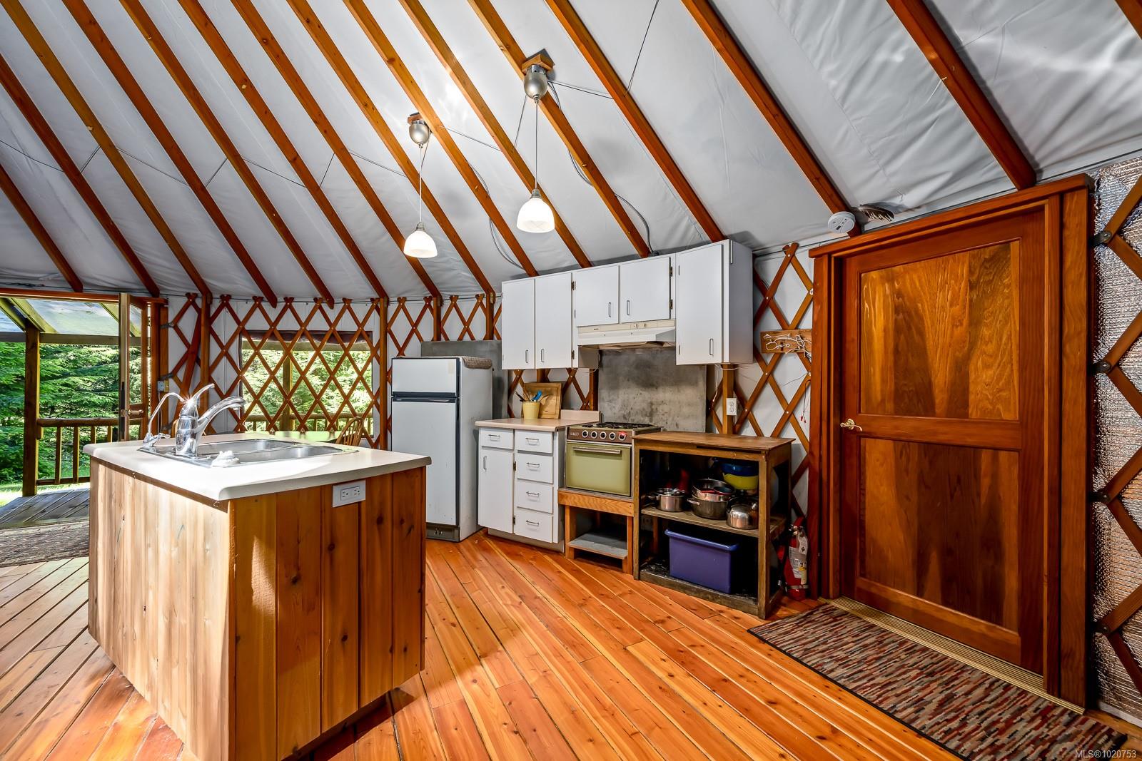 5.34-acre private oasis featuring mature mixed forest, sunny meadow, a large pond, and a spacious 30′ yurt. Tucked back from the road, the property offers exceptional privacy while remaining just a 5-minute walk to Gorge Harbour Marina Resort, Gorge Hall, the post office, and the dock. A shallow, year-round well supplies water to the yurt, and solar panels power the lights and pump from spring through fall. A septic feasibility study has been completed, and an easement provides driveway access to the property. Zoning allows for a house and secondary cabin, and there is potential for a second driveway off of Whaletown Road. Rich soil, pond and year round creek, and a beautiful forest make this a rare find for those looking to bring their vision to life.