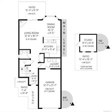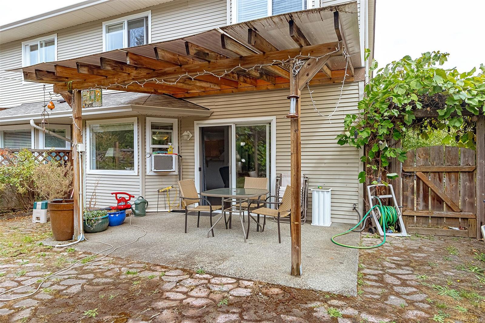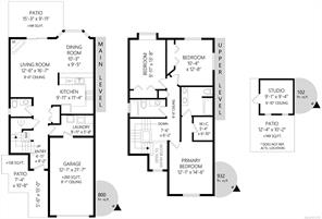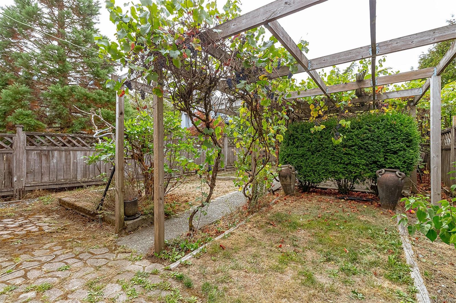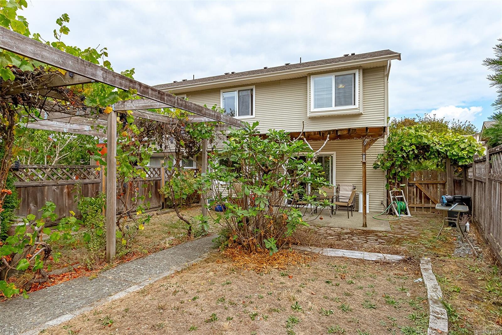 Easy living and heaps of space in this 3 bed 2.5 bath home with with a bright and sunny backyard plus a studio. On a cul-de-sac, home was freshly painted & new carpeting throughout the upstairs – Aug.2025. Main level has a lovely kitchen, recently updated with new s/s appliances. Dining room & living room are open plan with cozy propane fireplace for chilly nights. Sliding doors lead to a covered south facing patio. Laundry room, half bath and garage round out the lower level. Upper level has 3 bedrooms & 2 full baths. Primary bedroom has 4 piece ensuite & large walk in closet. The bright south & west facing back yard is fully fenced & has 2 patio sitting areas. Path leads to a 100 sq. ft. studio with power & window- perfect for office space, yoga studio or kids’ play room. 2nd patio area has grape wines & a fountain. Large side yard – great for kids or more parking! Mature landscaping with grape & fig trees, easy maintenance. Walk to shops, schools & recreation. A perfect home !