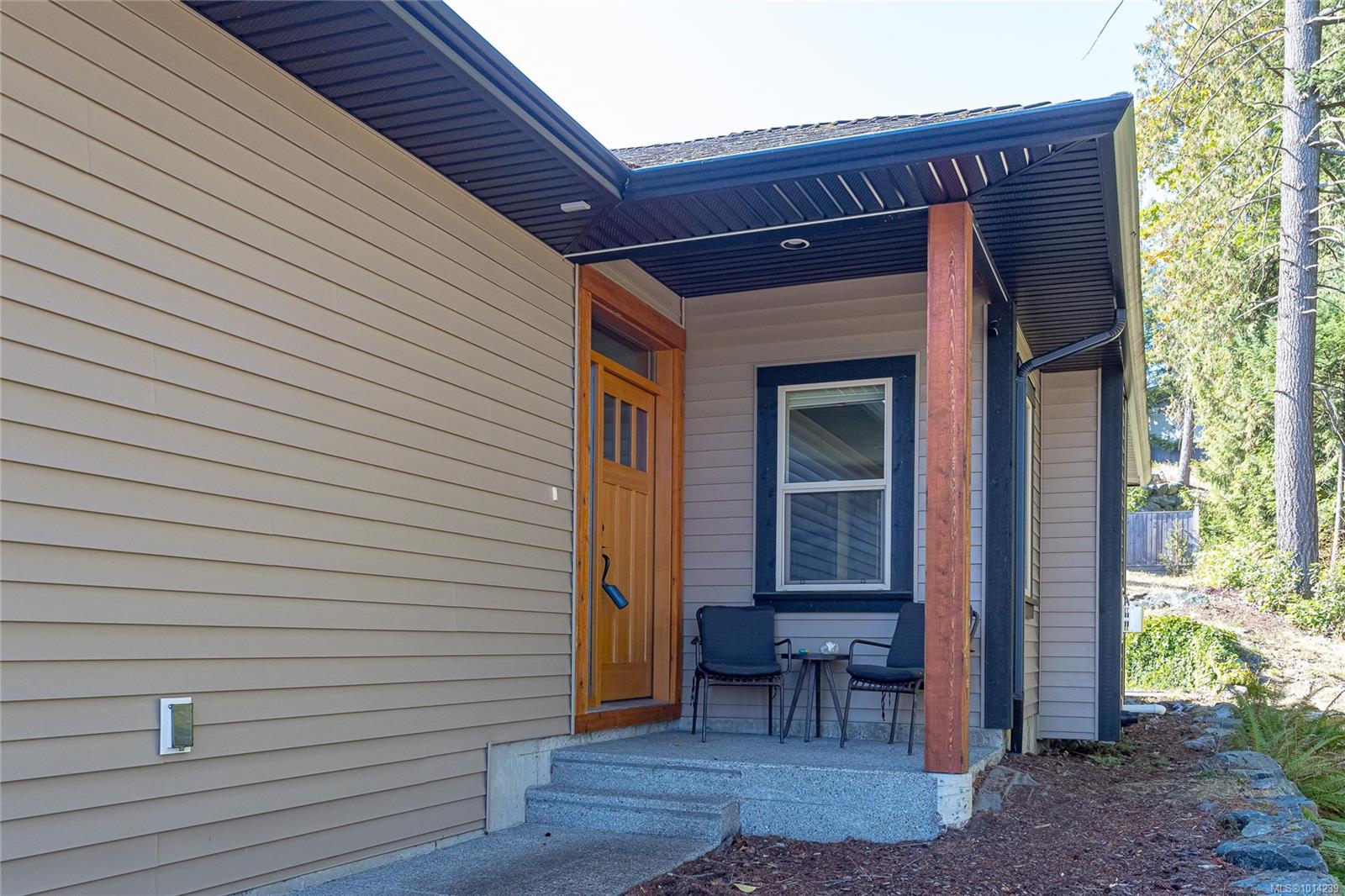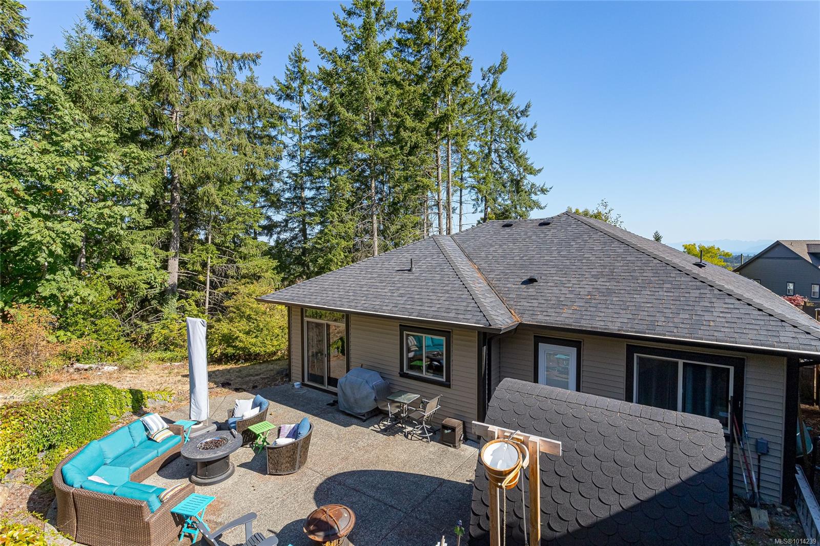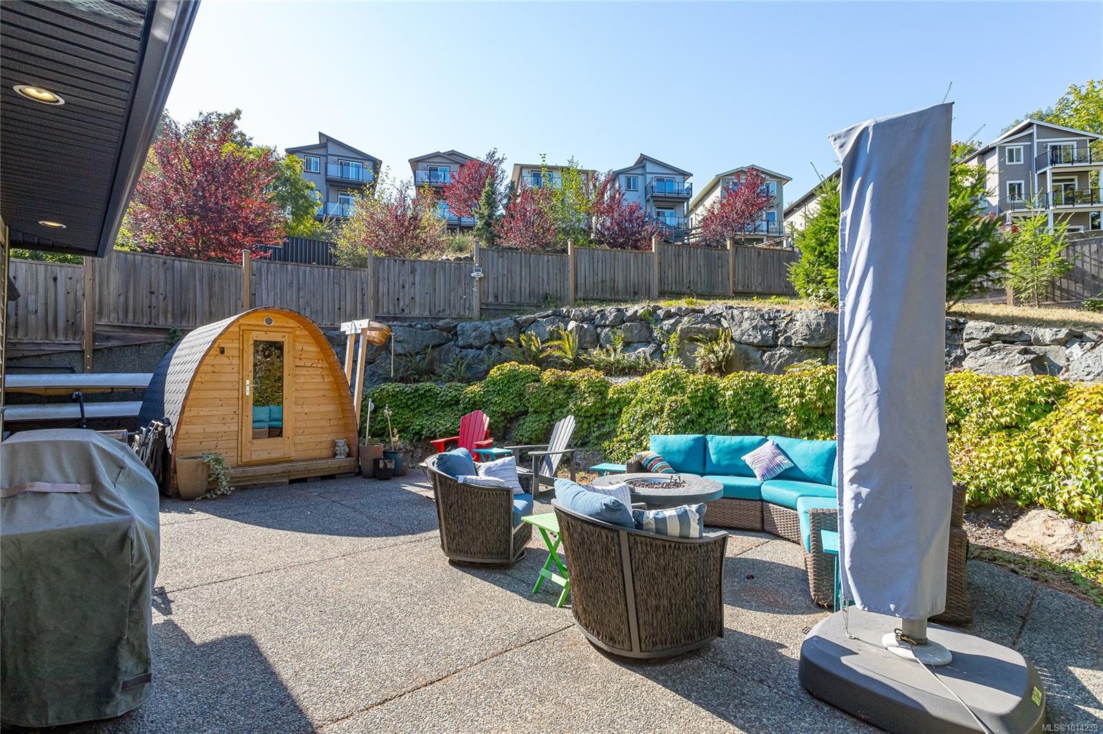Experience the best of Nanaimo living in this beautifully maintained, move-in-ready 2015 rancher in the sought-after University District. This home offers 1,606 sq ft of single-level living on a peaceful corner lot, ideal for downsizers and those craving an easy-care lifestyle. The open-concept layout features a great room with high ceilings and a cozy gas fireplace. The gourmet kitchen is a showstopper, boasting granite counters, a large island, and ample cabinetry. The primary suite is a true retreat with a luxurious 5-piece ensuite and a walk-in closet. The exceptional outdoor space is the signature feature: Step out to your expansive 800+ sq ft custom patio. Enjoy winding down in your built-in sauna—a rare luxury. Additional highlights include a double garage with extra-high ceilings (perfect for storage/workshop), a generous crawlspace, and low-maintenance landscaping. With quick access to Westwood Lake trails and a peek-a-boo ocean view, this is a truly special home.