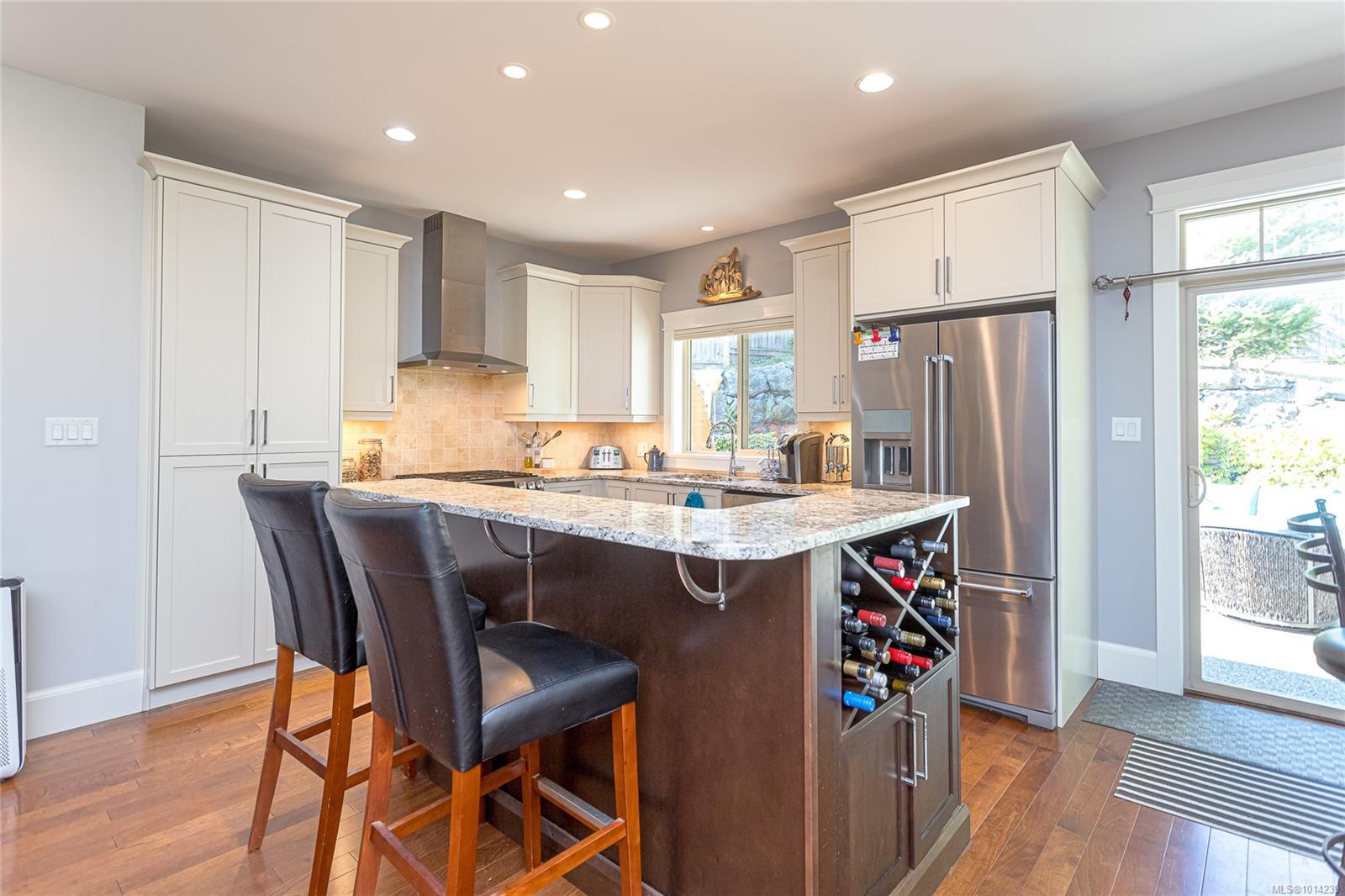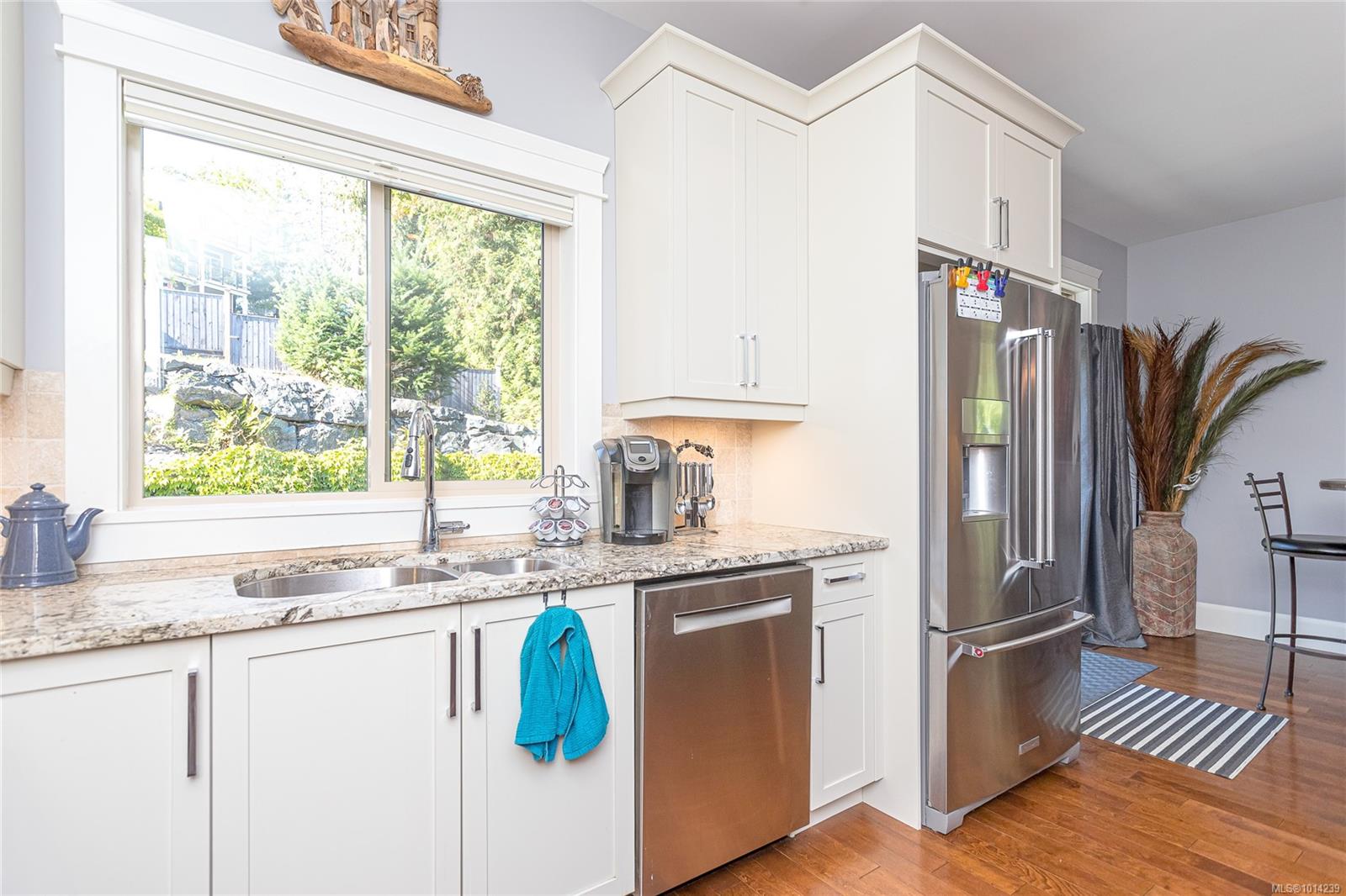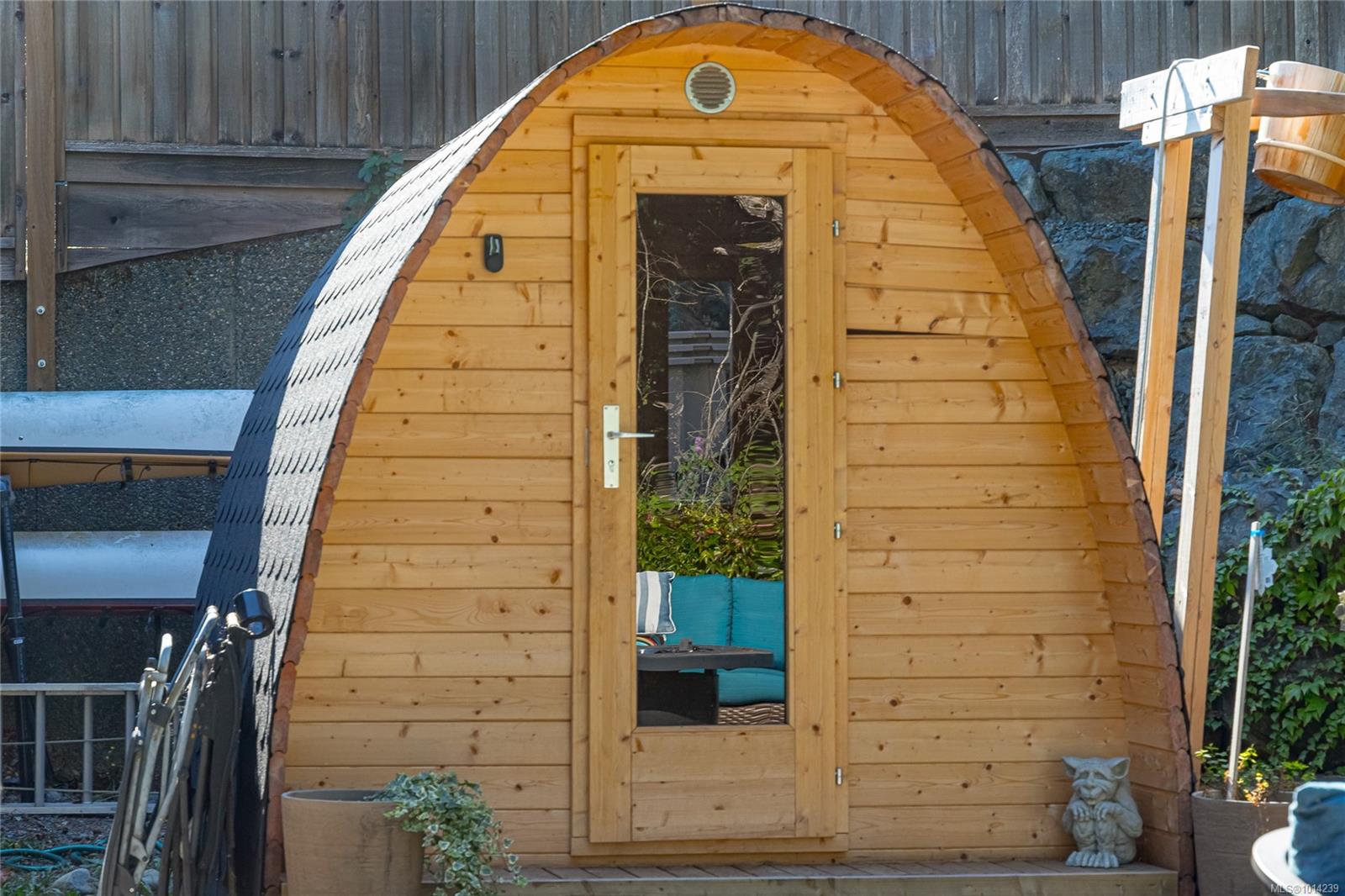 Experience the best of Nanaimo living in this beautifully maintained, move-in-ready 2015 rancher in the sought-after University District. This home offers 1,606 sq ft of single-level living on a peaceful corner lot, ideal for downsizers and those craving an easy-care lifestyle. The open-concept layout features a great room with high ceilings and a cozy gas fireplace. The gourmet kitchen is a showstopper, boasting granite counters, a large island, and ample cabinetry. The primary suite is a true retreat with a luxurious 5-piece ensuite and a walk-in closet. The exceptional outdoor space is the signature feature: Step out to your expansive 800+ sq ft custom patio. Enjoy winding down in your built-in sauna—a rare luxury. Additional highlights include a double garage with extra-high ceilings (perfect for storage/workshop), a generous crawlspace, and low-maintenance landscaping. With quick access to Westwood Lake trails and a peek-a-boo ocean view, this is a truly special home.