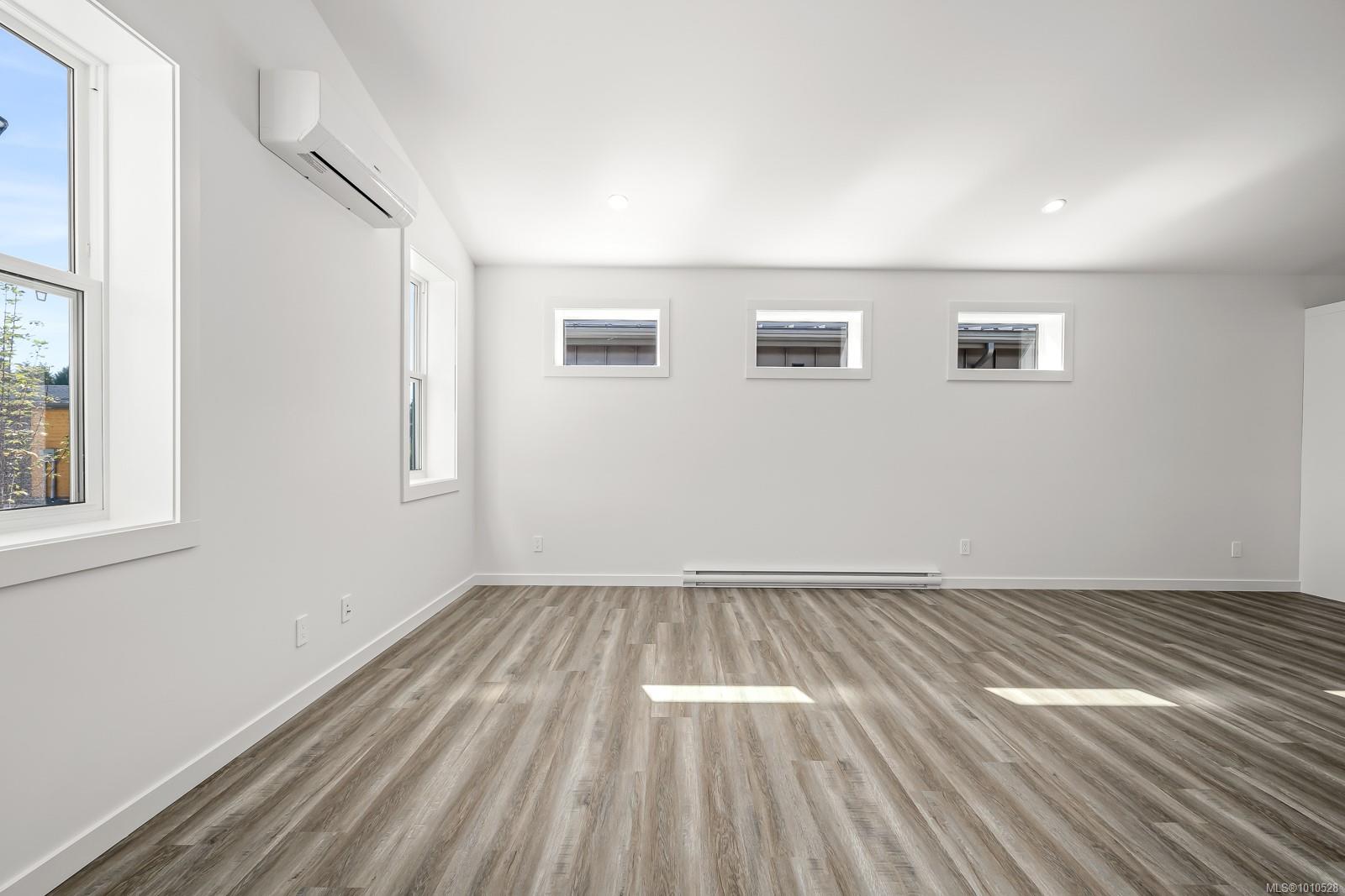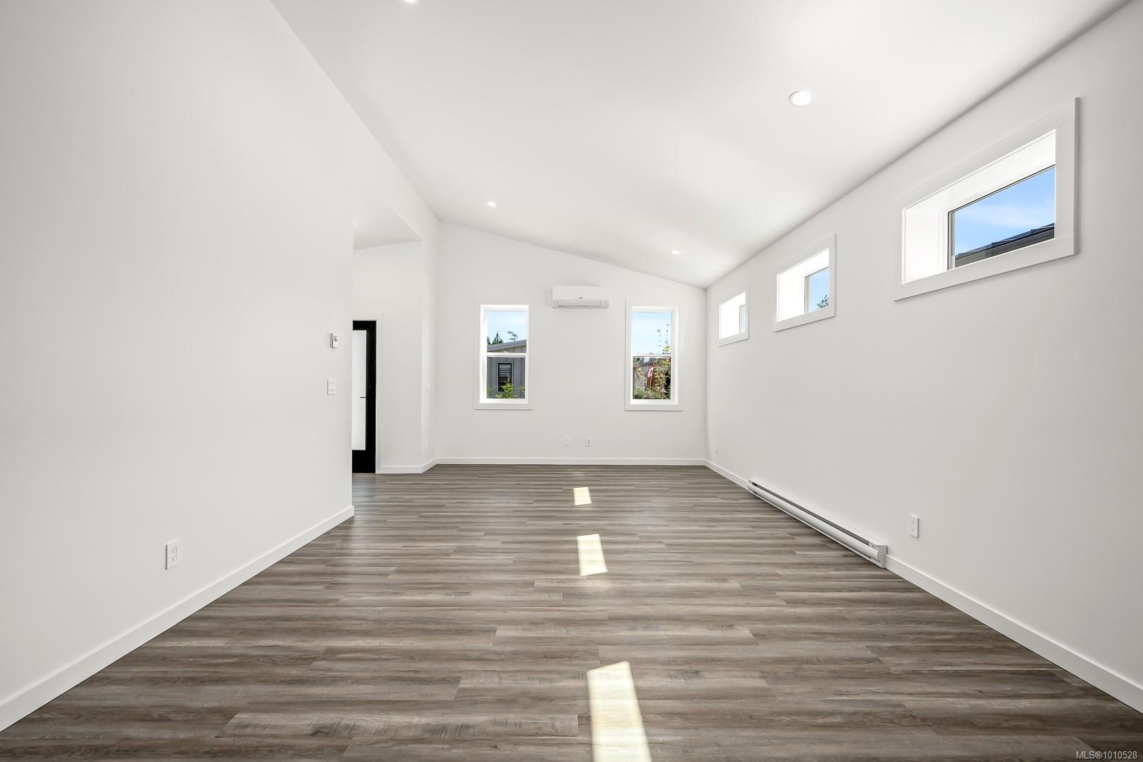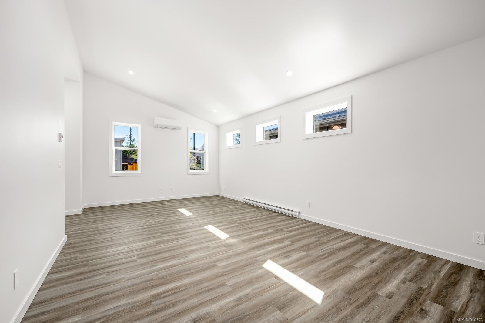 Welcome to the Bennett! You will love our newest layout at the Flats of Cumberland. Spanning an impressive 1,155 sq ft, this 2 bed 2 bath home is simply stunning. Immediately you’ll be drawn to the 12′ vaulted ceilings with plenty of natural light, modern white cabinetry in the kitchen and bathrooms, quartz countertops and accented kitchen island. The black accents pair beautifully with the finishing creating a timeless yet contemporary style. Bask on the sunny southeast facing back patio and enjoy a low low low maintenance yard. FuII appliance package included. Heat Pump as standard. Crawlspace for extra storage. Longer driveway = longer vehicles are no problem. With 4 other layouts available we have what you’re looking for! GST Applies. Book your showing today. More info at www.theflatsofcumberland.ca