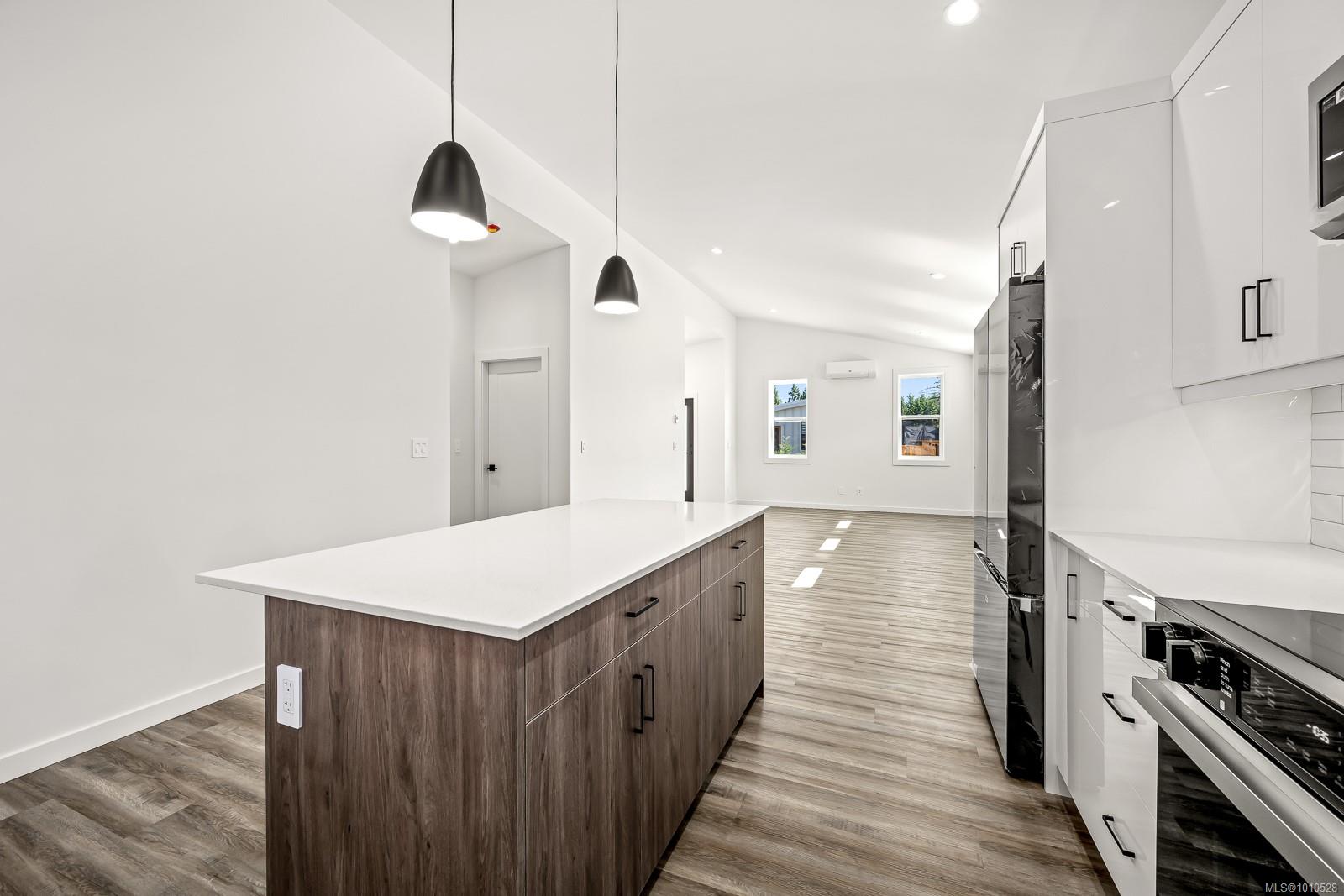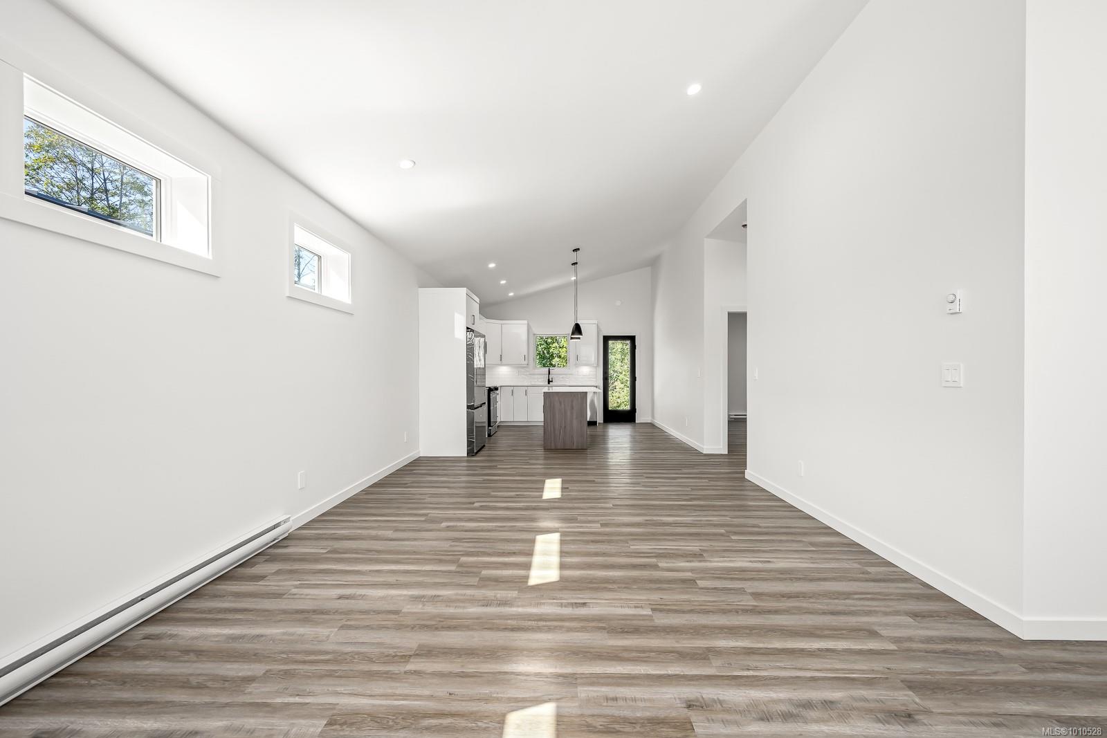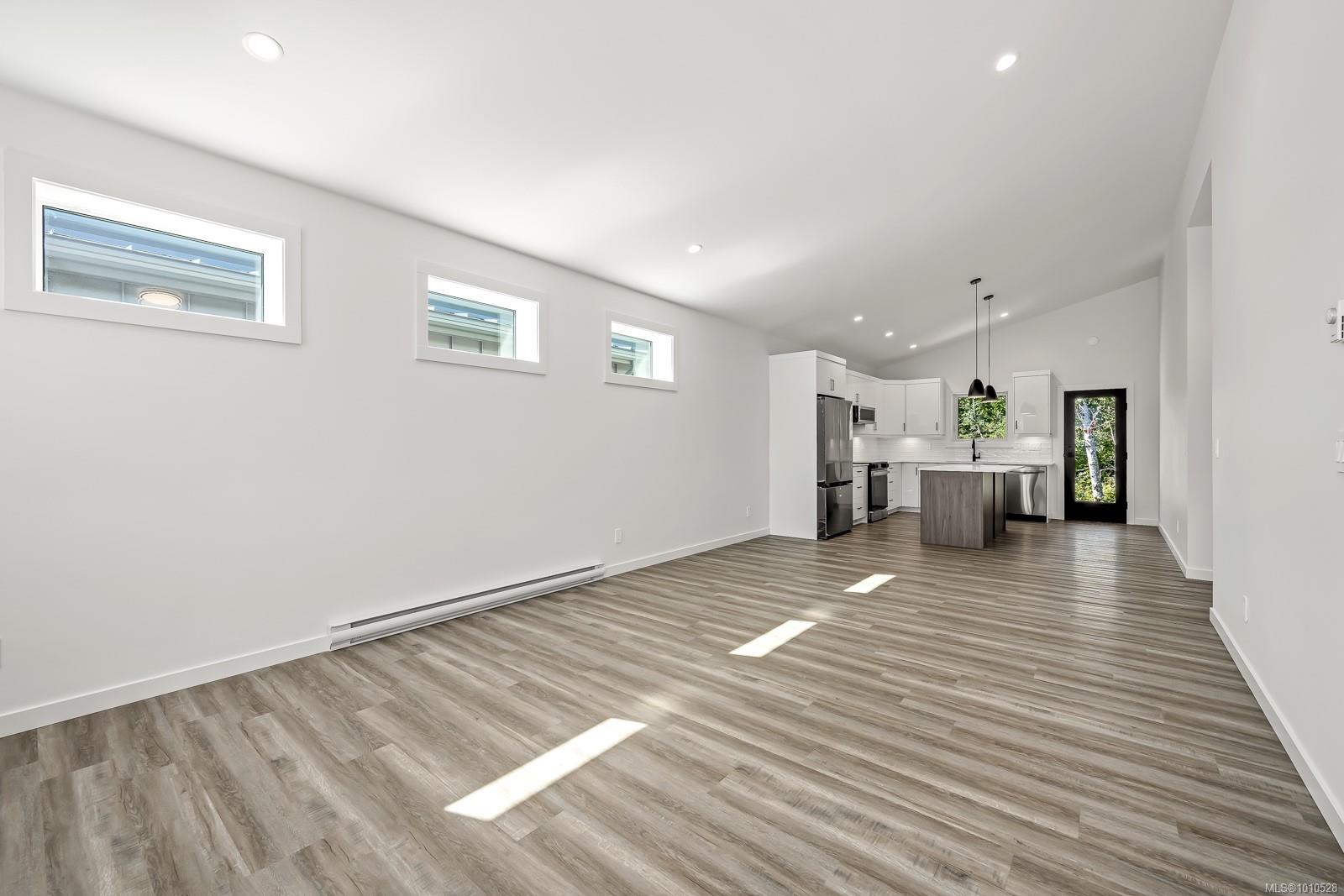 Welcome to the Bennett! You will love our newest layout at the Flats of Cumberland. Spanning an impressive 1,155 sq ft, this 2 bed 2 bath home is simply stunning. Immediately you’ll be drawn to the 12′ vaulted ceilings with plenty of natural light, modern white cabinetry in the kitchen and bathrooms, quartz countertops and accented kitchen island. The black accents pair beautifully with the finishing creating a timeless yet contemporary style. Bask on the sunny southeast facing back patio and enjoy a low low low maintenance yard. FuII appliance package included. Heat Pump as standard. Crawlspace for extra storage. Longer driveway = longer vehicles are no problem. With 4 other layouts available we have what you’re looking for! GST Applies. Book your showing today. More info at www.theflatsofcumberland.ca