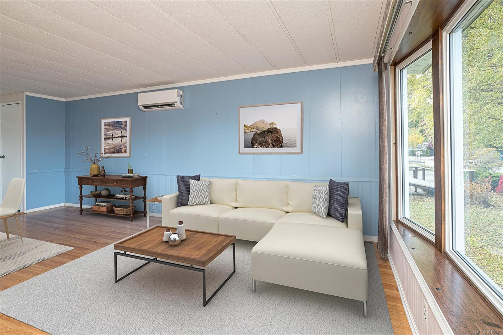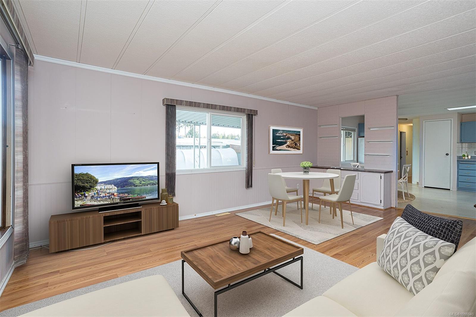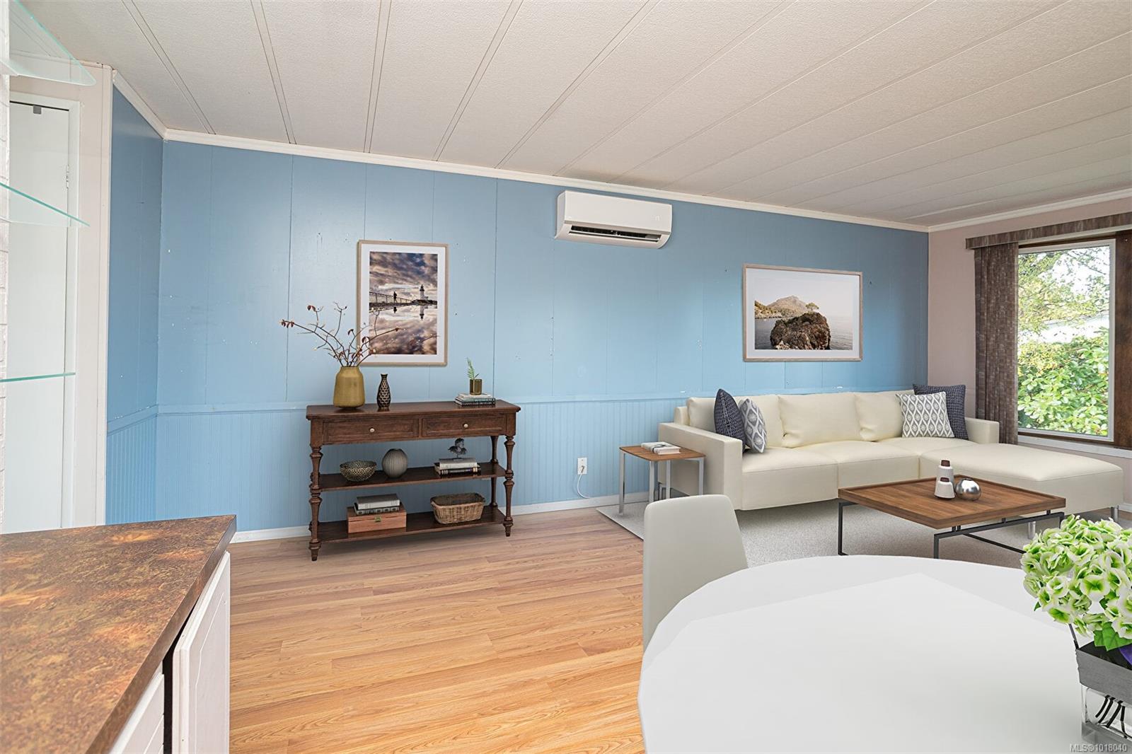 Don’t delay on this affordable well maintained home in sought after 55 + community! This bright 14 ft wide modular home features a spacious addition , and detached 10×21 ft workshop- perfect for hobbies or storage. Enjoy a thoughtfully designed layout with 2 bedrooms and 2 bathrooms. plus some updates including flooring, windows, and roof. The electric heat pump ensures year round comfort. Outdoor living shines with a covered carport , large sunny deck and garden areas for your green thumb. Located in an exceptional park with community center and garden. This property offers relaxed lifestyle at an affordable price. Pets allowed – see bylaws. Virtually Staged.