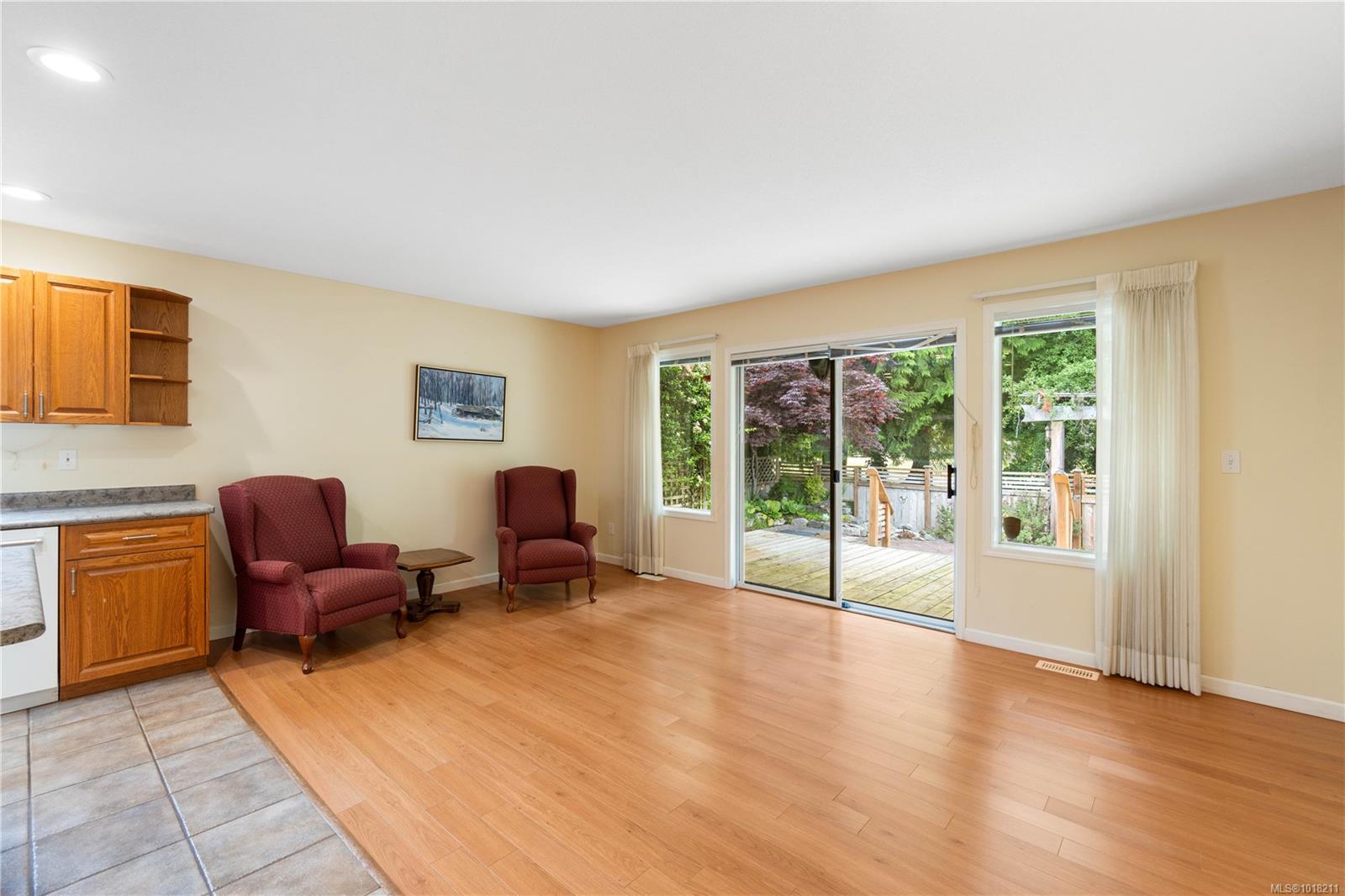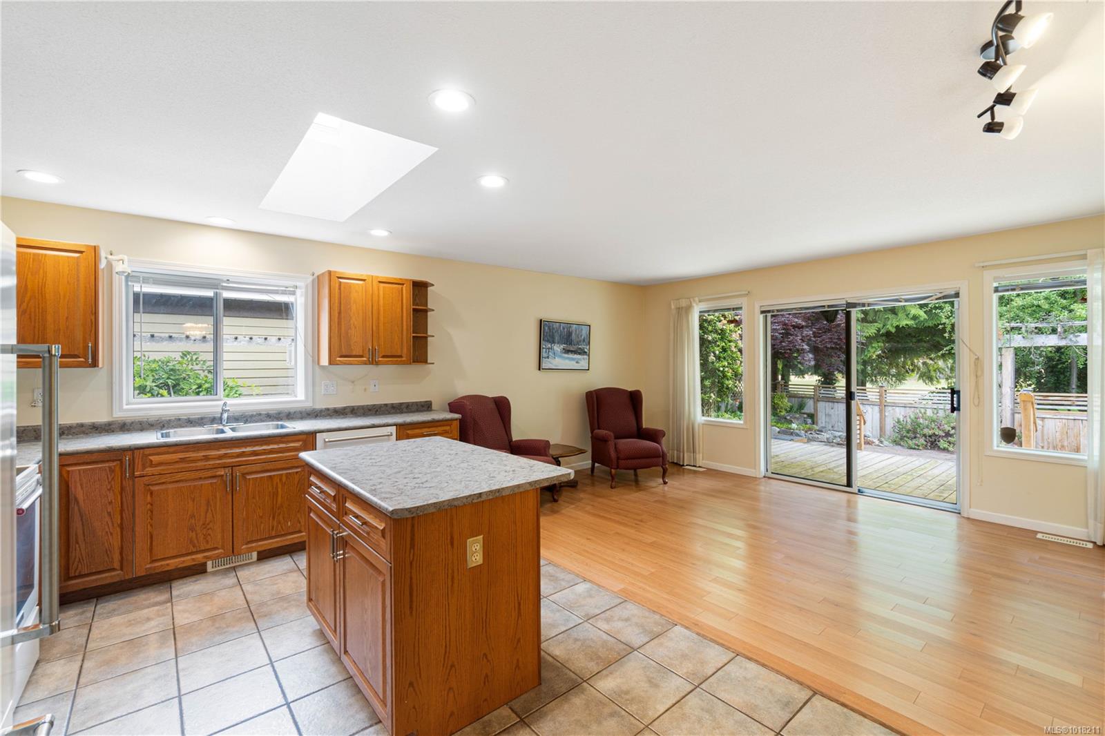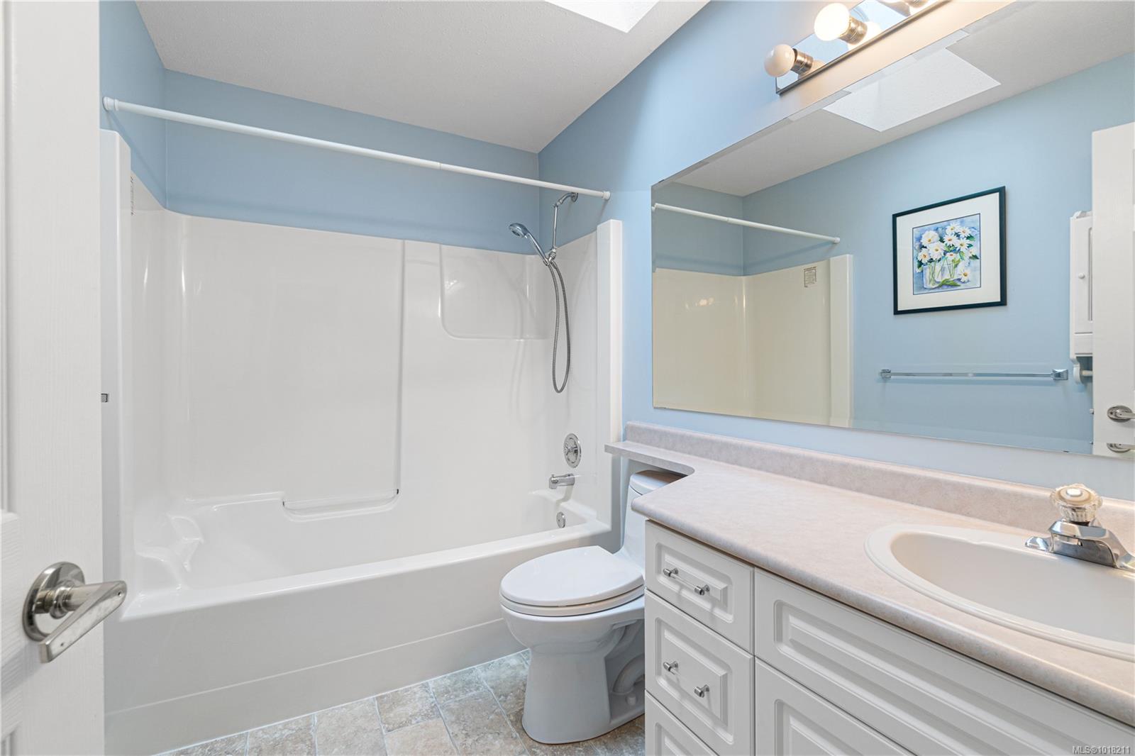 Just two blocks from Eaglecrest Beach and backing onto the former 9th fairway at Eaglecrest Golf, this 1,555 sq ft home in the sought-after Oceanside community offers an unbeatable combination of location, layout, and potential. With 2 bedrooms, 3 bathrooms, and a double garage complete with a bonus 2-piece bath, the home features a bright, open floor plan with excellent natural light and solid construction. The spacious kitchen and family room open to a serene backyard patio overlooking a small pond and greenspace, perfect for morning coffee or quiet evenings. The generous primary suite includes a 4-piece ensuite, while the second bedroom provides a comfortable space for guests or a home office. Immaculately maintained yet ready for your personal updates, this home offers comfort, convenience, and value. Low $90/month strata fees include RV/boat parking and beautifully maintained common areas. A wonderful opportunity to live in a peaceful, beachside golf community.