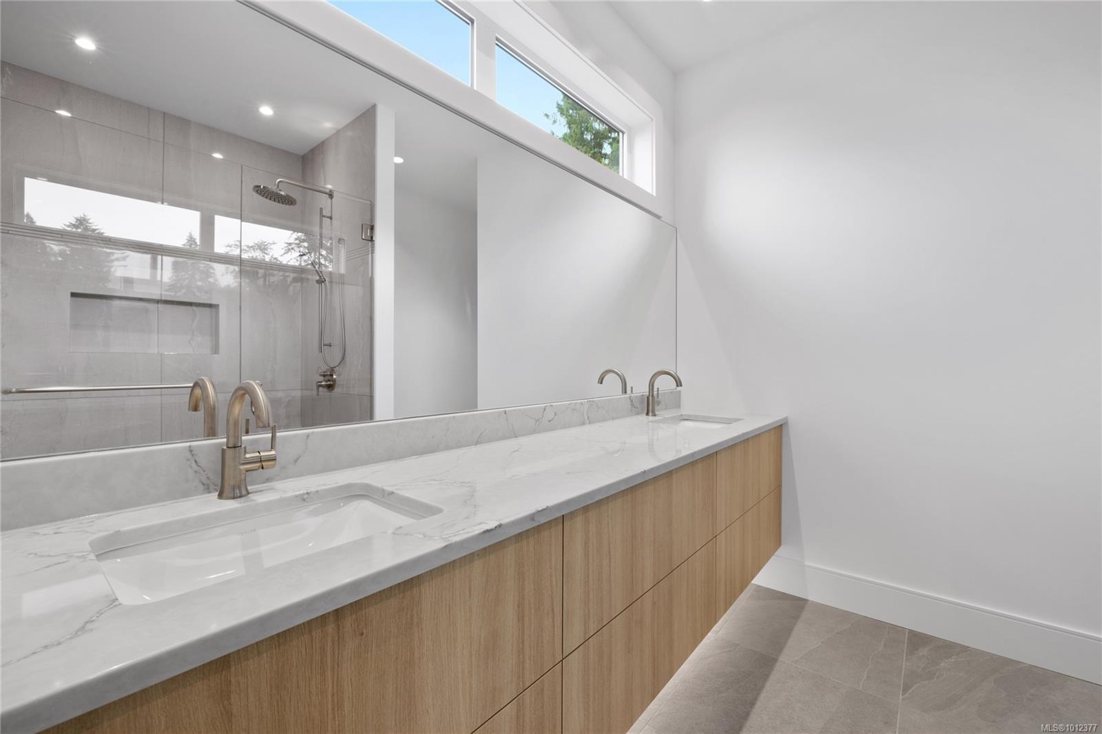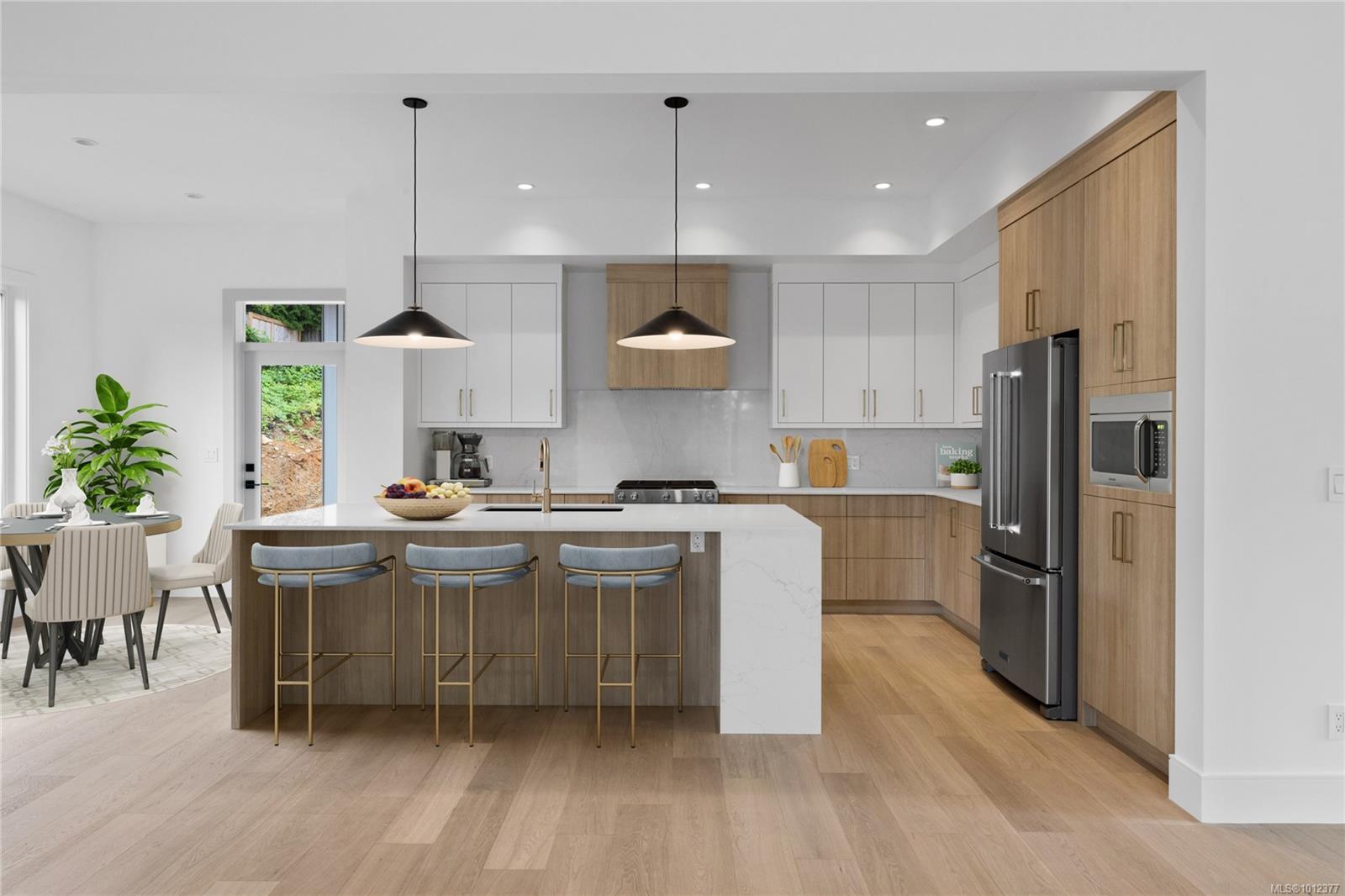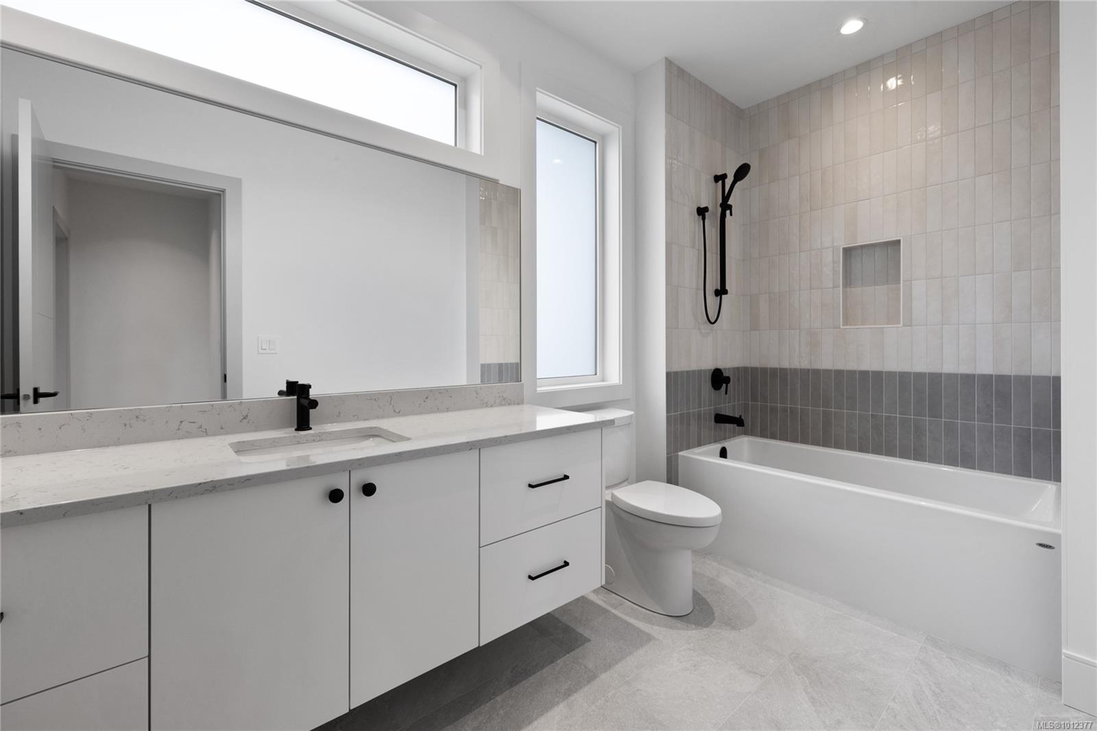 Located in Lower Lantzville and across the street from waterfront properties, this ocean view home was built by Windley Contracting. This two-storey home has dramatic timber accents and a main floor with 10’ ceilings and direct access to the yard with bdrms upstairs. The interior has high-end finishes that include engineered hardwood, quartz countertops with a unique waterfall feature in the kitchen plus a full height quartz backsplash. Kitchen millwork is two-toned white and wood grain for a light, bright and modern look. Additional finishes include champagne bronze and black plumbing fixtures plus accented interior doors and door casings. You will find interesting and fun tile patterns in each bathroom and the laundry room plus designer lighting throughout. Landscaping, fencing, appliances, and window coverings are all included. Price is plus GST. Pls verify measurements if import