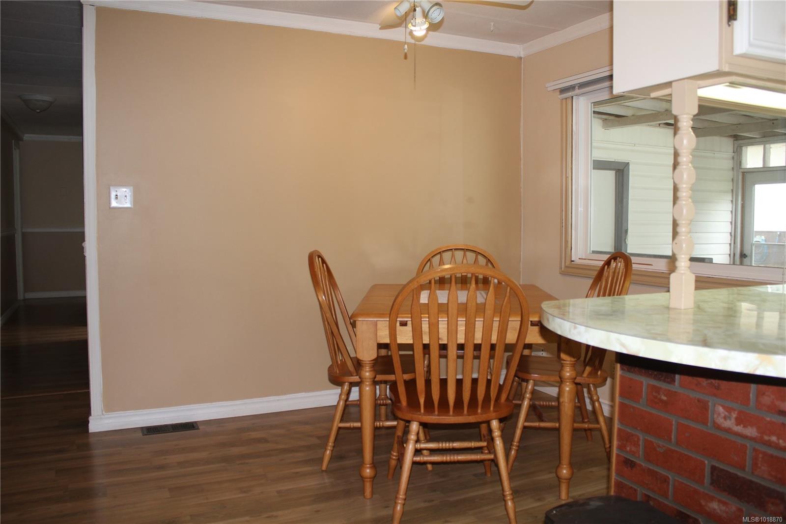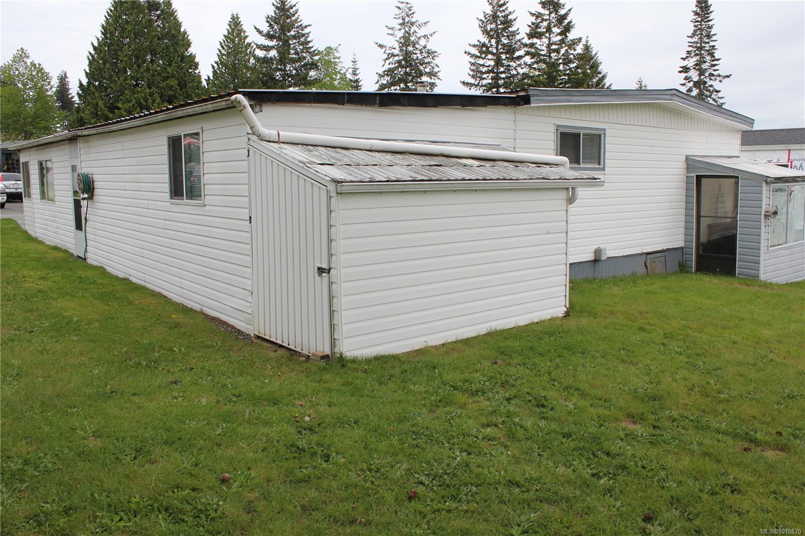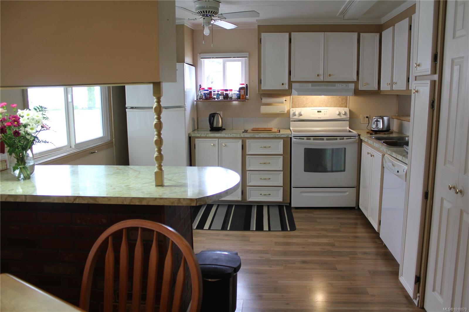 Welcome to affordable and comfortable living. This bright 3-bedroom + den home offers 1,383 sq ft of well-kept, functional space with thoughtful updates throughout. Enjoy low utility costs with newer windows, a cozy gas fireplace, electric baseboard heat, and a 4-year-old hot water tank. The washer and dryer are newer, and the main section of the home features a durable metal roof. The layout feels surprisingly spacious, offering a generous living room with newer laminate flooring, oversized bedrooms, and a den perfect for office or hobby area. The bathroom includes a skylight that fills the space with natural light, plus a soaking tub and separate shower. Outside, enjoy a covered carport with an attached in-house workshop, along with a greenhouse and storage shed for gardening or additional storage. Located near schools, North Island College, Beaver Lodge Trails, the Sportsplex, shopping, and minutes to the ocean and Seawalk. Well-managed park with no rentals and no age restrictions.