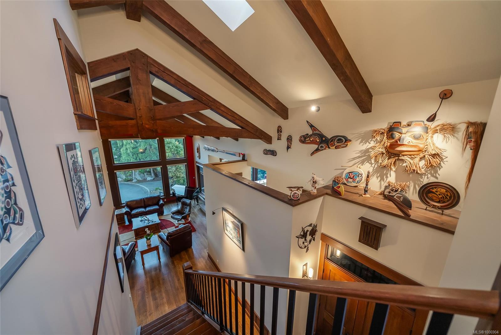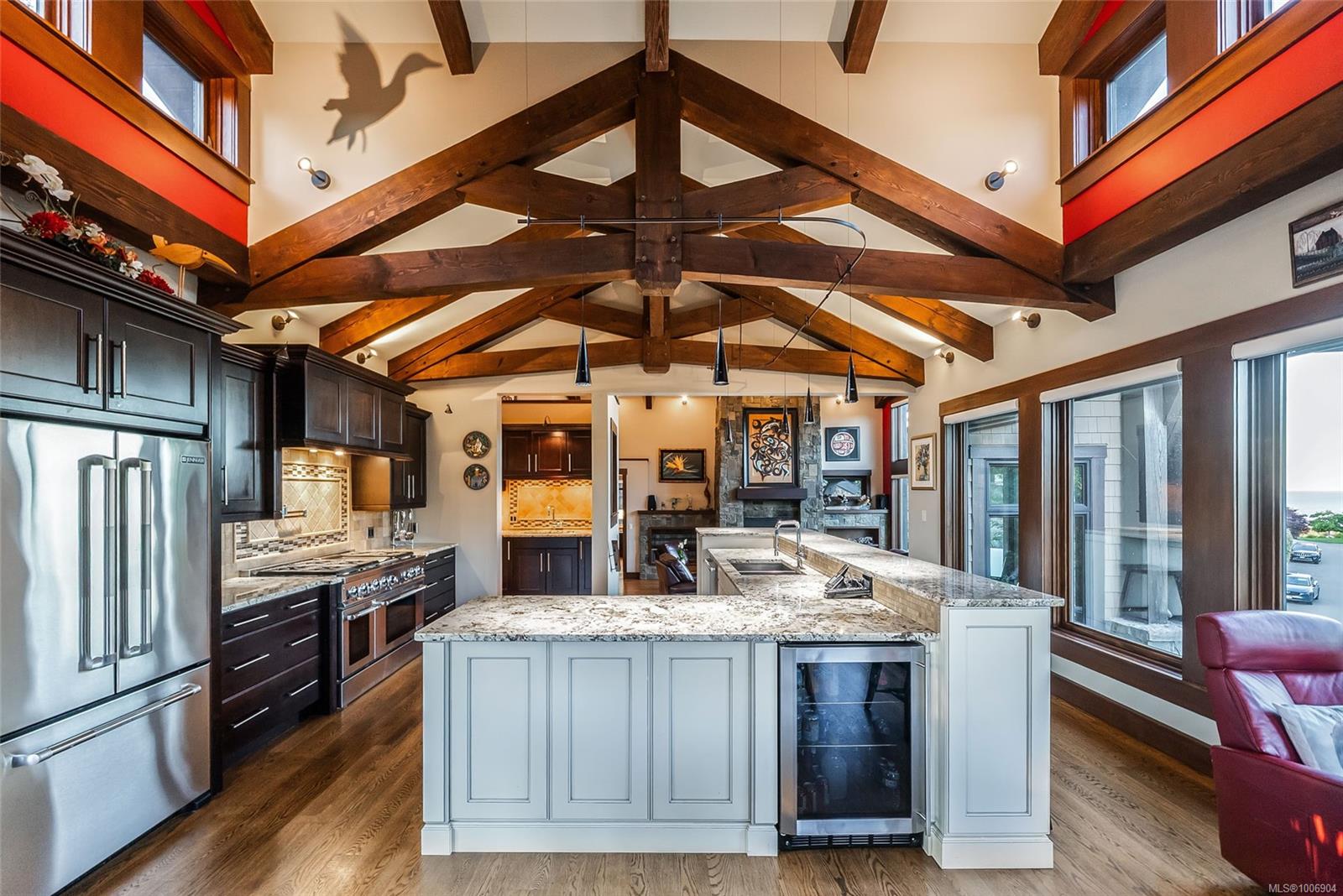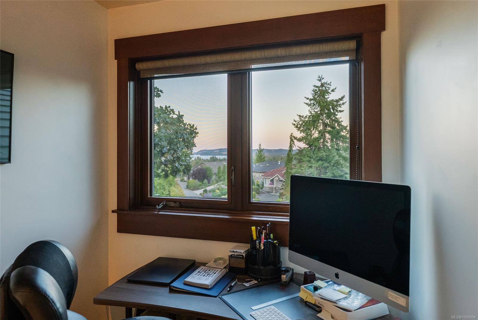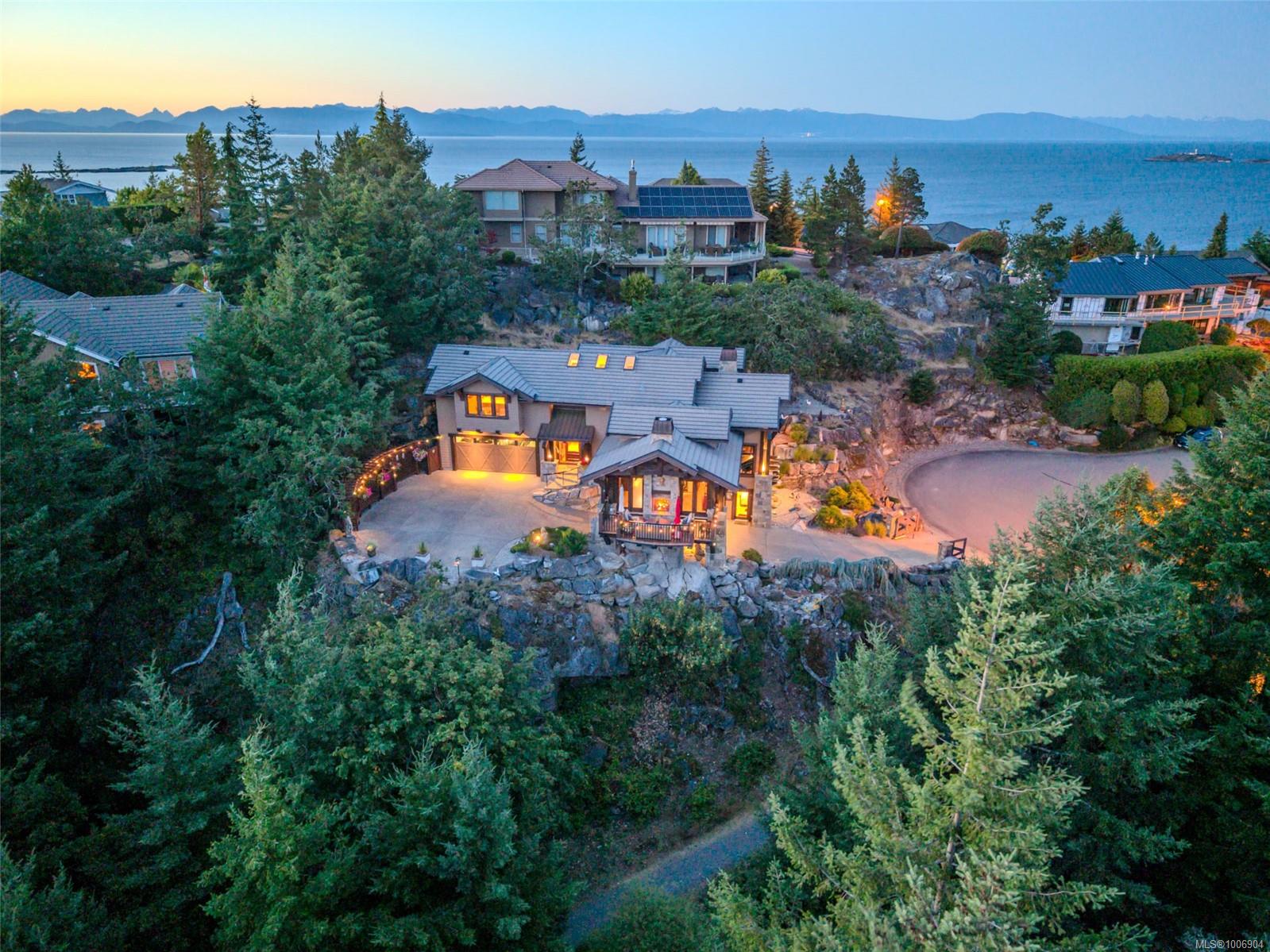 Incomparable Fairwinds Executive Home. Stunning 3 Bed/4 Bath on private .32-acre lot with a touch of Zen in the presentation. Finely crafted with West Coast architecture, larger-than-life floor plan, numerous upgrades, green energy efficiency, an ensuited Guest Bedroom, sunny outdoor living space, and great extras incl 3 dishwashers, 4 fireplaces, skylights, & OS windows w/views over Fairwinds to the distant Strait of Georgia. Prime location in ‘Schooner Ridge’ beside forestland around Dolphin Lake. Gated entry and drive-under design beneath a cantilevered Kitchen. Formal Living Rm with wood floors, wood FP, and Wine Rm. Chef’s Kitchen has granite CTs, top-tier appls and Butler’s Pantry. Dining Rm shares 2-sided gas FP with deck. Also Primary Suite, Laundry & Powder Rms. Upper level hosts Games/Media Rm, Guest Bedrm, Bath & Sauna. Lower level has Office/Bedrm/Den, Bath, and storage. Easy access to golf, trails, marina, short drive to Nanaimo. Great extras, visit our website for more.