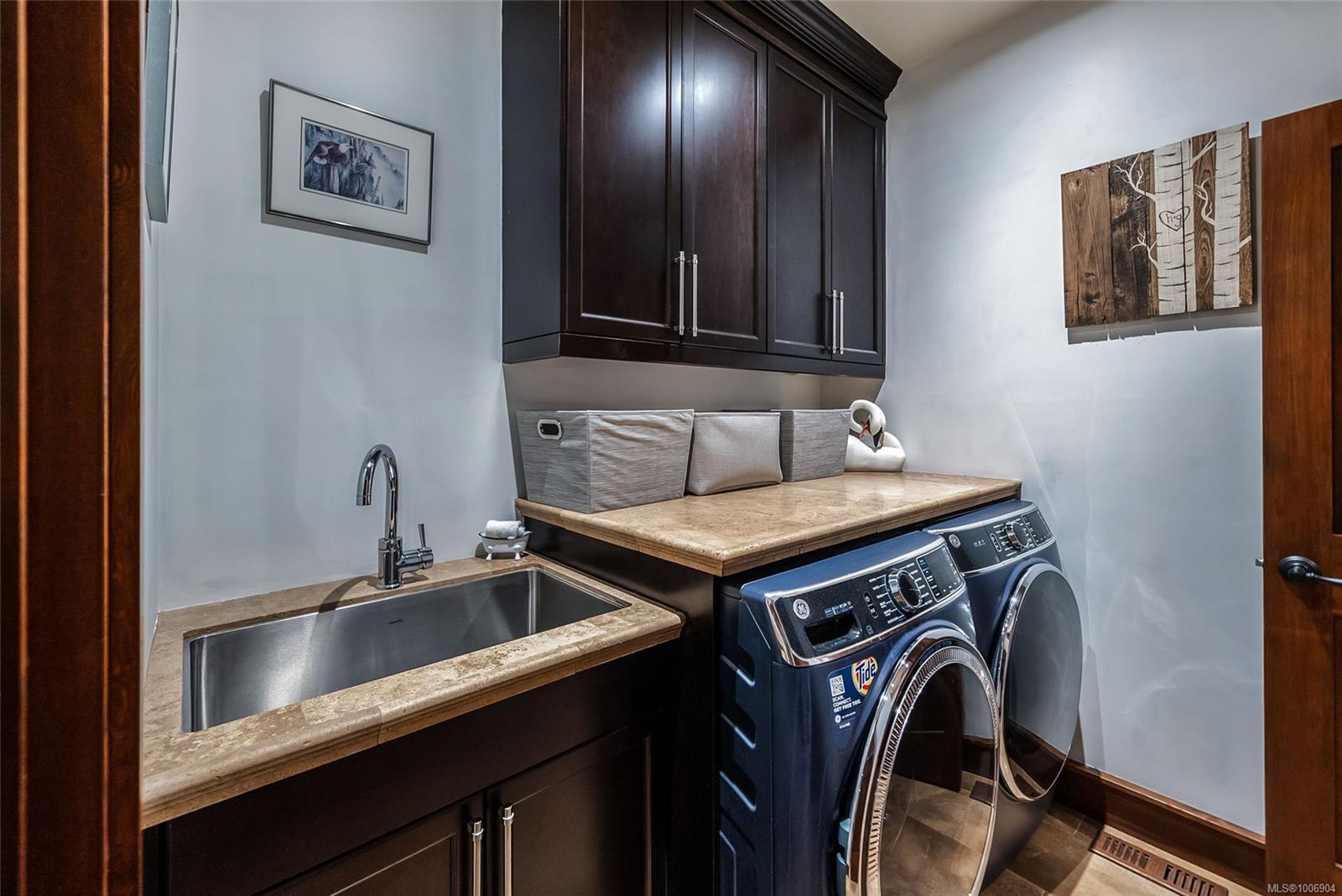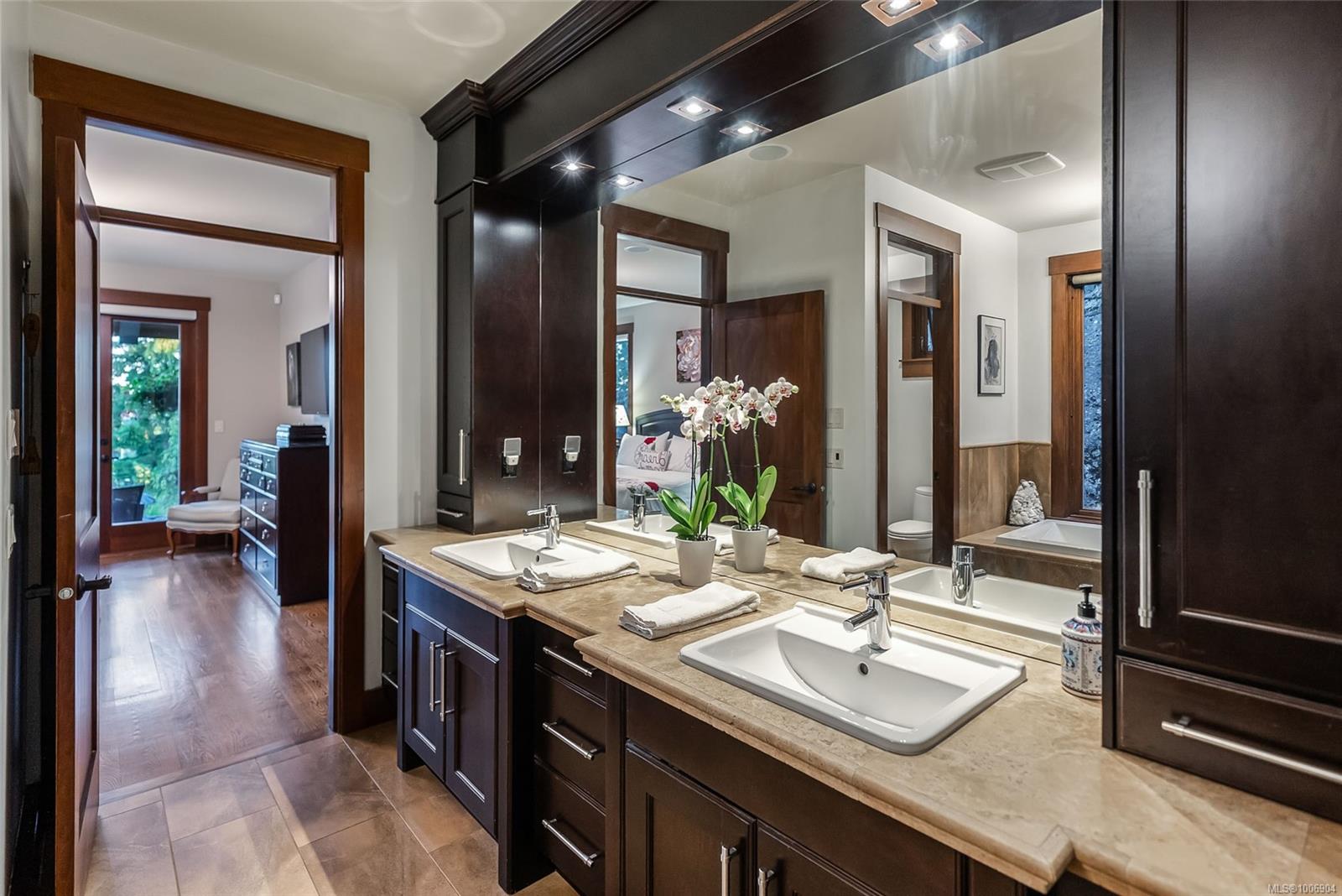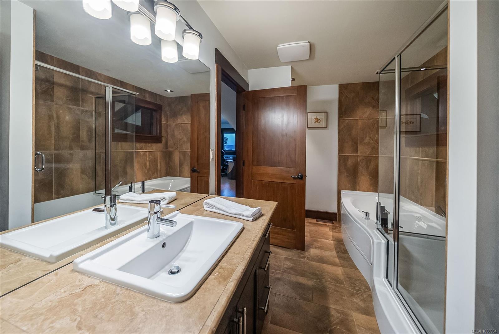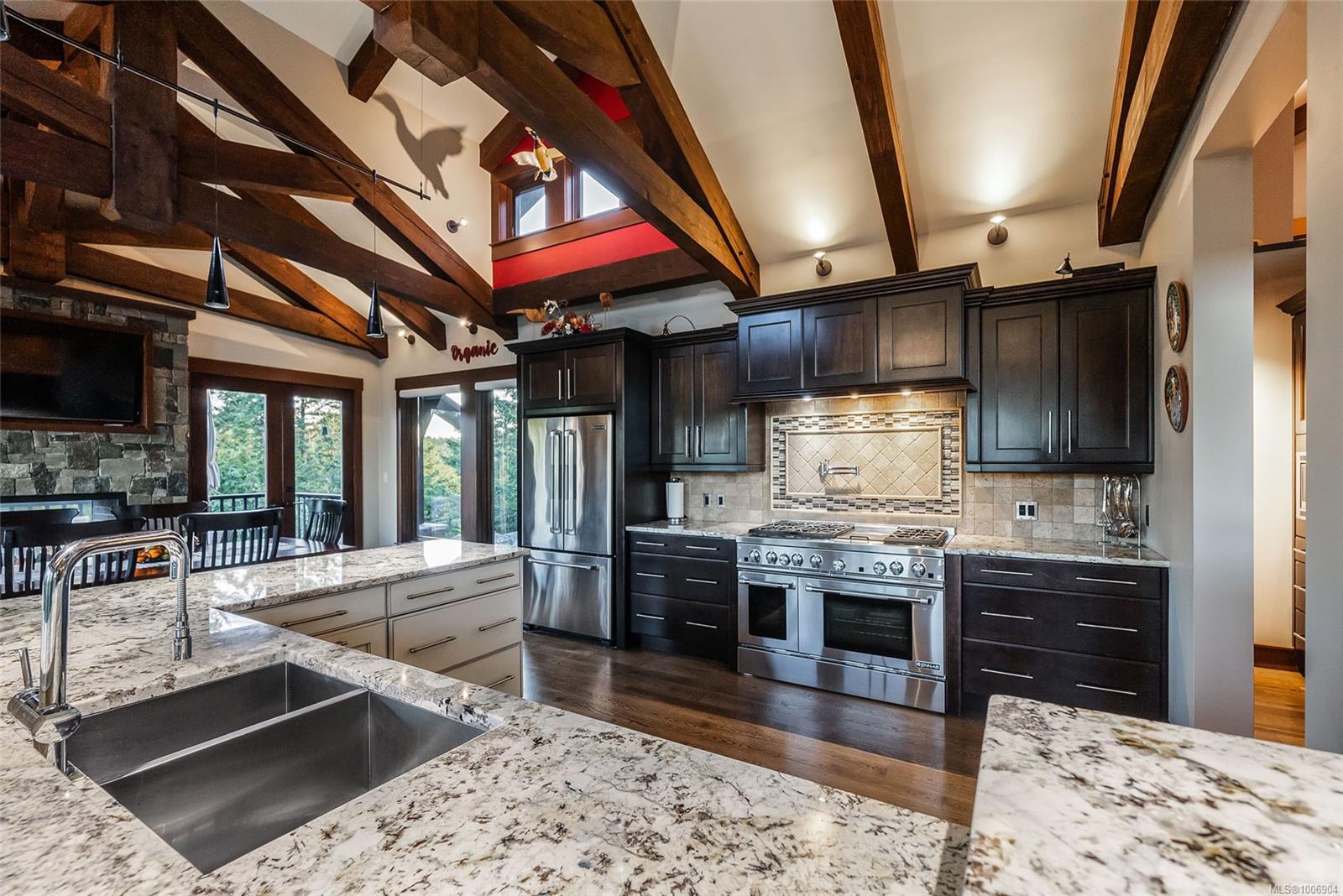 Incomparable Fairwinds Executive Home. Stunning 3 Bed/4 Bath on private .32-acre lot with a touch of Zen in the presentation. Finely crafted with West Coast architecture, larger-than-life floor plan, numerous upgrades, green energy efficiency, an ensuited Guest Bedroom, sunny outdoor living space, and great extras incl 3 dishwashers, 4 fireplaces, skylights, & OS windows w/views over Fairwinds to the distant Strait of Georgia. Prime location in ‘Schooner Ridge’ beside forestland around Dolphin Lake. Gated entry and drive-under design beneath a cantilevered Kitchen. Formal Living Rm with wood floors, wood FP, and Wine Rm. Chef’s Kitchen has granite CTs, top-tier appls and Butler’s Pantry. Dining Rm shares 2-sided gas FP with deck. Also Primary Suite, Laundry & Powder Rms. Upper level hosts Games/Media Rm, Guest Bedrm, Bath & Sauna. Lower level has Office/Bedrm/Den, Bath, and storage. Easy access to golf, trails, marina, short drive to Nanaimo. Great extras, visit our website for more.