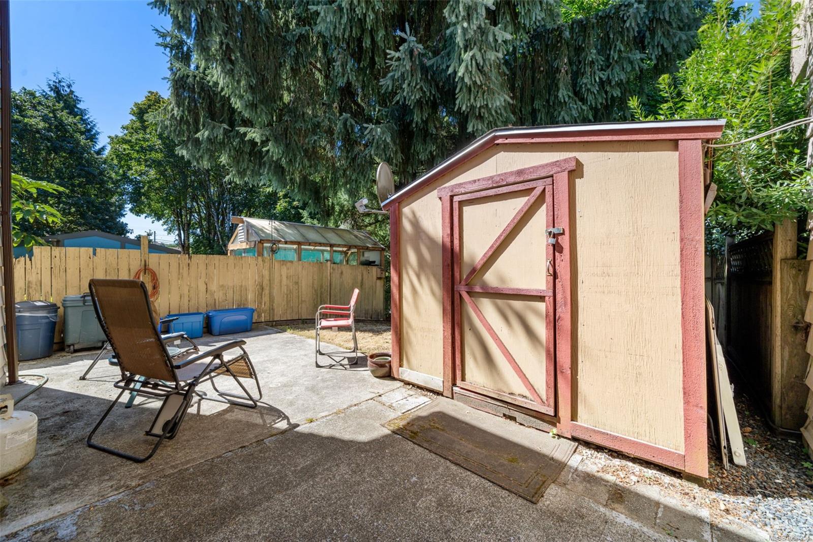 Rare offering! Strata allows multiple pets with no size restrictions!! Welcome home to this 3 bed 1 bath, open concept townhouse in the well run Canyon Park Estates which allows rentals and pets (see bylaws). New hot water heater and windows have been updated. The bright kitchen with large pantry/laundry flows into the dining room and outside patio area, backing onto sunning westcoast mature forest with the sun streaming through the trees (Goldstream Provincial Park!). Enjoy this private end unit complete with bathroom window, storage access and two parking spaces directly in front of home. All this tucked in behind mature landscaping to feel private, yet so close to so many amenities! Contact your realtor today for for more details and a private showing! Measurements are approximate, buyer to verify.