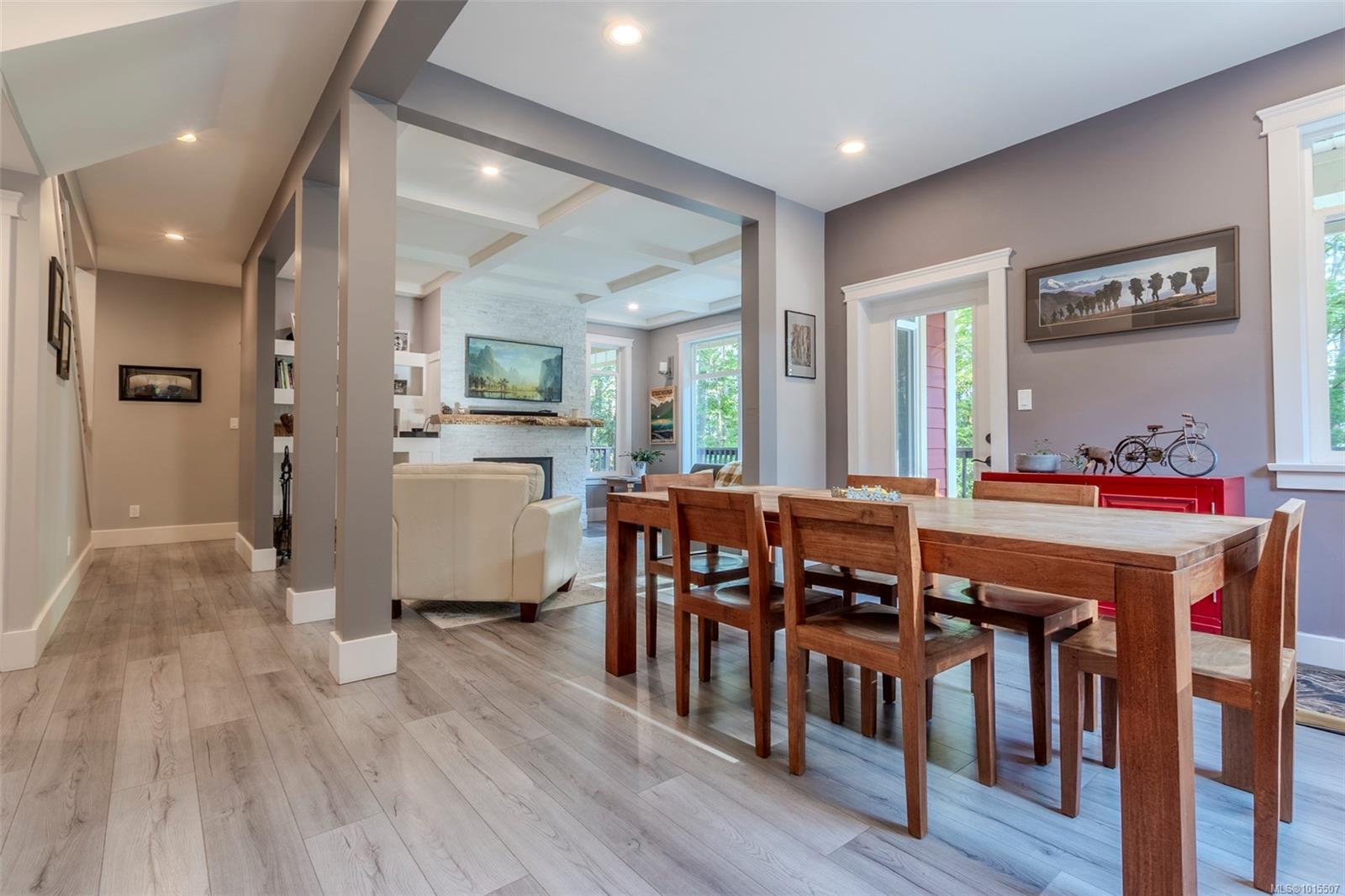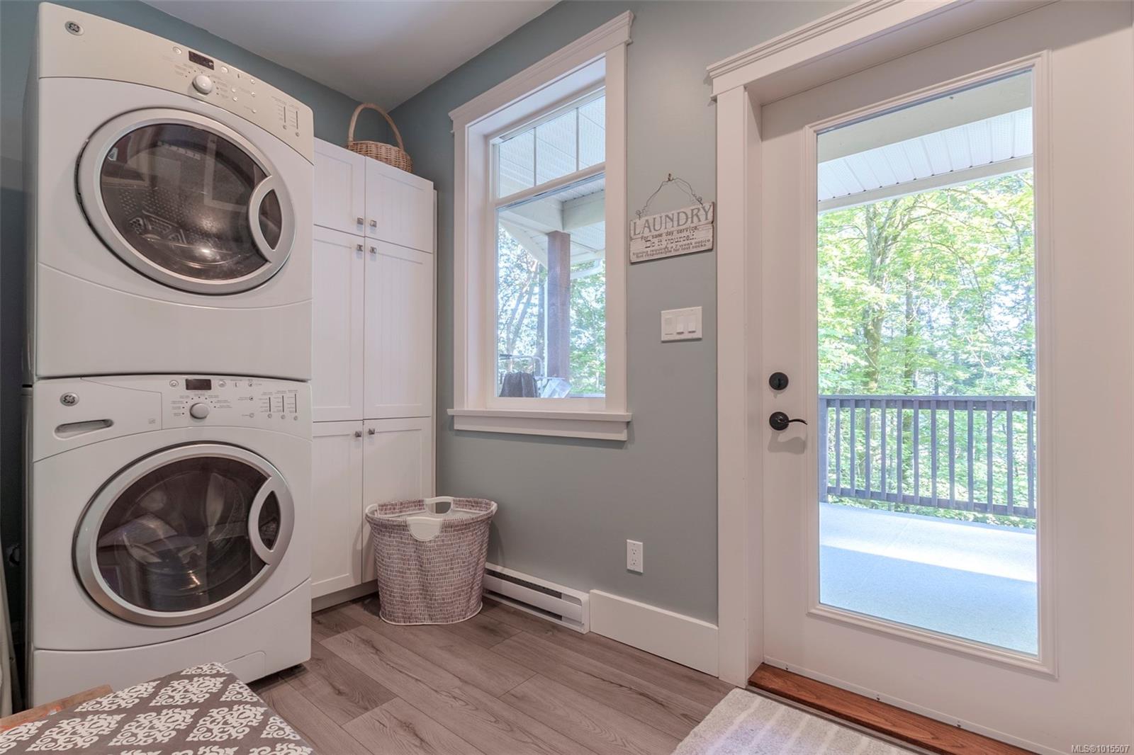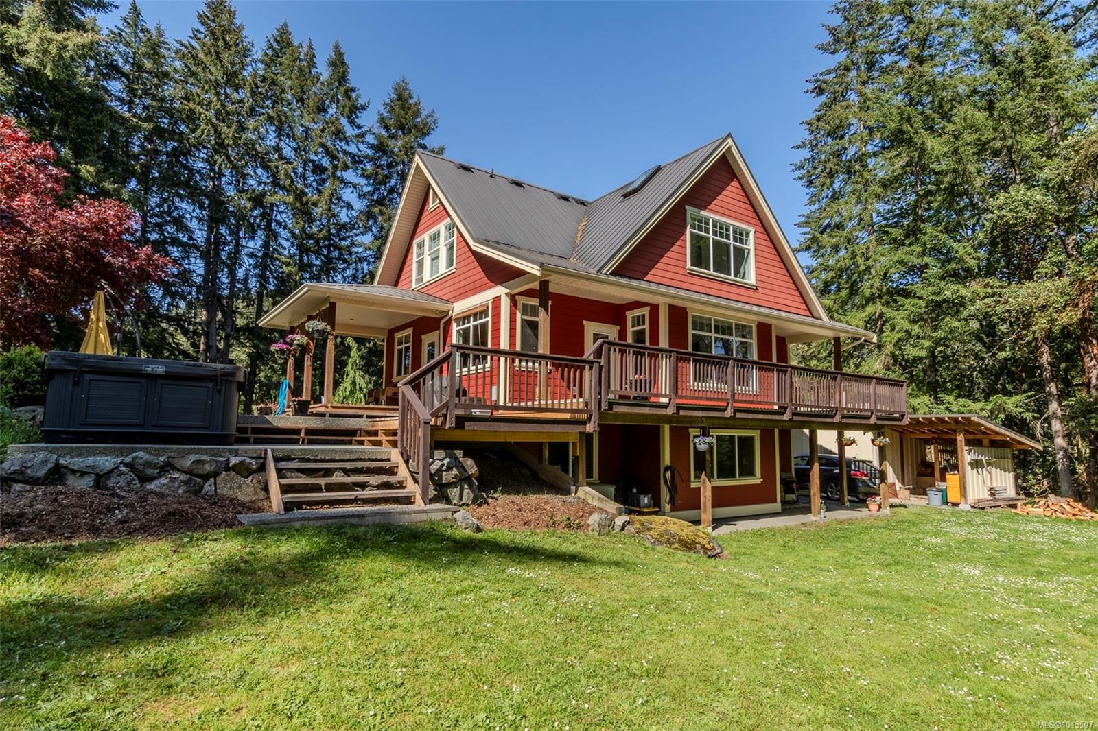 Tucked away on a private 3-acre lot in beautiful Maple Bay, this 3-bedroom, 3-bathroom home plus a 1-bedroom suite offers comfort, flexibility, and outdoor lifestyle. The main level features a bright, open-concept layout where the kitchen, dining, and living areas flow together seamlessly. The living room is warm and welcoming with built-in shelving and a cozy woodstove set in a striking stone surround. The spacious primary bedroom is located on the main floor and includes a full ensuite with a soaker tub and stand-up shower. Upstairs offers a great family hangout area and two additional bedrooms. The large patio is perfect for entertaining or enjoying the peaceful natural surroundings. The self-contained 1-bedroom, 1-bathroom suite includes a private entrance, kitchen, and laundry—ideal for guests, extended family, or added income. Located just steps to hiking and biking trails and only minutes to Maple Bay Beach, with plenty of parking for vehicles, RVs, and toys.