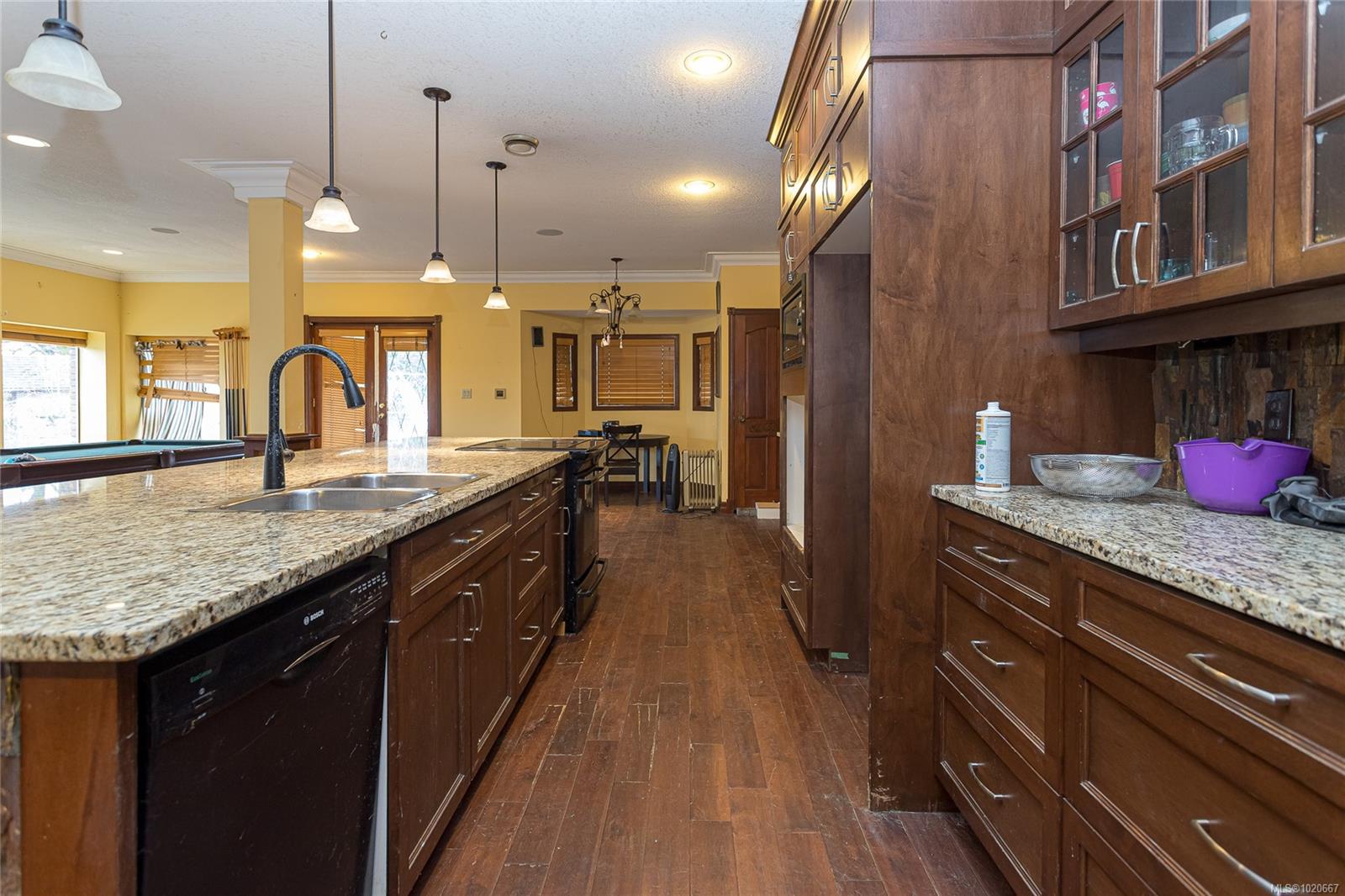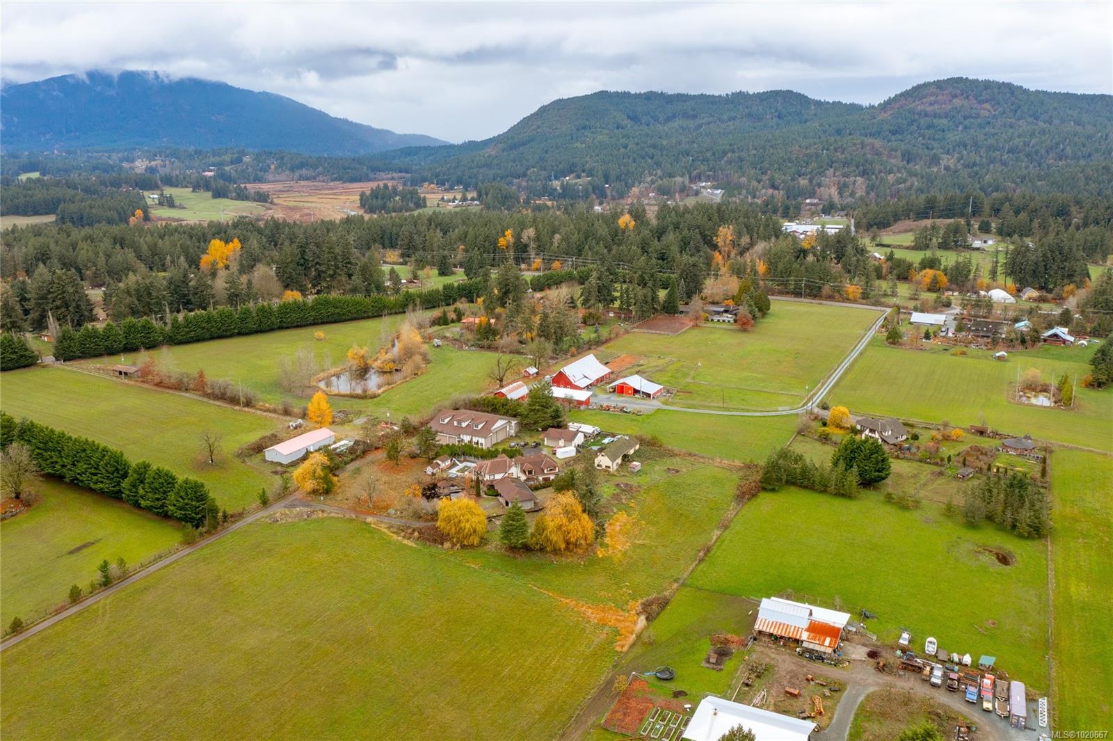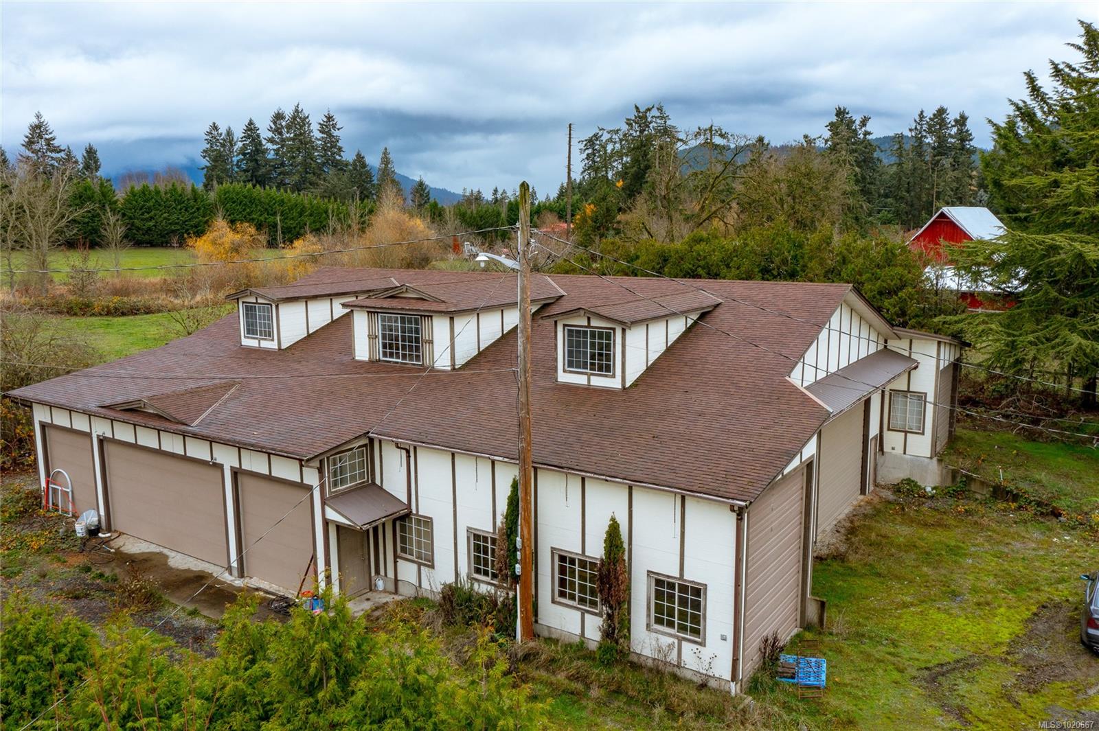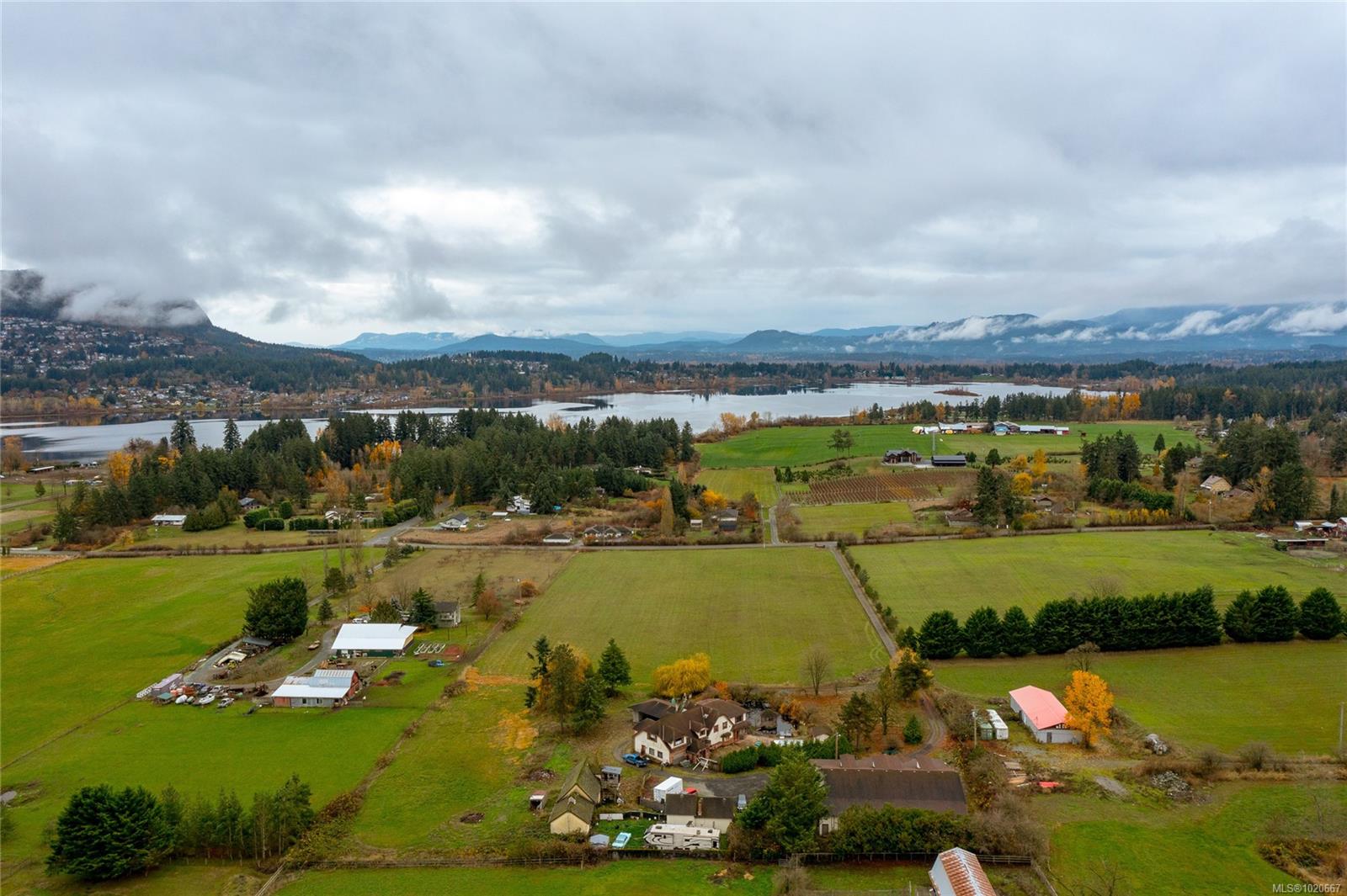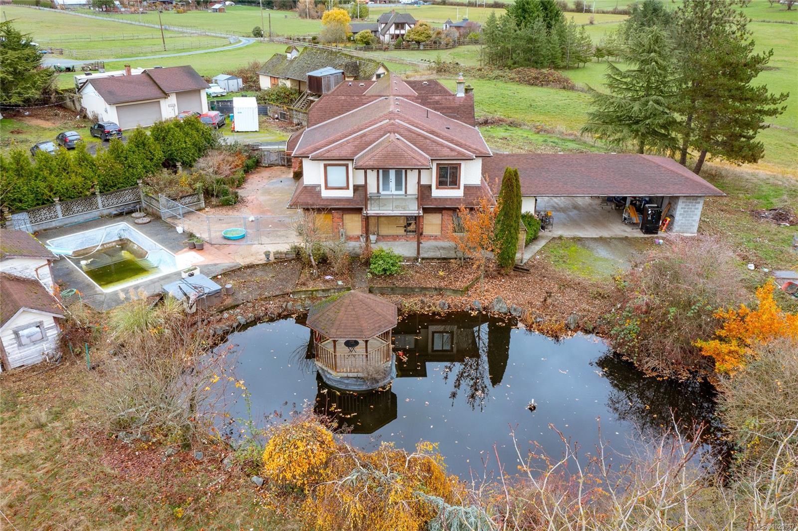 Discover a rare opportunity on sought-after Stamps Road: a level, fenced 9.52-acre estate offering sweeping views of Quamichan Lake and the Cowichan Valley. At its heart is a 5,278 sq.ft. custom 6-bedroom home with expansive living areas ready for restoration, including a self-contained 1-bedroom in-law suite ideal for family or guests. A substantial 6,195 sq.ft. barn/shop features an overhead crane, 13-ft shop ceilings, and nearly 19-ft of clearance in the barn, well suited for agricultural, commercial, or hobby uses. Additional improvements include a 1,325 sq.ft. garage/studio with kitchenette and loft, plus an older carriage house. Outdoor amenities include a pool, pool house, gazebo, and eco-pond (koi stocked) accessed by a charming bridge. While the residence and grounds require extensive renovation, this is fully reflected in the price. With its scale, infrastructure, and prime location, this exceptional property offers the chance to re-imagine a premier Cowichan Valley estate.
