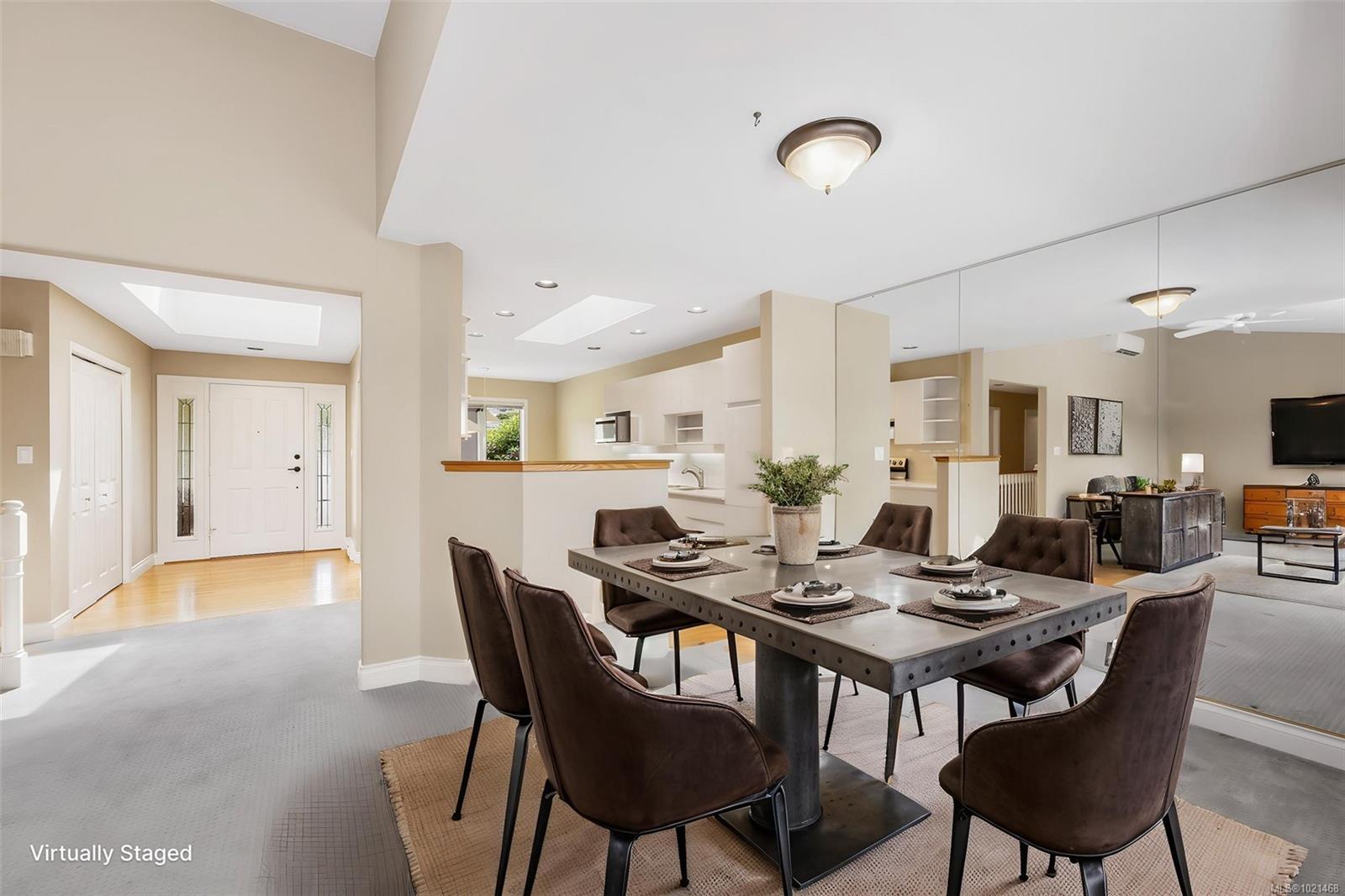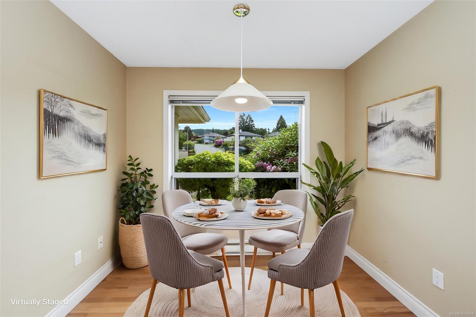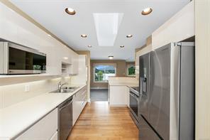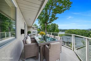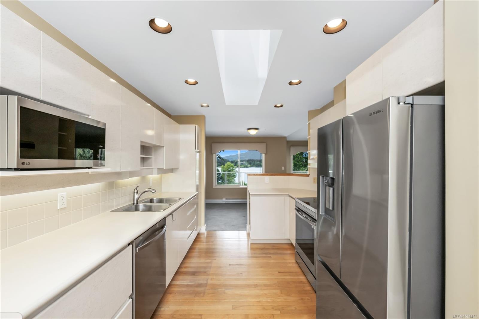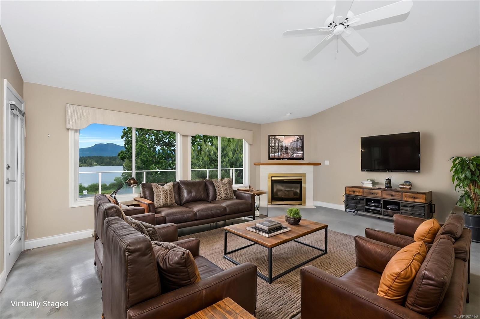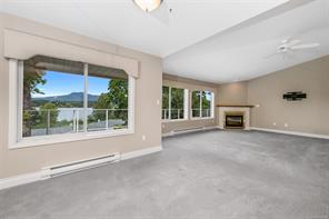 This 2718 SF, main level entry townhome, with walk out lower level is perfect for those looking to downsize from a single-family home but still wanting space for visiting friends & family & hobbies. This elegant home is an end unit with beautiful Quamichan Lake/Mount Prevost views, set in a premium lakefront development. The home has been very well maintained by the current owner & has a great floor plan with large, bright kitchen with eating nook, formal dining & entertainment sized living room with vaulted ceiling & propane FP. The large primary bedroom has a door to the large, redone, view deck & a 5 piece ensuite with soaker tub & separate shower. There is a generous second bedroom on the main floor with 2 closets plus a 3 piece main bathroom with a walk in shower. The lower level features a recreation room, third bedroom, den & full bathroom plus storage. The common property enjoys a gazebo & dock. Recent updates include 3 ductless heat pump heads and new kitchen appliances.
