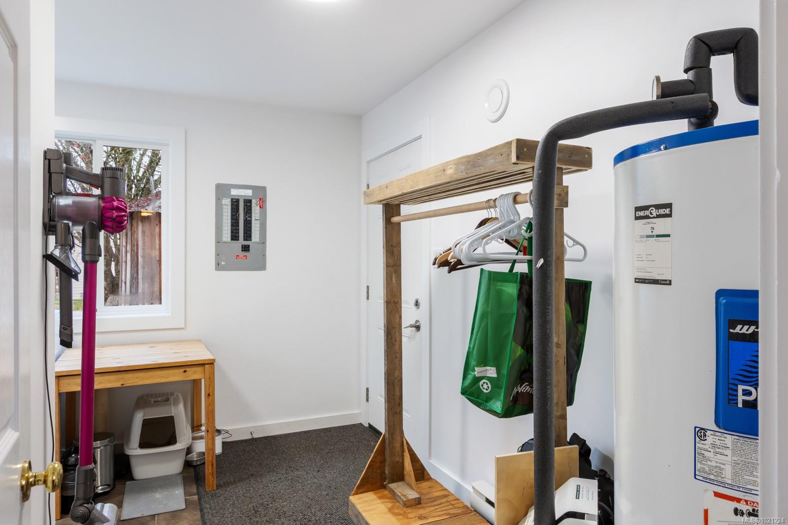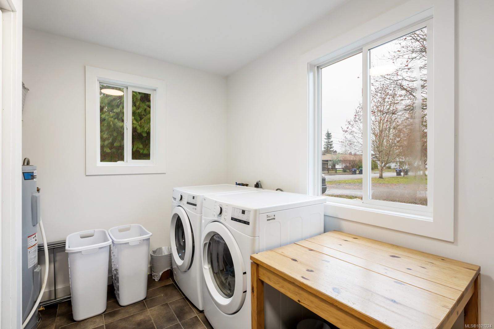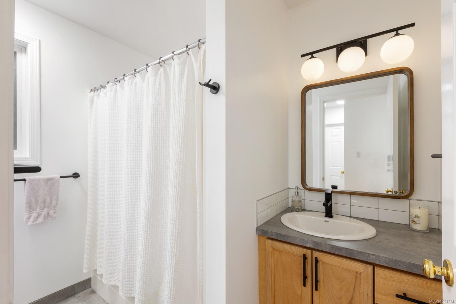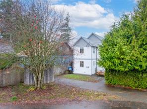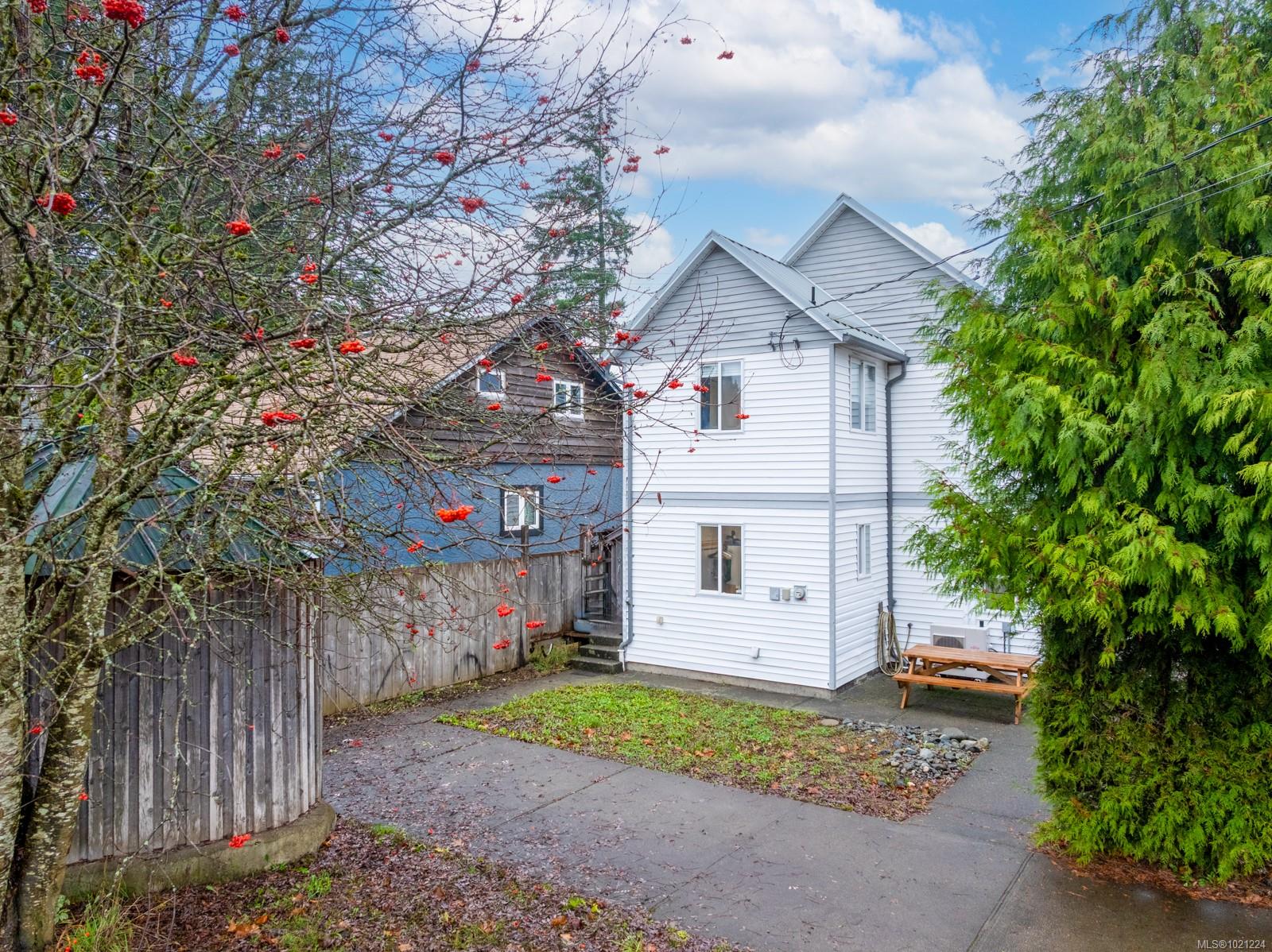 CHARMING HOME! This inviting 3-bedroom, 3-bathroom home combines warmth and functionality in a bright, open layout. The main floor features abundant natural light, wood flooring and specious main living areas along with a large laundry and utility room. Upstairs, bamboo laminate and tile flooring complement the three bedrooms and the stylishly renovated bathrooms – which include ceramic tile showers and backsplashes, updated lighting, and newer cabinetry. Heat pump & solar power for low electricity bills. Located in a Courtenay neighbourhood with an excellent walk score, this home is just minutes away by foot to both French and English elementary schools, a middle school, downtown Courtenay, the Puntledge River, & local parks and trails. The corner lot offers surprising semi-privacy thanks to mature hedging and fencing, and the well-designed patio creates a perfect space for entertaining, relaxing or soaking up the sun. A storage shed adds practicality with extra room for gear & tools.